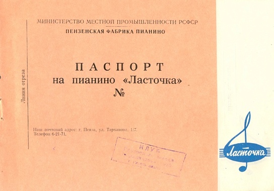 В 1976 году Пензенская фабрика пианино наладила выпуск клавишных инструментов под символичным названием "Ласточка". Отметим, что фабрика музыкальных инструментов открылась на правом берегу Суры в 1952 году, как цех мебельного комбината по изготовлению пианино из привозных деталей. В 1959 году фабрика обрела самостоятельность и начала производство пианино моделей С-5 и "Пенза".