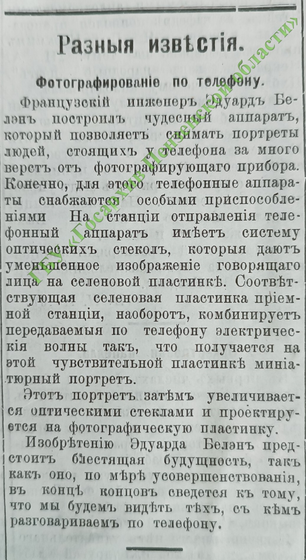 В частности, в пензенской прессе рассказывали про интересное изобретение, которое в будущем могло позволить человеку видеть своего собеседника во время разговора по телефону. По факту была предсказана одна из функций современного смартфона - видеозвонок!