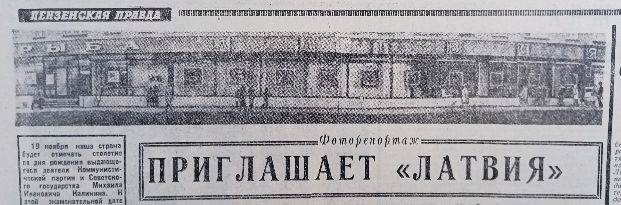 В сентябре 1975 года в Пензе на улице Коммунистической распахнул свои двери магазин «Латвия». Он стал третьим после «Белого аиста» и «Азербайджана» торговым заведением, передающим пензенцам привет от союзных республик, и специализировался на торговле морепродуктами.