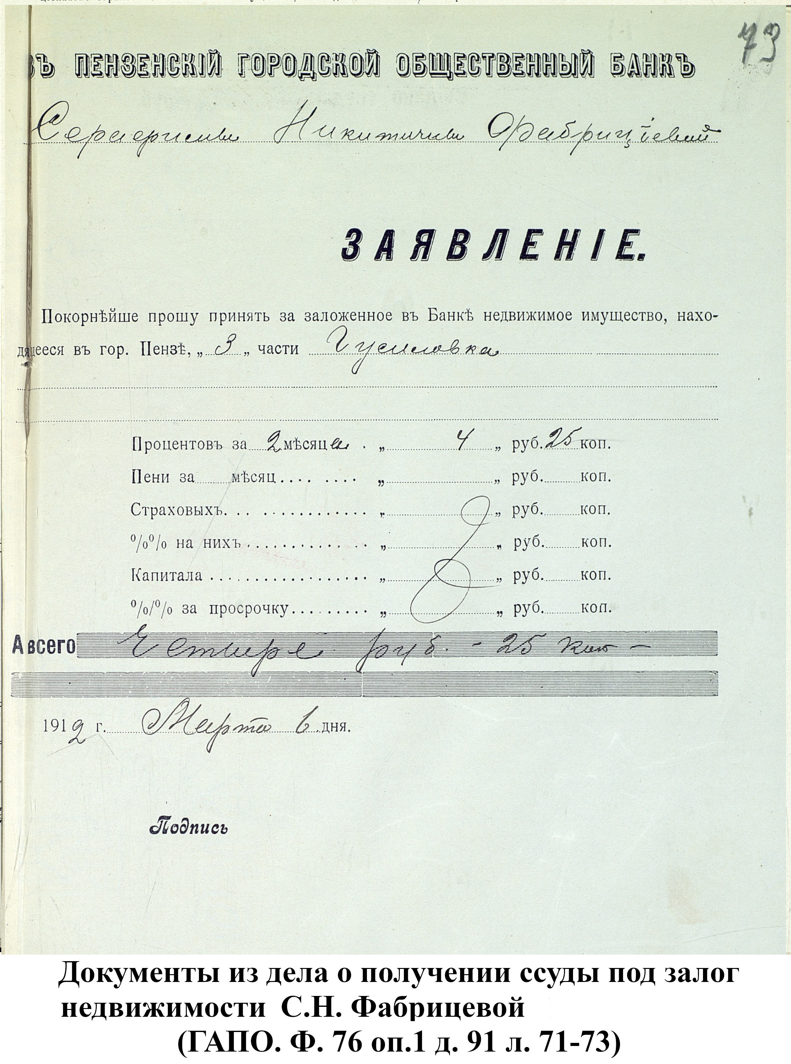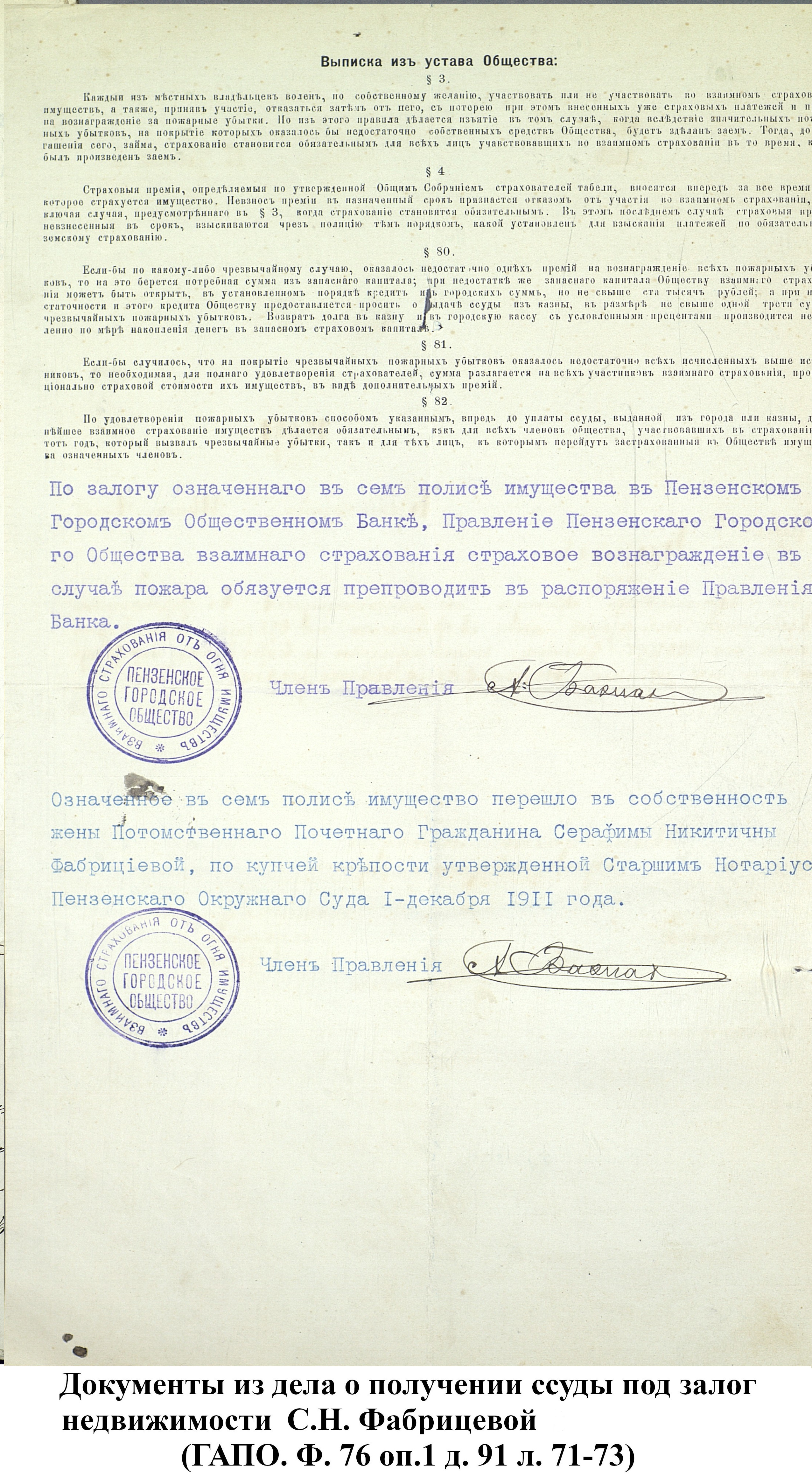 Документы из фонда Пензенского городского общественного банка. (Ф. 76)