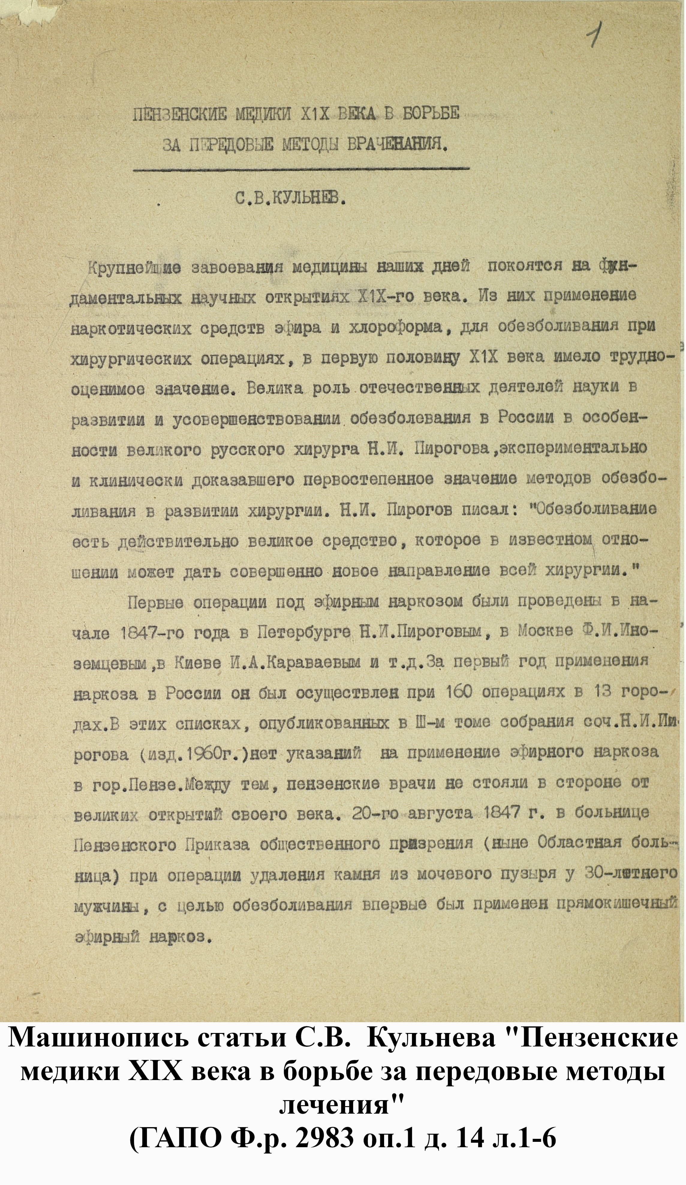 Личный фонд Кульнева Сергея Васильевича (Ф.р-2983) главного хирурга облздравотдела, заслуженного врач РСФСР, кандидата медицинских наук (14.10.1904 – 24.07.1991).