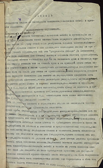 При подготовке выставки использованы документы Пензенского губисполкома, Пензенского губернского земельного управления, Пензенского уездного земельного управления, Мокшанского уездного земельного управления и Сердобского уездного земельного управления.