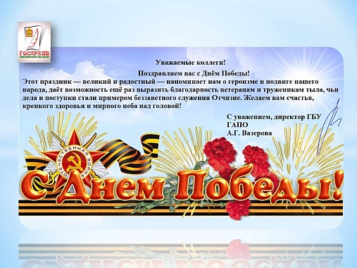 Этот праздник — великий и радостный — напоминает нам о героизме и подвиге нашего народа, даёт возможность ещё раз выразить благодарность ветеранам и труженикам тыла, чьи дела и поступки стали примером беззаветного служения Отчизне. Желаем вам счастья, крепкого здоровья и мирного неба над головой!