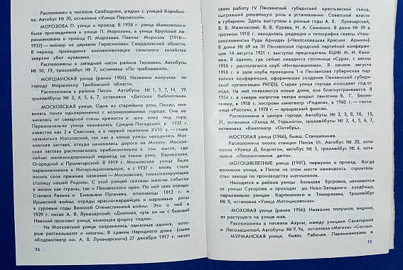 "Нет сомнения в том, что справочник "Улицы Пензы" придется по душе пензенцам. Во многих семьях он станет настольной книгой, поможет лучше ознакомиться с прошлым и настоящим родного города на реке Суре", - писала местная пресса.