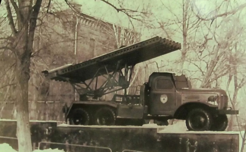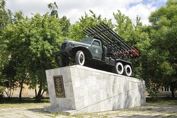 На постаменте оказалась уже послевоенная версия гвардейского миномета БМ-13НН или 52-У-941Б на базе трехосного полноприводного шасси ЗИС-151. В годы войны БМ-13 первоначально монтировались на ЗИС-6, а с 1942 года началась установка реактивных установок на грузовики, получаемые по ленд-лизу. В этом процессе использовались разные модели техники, но основным носителем гвардейского миномета достаточно быстро стал автомобиль "Студебекер US6».