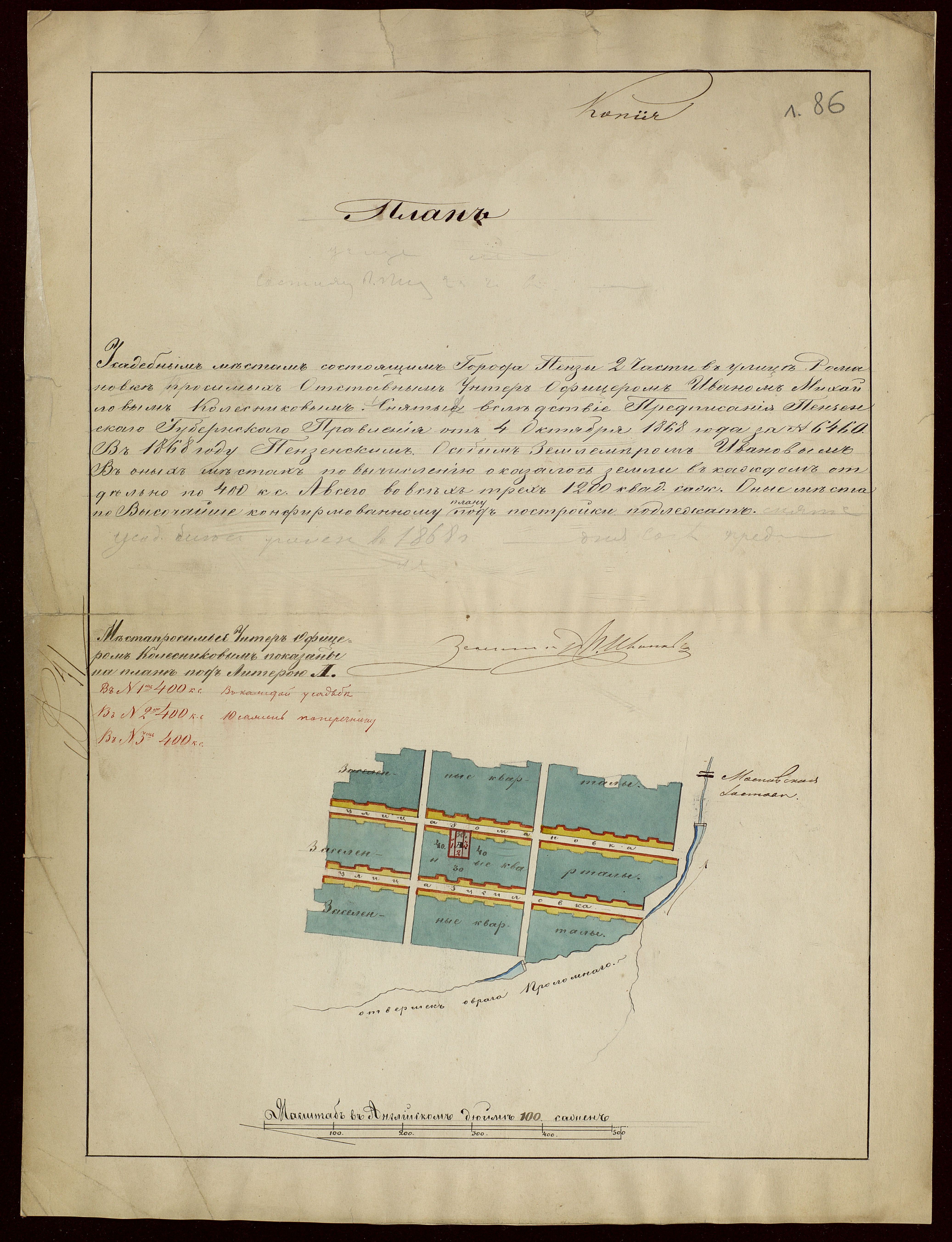 Приблизительно на месте Госархива Пензенской области и прилегающих территориях во второй половине XIX века находились три усадьбы - рядового Якова Куликанова, рядового Евграфа Амбросимова и унтер-офицера Трофима Сивухина. Как выглядело это место до постройки архива в середине прошлого века Вы можете увидеть на старых фотографиях.