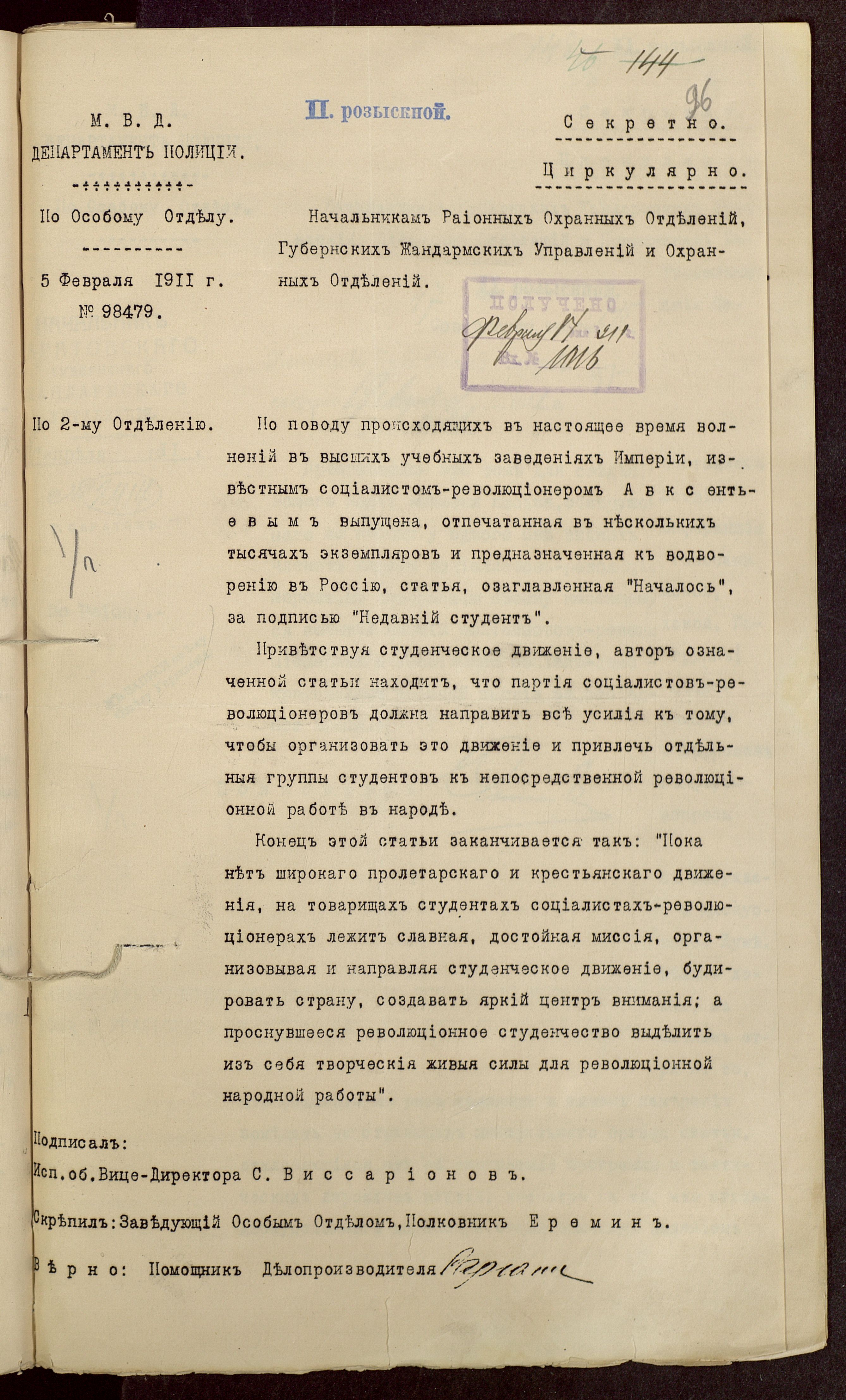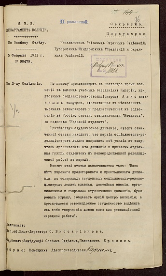 Под его руководством просмотр осуществляли два военных цензора и при них переводчики, занимавшиеся переводом иностранной корреспонденции.