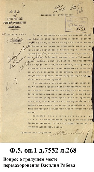 В выставке использованы документы из спецхрана Ф.5. Оп.1. Д.7552, подшивки газет «Пензенские губернские ведомости» разных лет и фотографии, связанные с увековечиванием памяти В.Т. Рябова.
