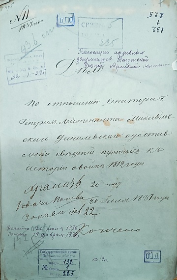 С 1836 года в Российской империи проходил сбор сведений для издания книги по Отечественной войне 1812 года. Такой запрос был отправлен и в Пензенскую губернию.