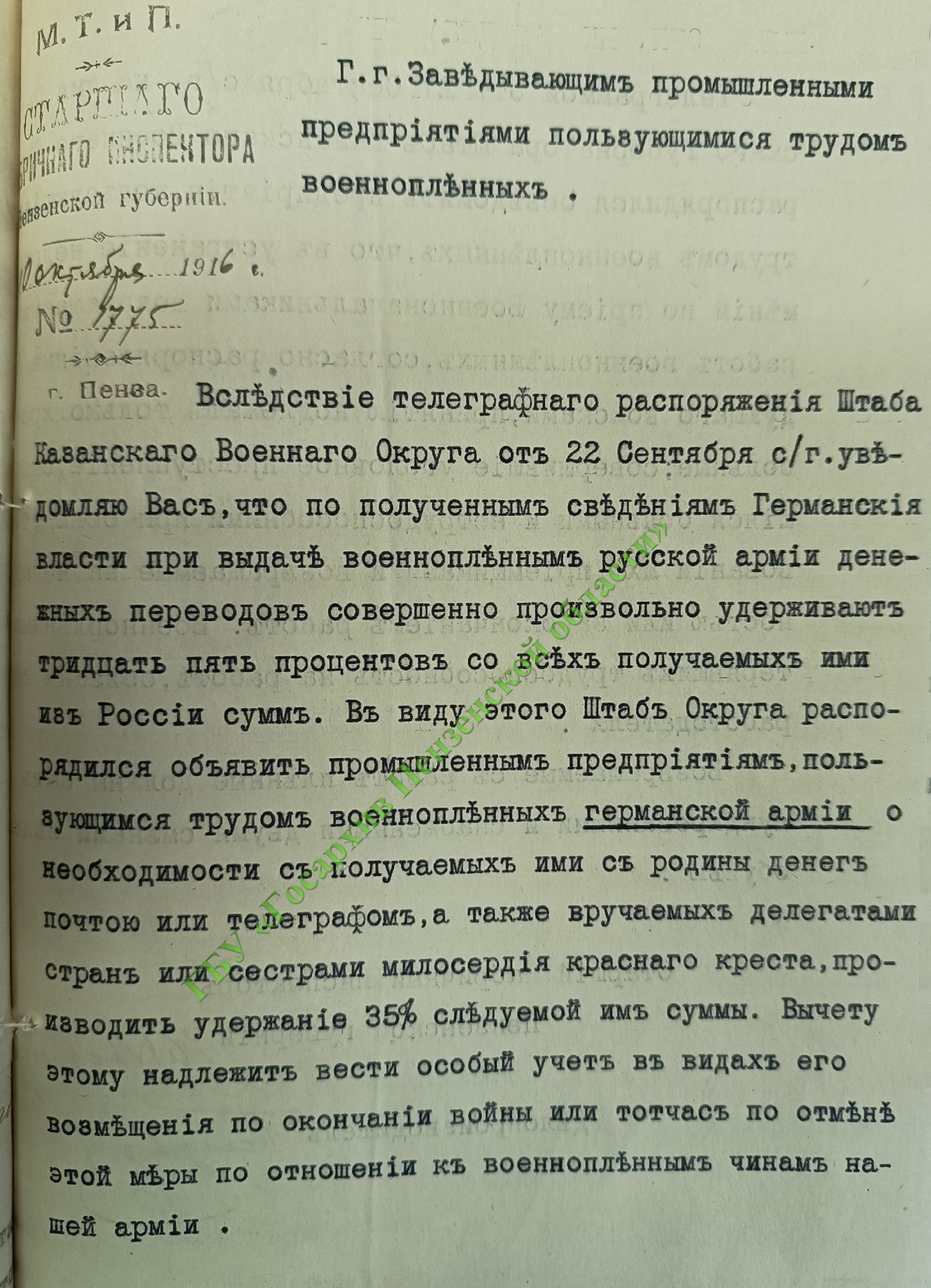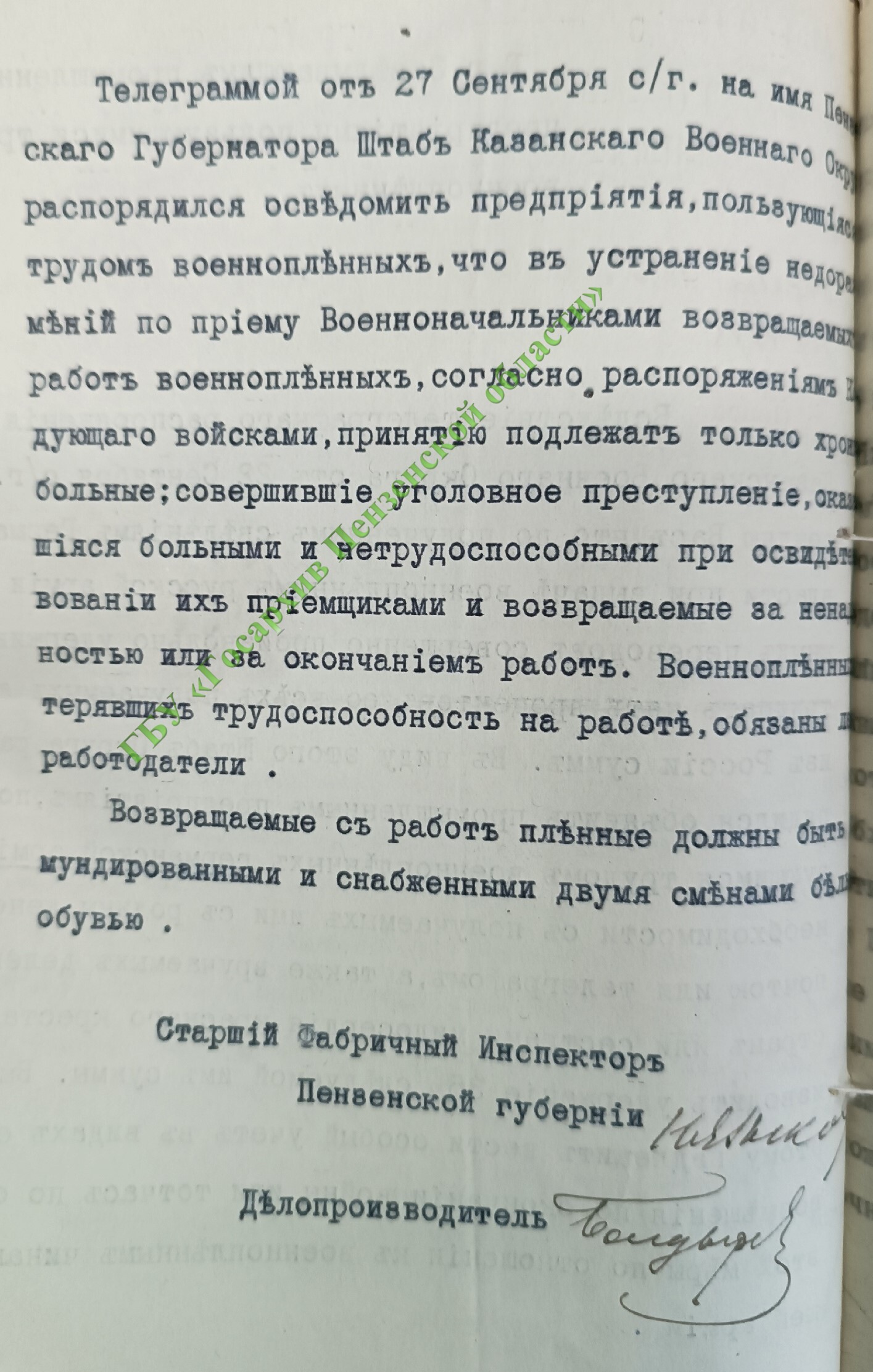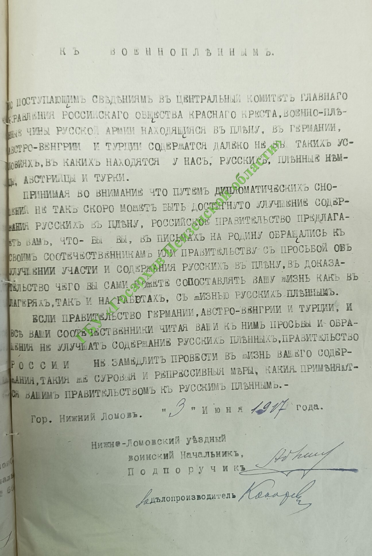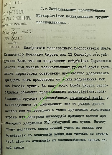 Так например, солдаты вражеских армий довольно вольготно чувствовали себя в Пензенской губернии: «некоторые пленные по ночам уходят гулять в соседние деревни, ходят одни в лавку, появляются на ярмарках, базарах и т.п.».