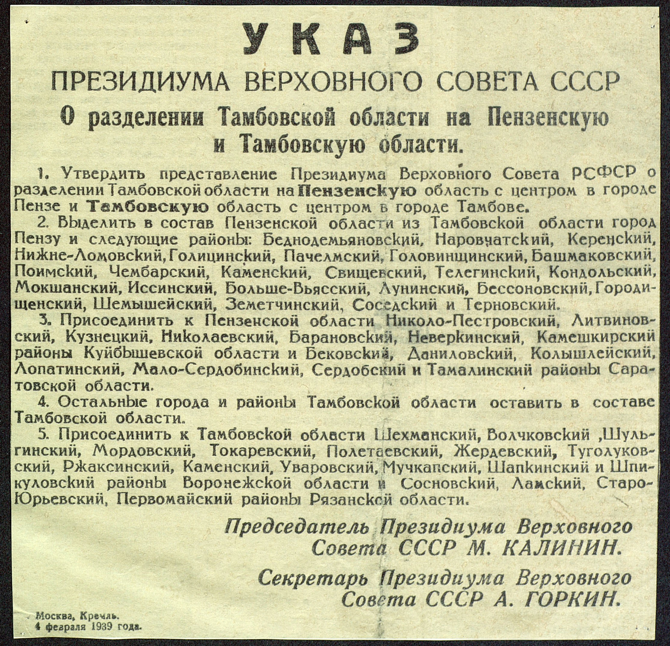 День учреждения Пензенской области