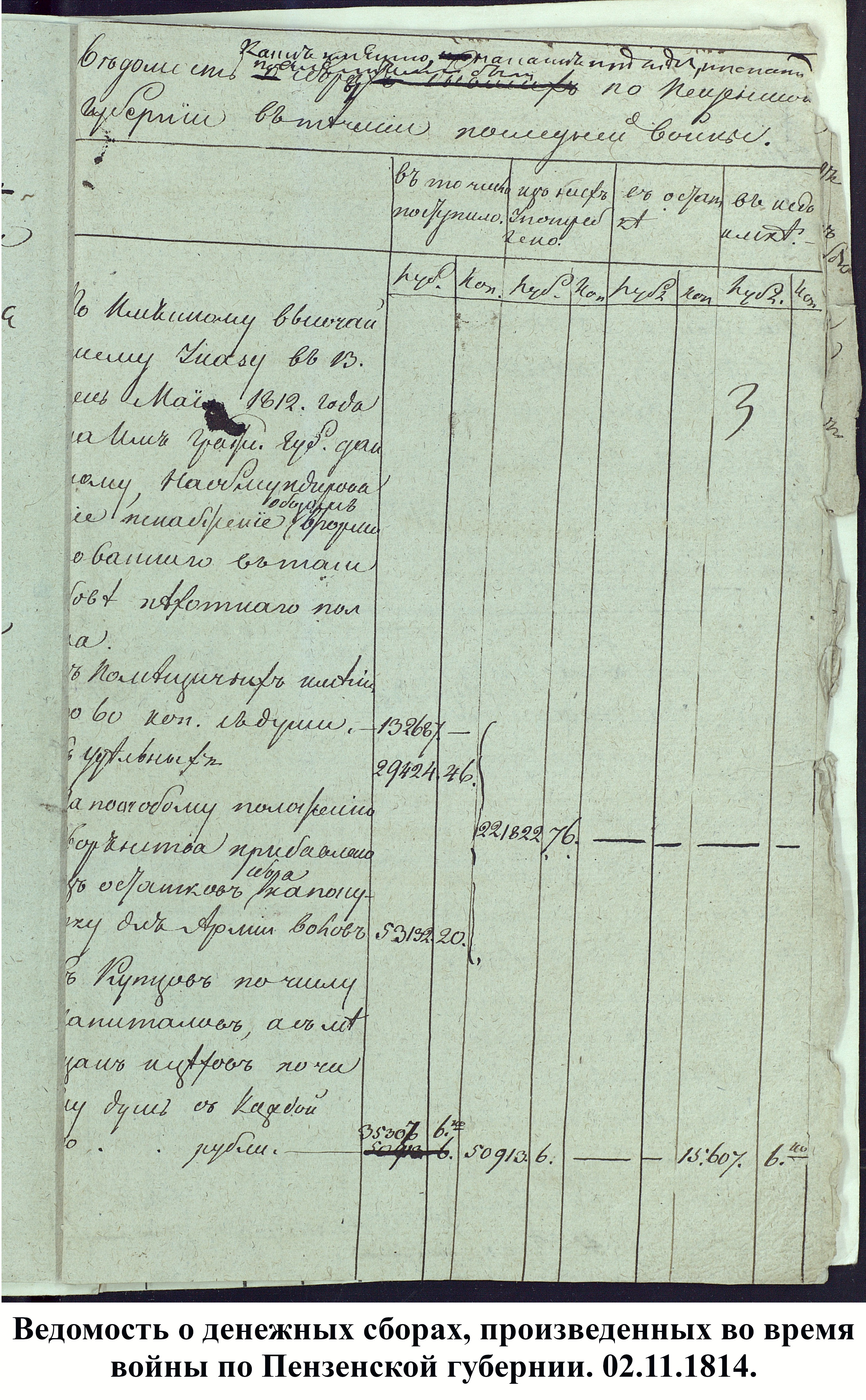 Урожай в Пензенской губернии в 1812 году был собран более обильный, чем в 1811 году, и жители края смогли отправить для армии большой обоз продовольствия и снаряжения. Вместе с ним пензяки собрали и послали войску 131.235 рублей.