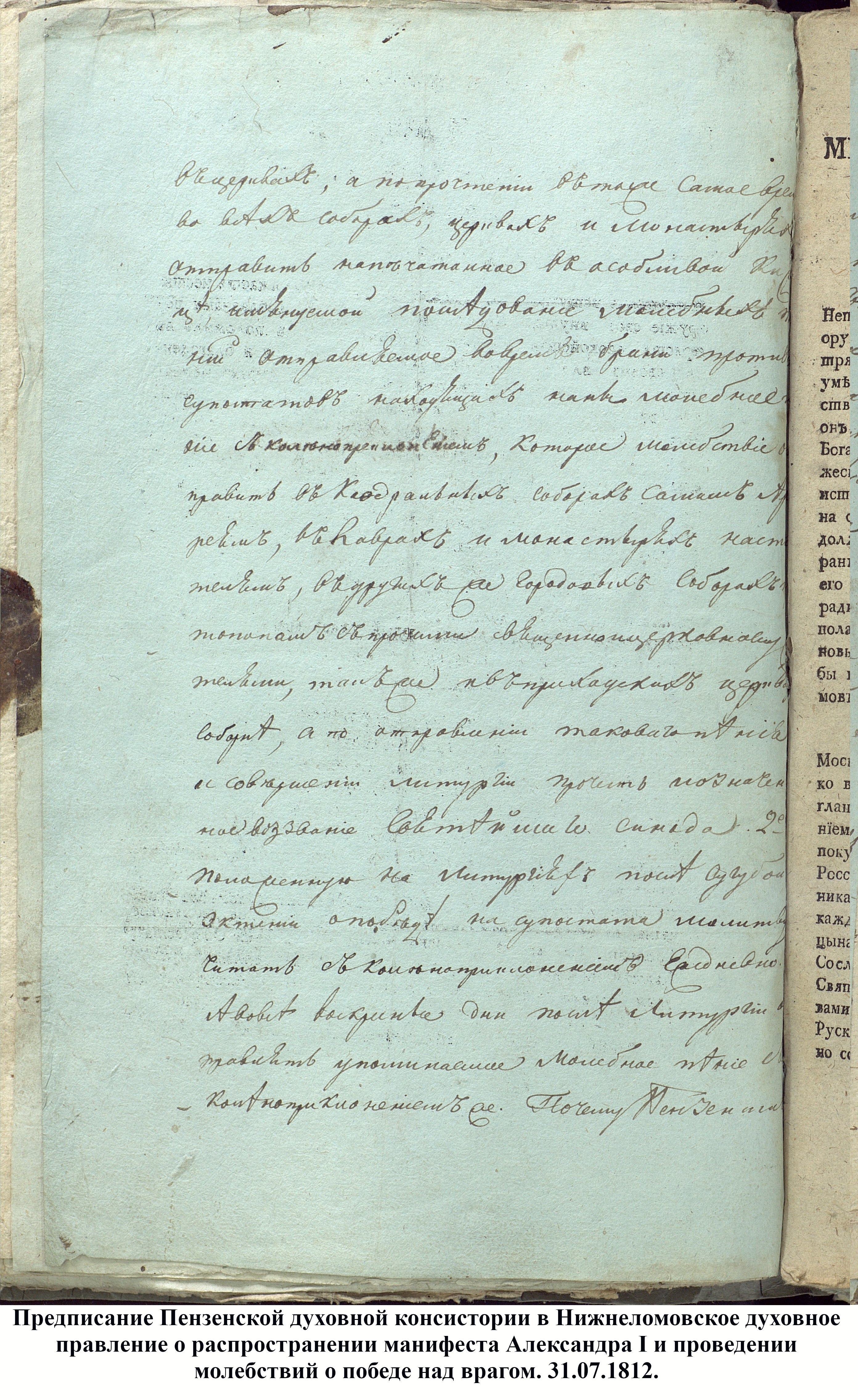 В ночь на 24 июня 1812 года армия Наполеона без объявления войны начала переход через реку Неман, отделявшую русскую границу от Польши. Известие об этом было получено в Пензе лишь на 19ый день после этого события. Вигель сообщает, что чиновник, посланный из Пензы с гуртом быков в Вильно, не мог довести их до места назначения. Он воротился на курьерских и сказал, что Наполеон уже в Вильно.