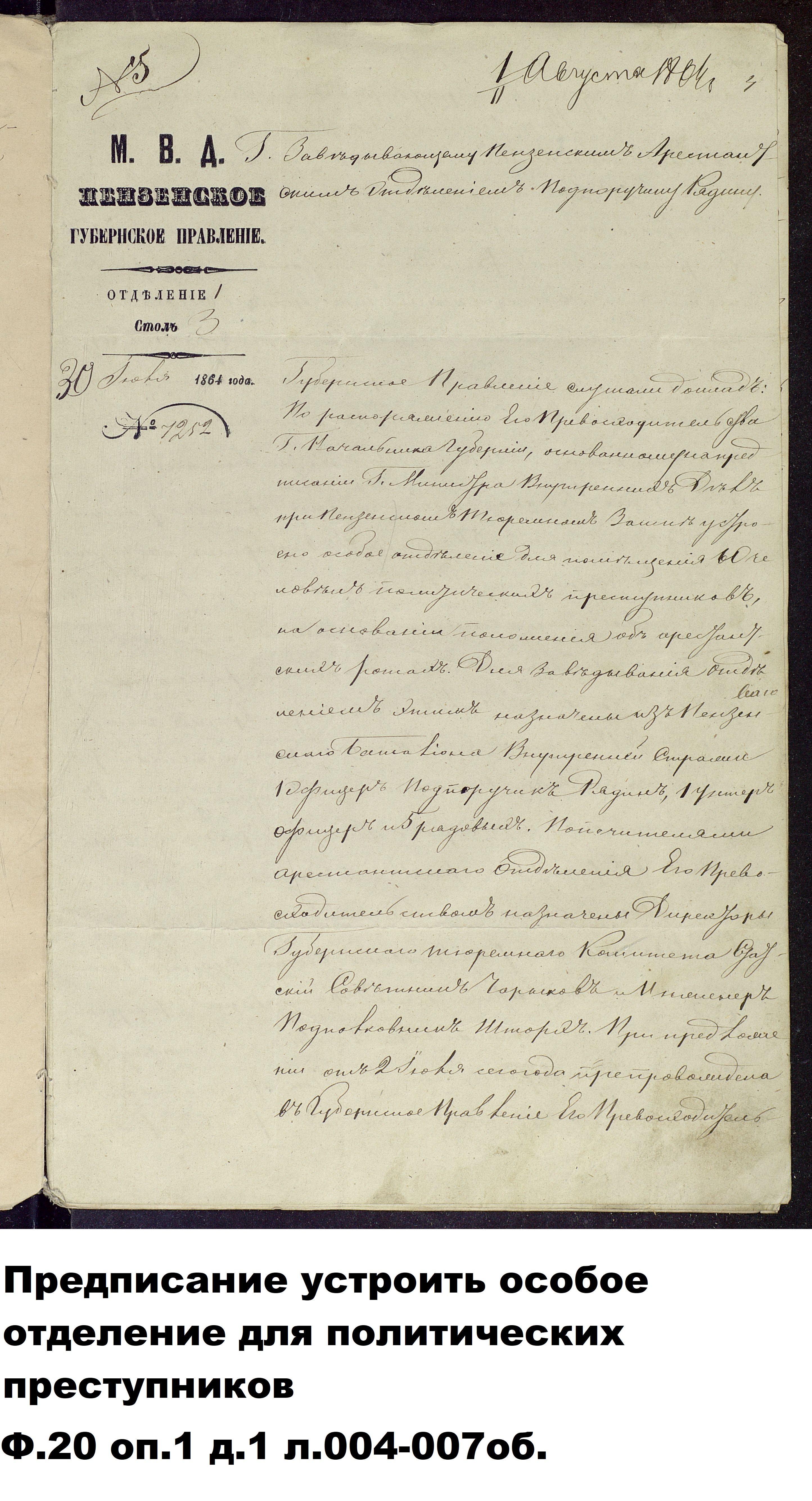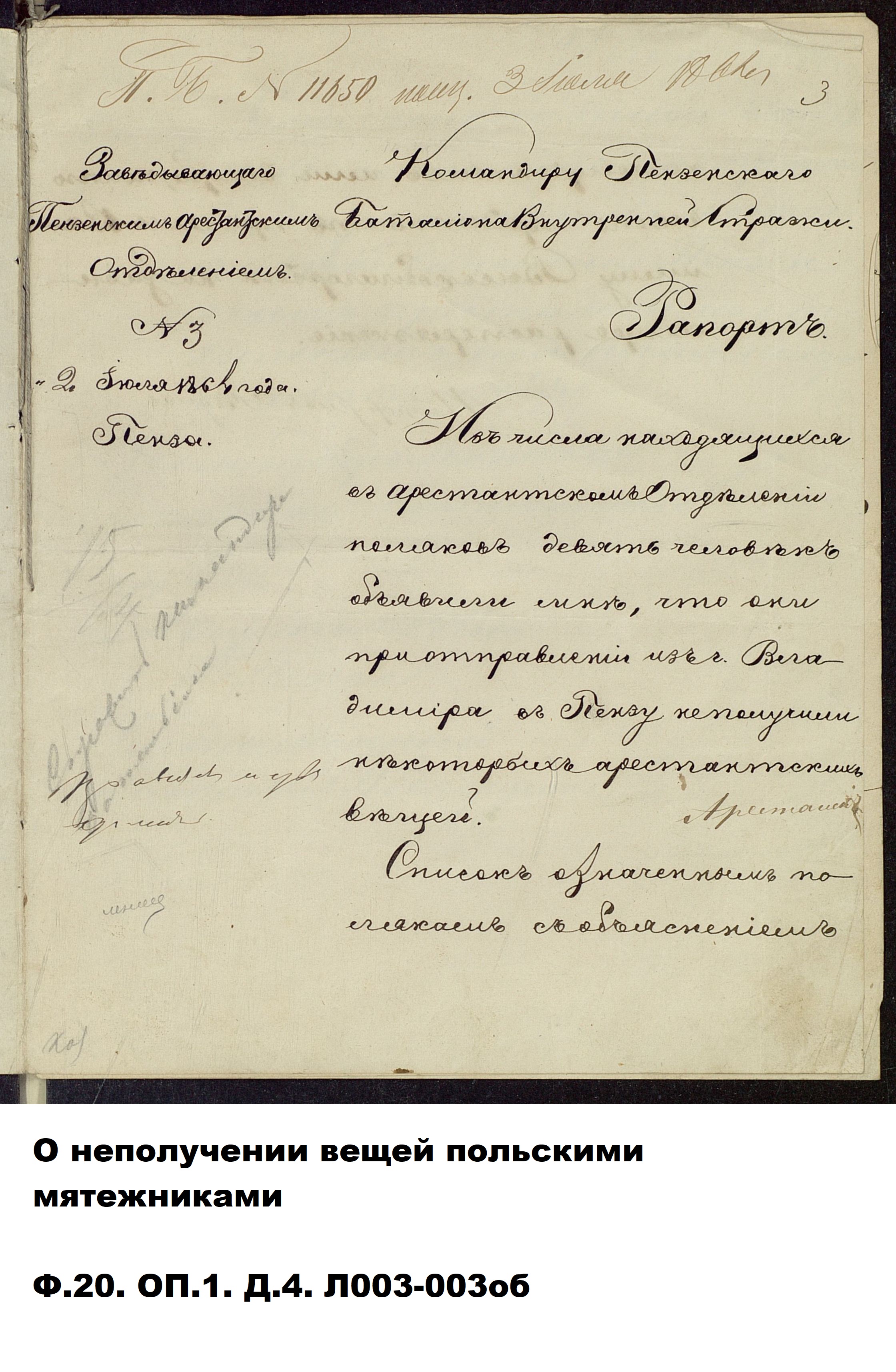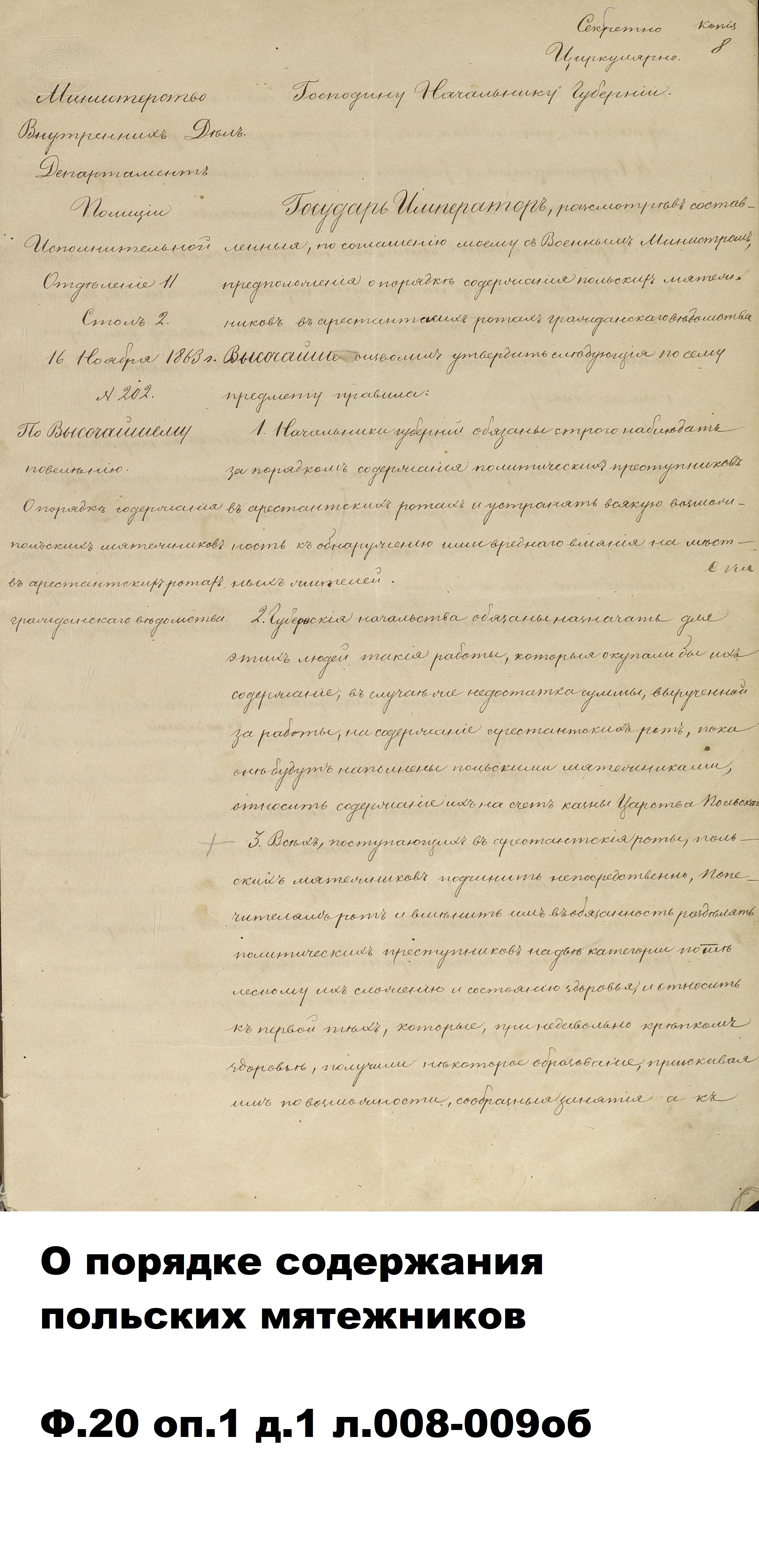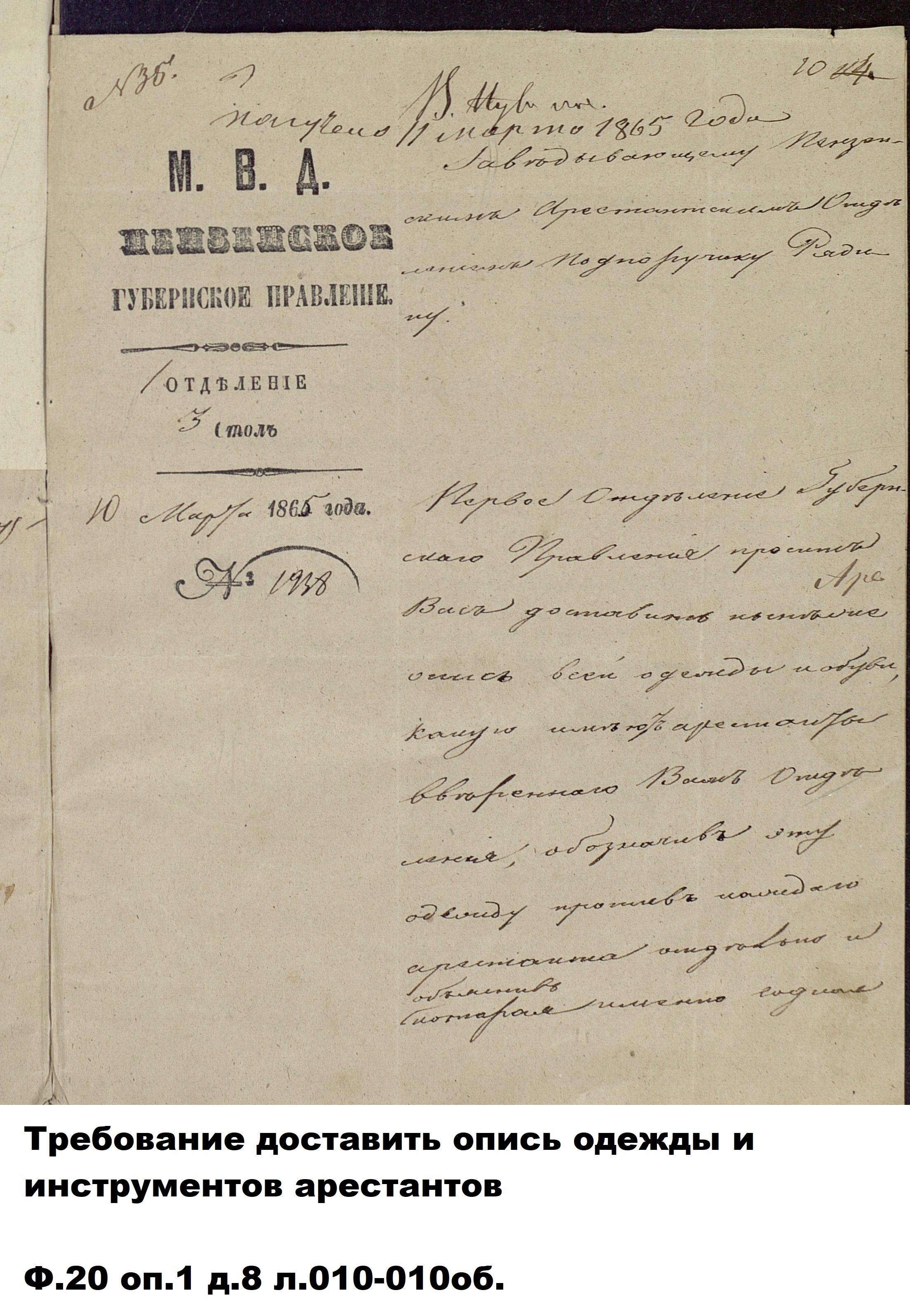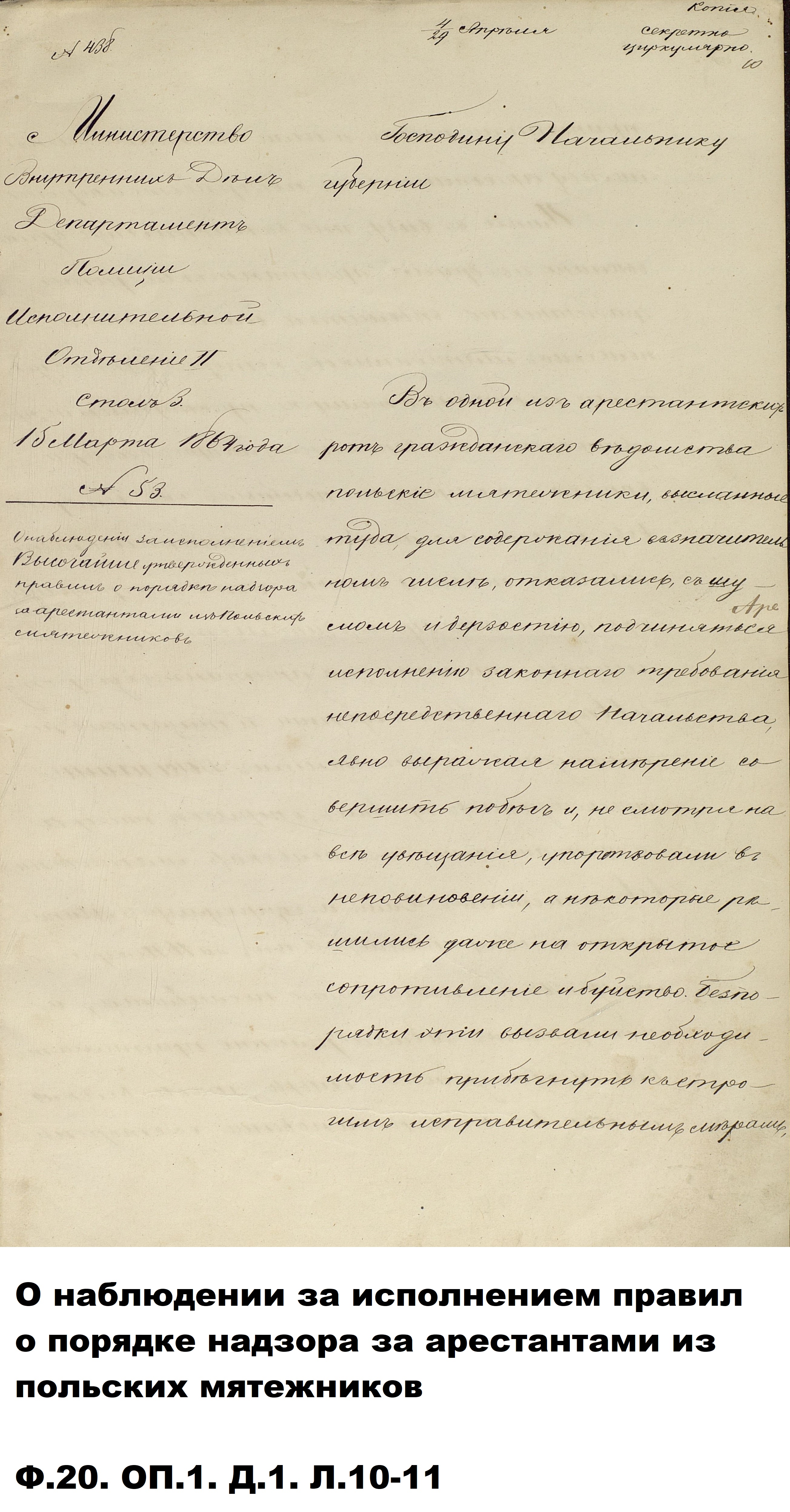 Контингент был особый, даже можно сказать непокорный, с характером. Вот о чём Министерство внутренних дел в марте 1864 года в секретном циркуляре предупреждало пензенского губернатора Василия Александровского: «В одной из арестантских рот польские мятежники отказались с шумом и дерзостью подчиняться исполнению законного требования непосредственного начальства, явно выражая намерение совершить побег и, несмотря на все увещевания, упорствовали в неповиновении, а некоторые решились даже на открытое сопротивление и буйство».