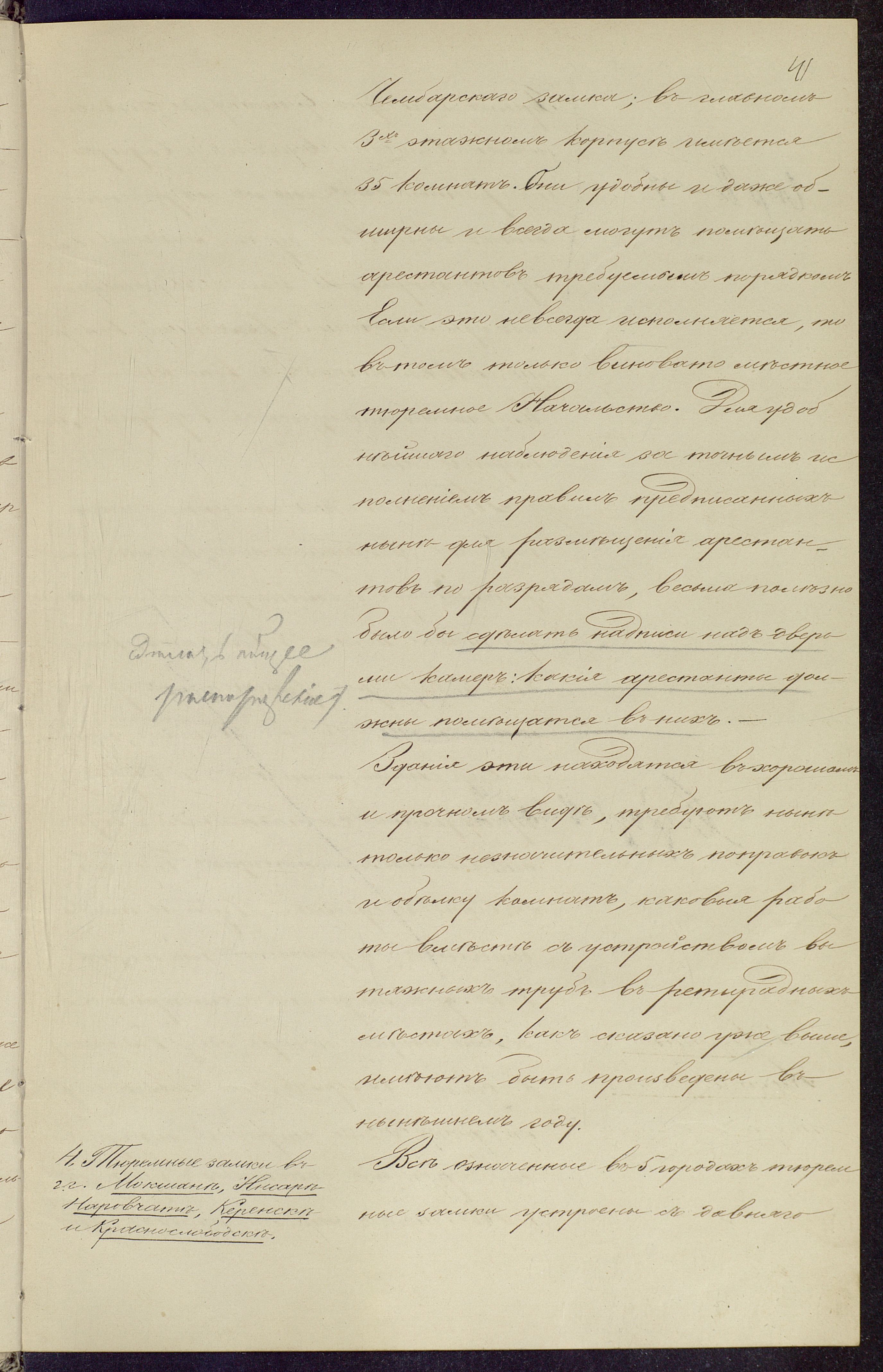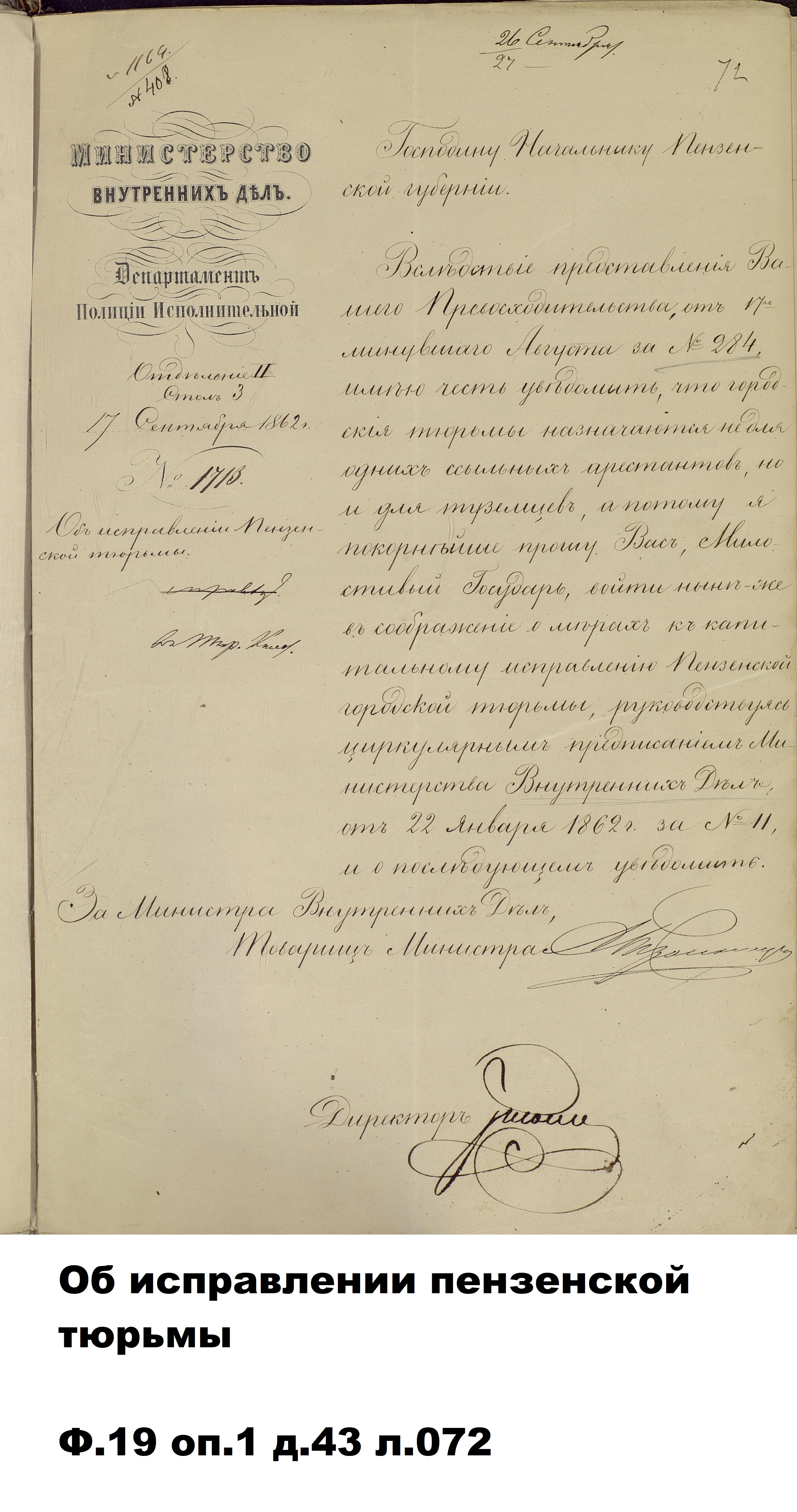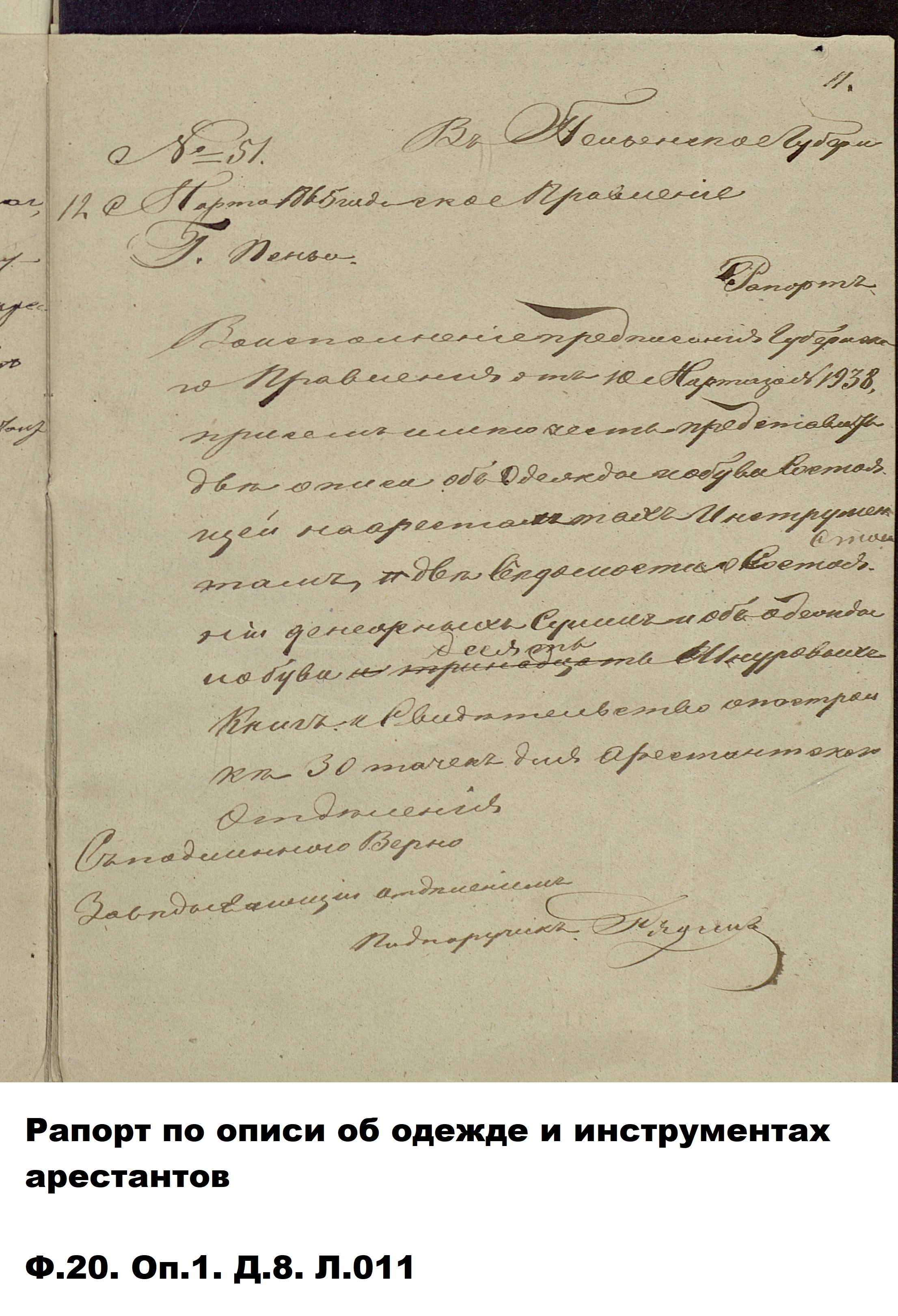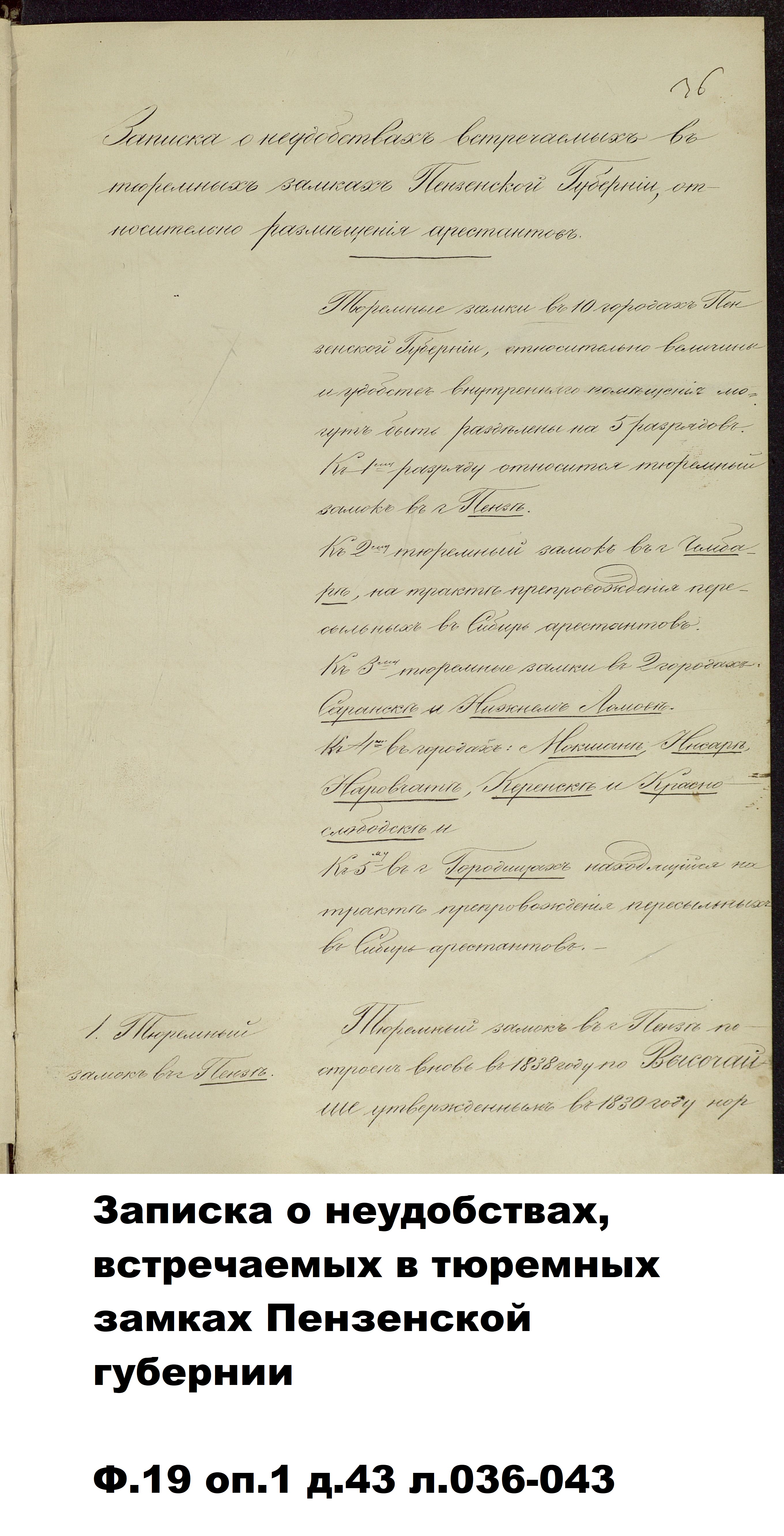 Само же здание губернской тюрьмы в те очень далёкие годы выглядело так: «Построен вновь в 1838 году на 150 арестантов и состоит из 2-этажного каменного корпуса о 33 комнатах с каменными одноэтажными службами и таковою кругом всех строений оградой»6. К числу служебных зданий относили кухни, амбары, сараи, склады и т.п. Была ли пензенская тюрьма современной для своего времени? Ответ на этот вопрос могут дать другие остроги губернии. Возьмём, например, Чембар. Тамошний замок был намного новее и построили его в 1856 году. Имелось 38 камер и, в отличие от пензенских, отличались они большей просторностью. Впрочем, даже при таких, как сказано в отчётах, более-менее комфортных условиях, многие требования по содержанию заключённых игнорировались. Директор губернского попечительского о тюрьмах комитета, подполковник Шторх докладывал: «Несмотря на достаточное число камер, прочие остаются незанятыми, вероятно для того, чтобы не отапливать и освещать лишние комнаты». Т.е., руководство некоторых тюрем на «коммуналке» старалось экономить