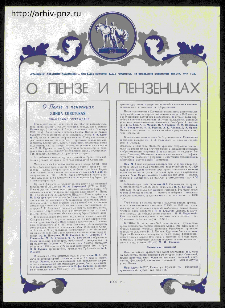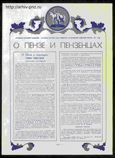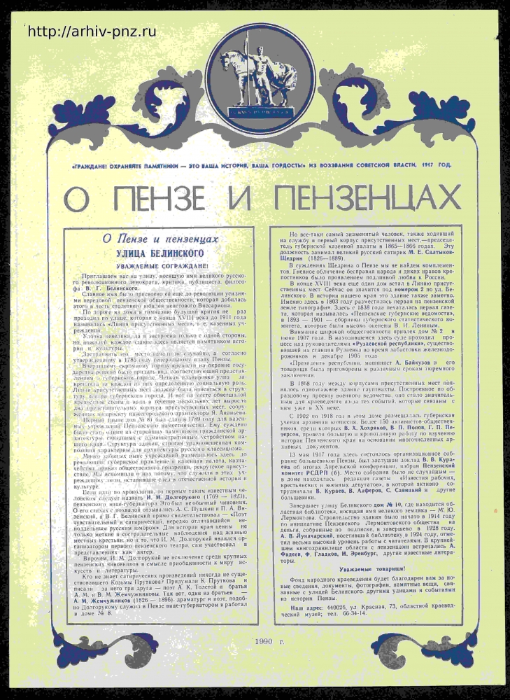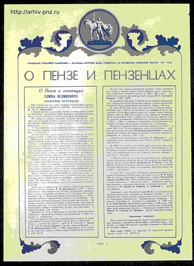 Плакаты Пензенского областного отделения Всероссийского общества охраны памятников истории и культуры. 1990 год.