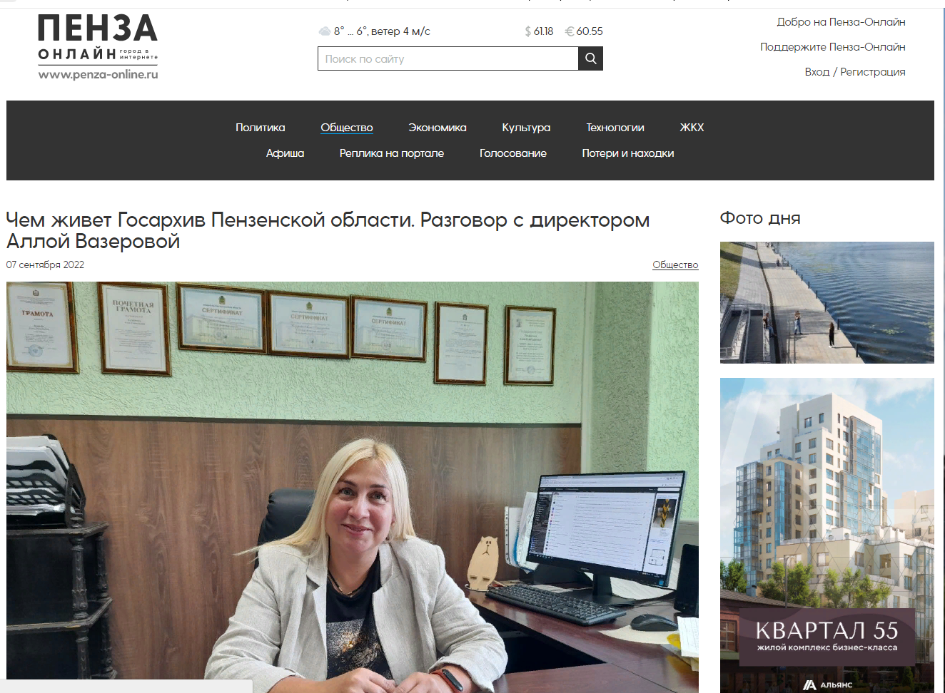 Чем живет Госархив Пензенской области. Разговор с директором Аллой Вазеровой 07 сентября 2022 ИА "Пенза-онлайн"