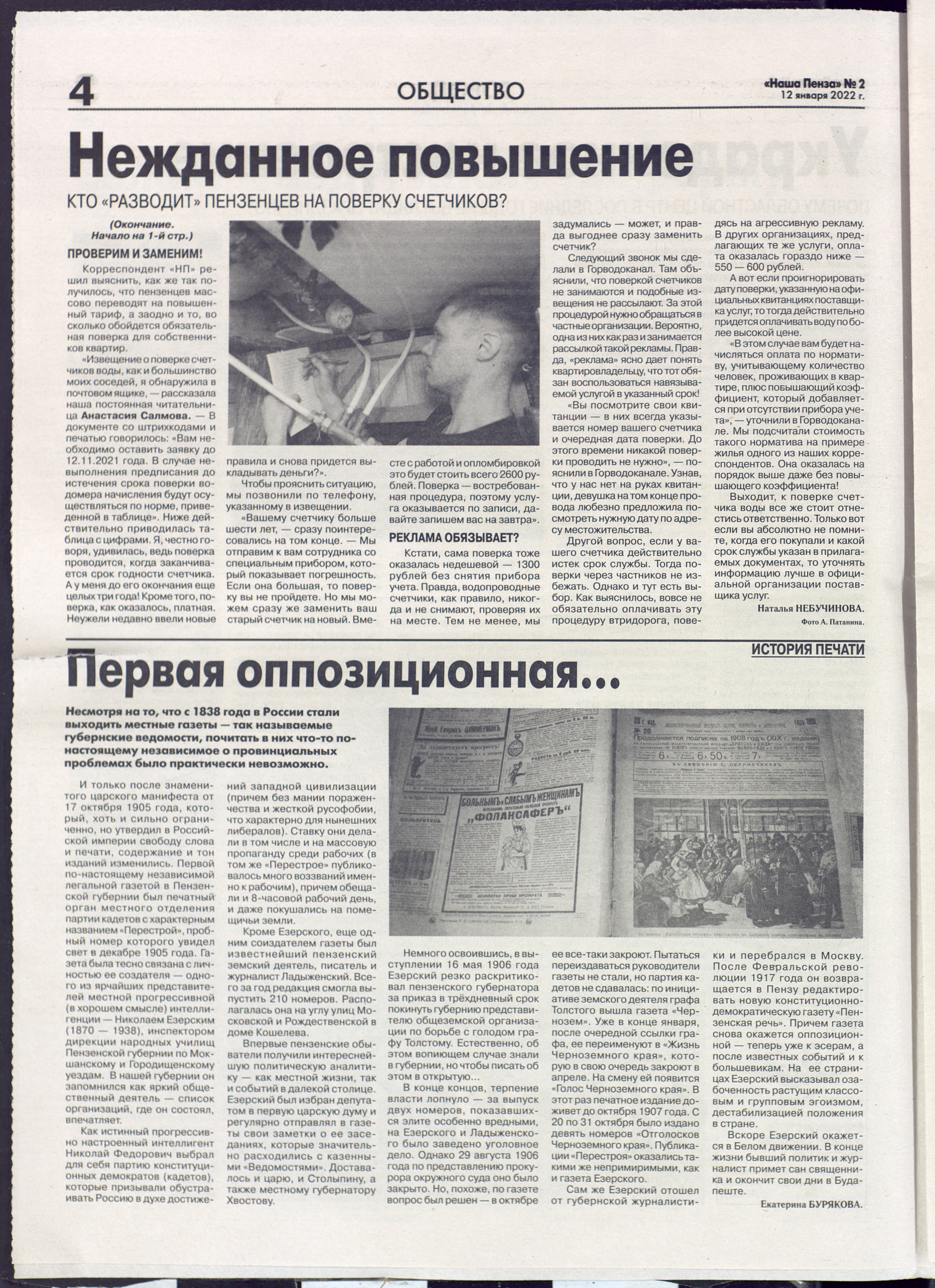 Первая оппозиционная. Наша Пенза. 12 января . № 2