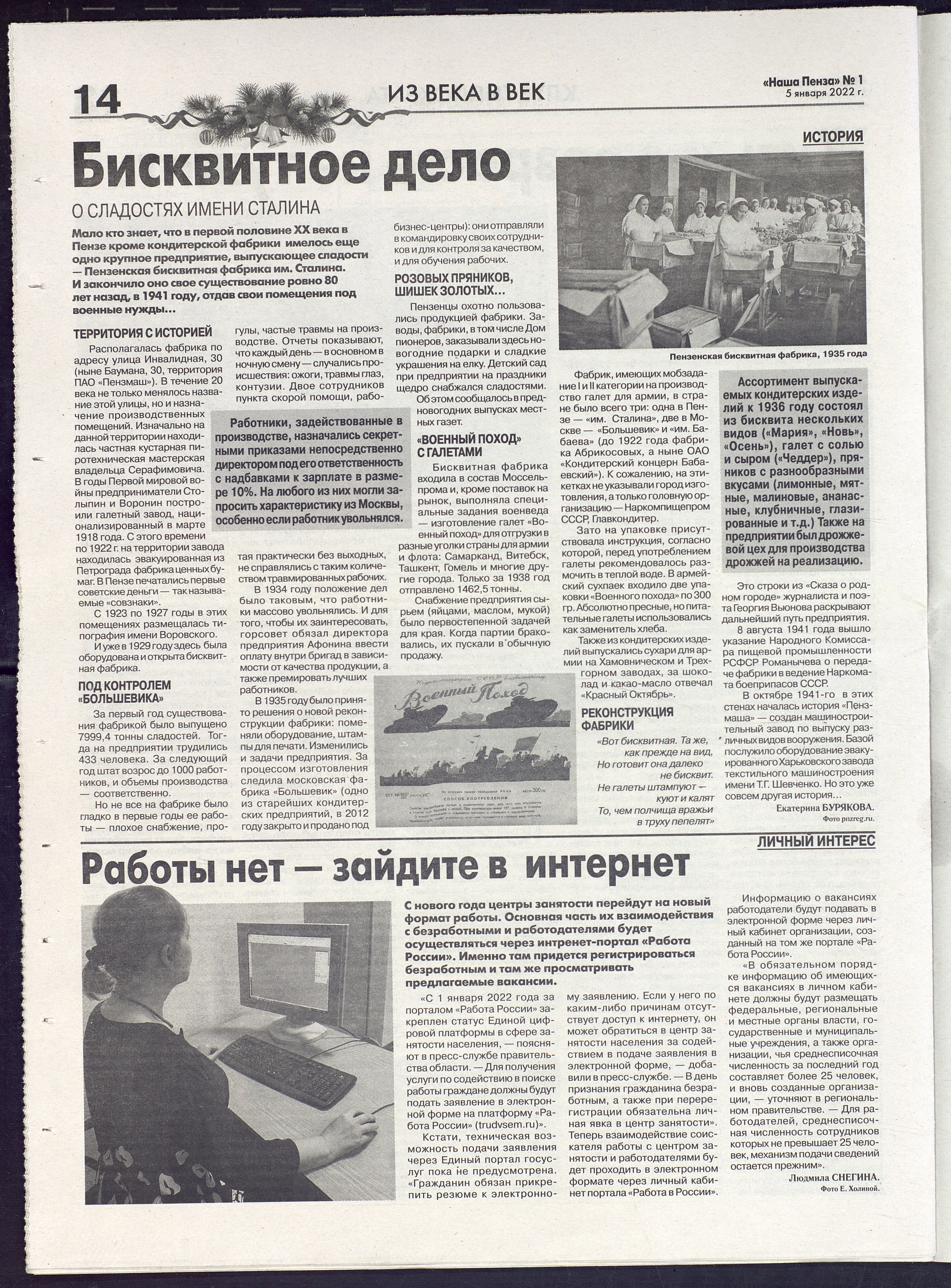 Бисквитное дело. О сладостях имени Сталина. Наша Пенза. № 1. 5 января 2022года.