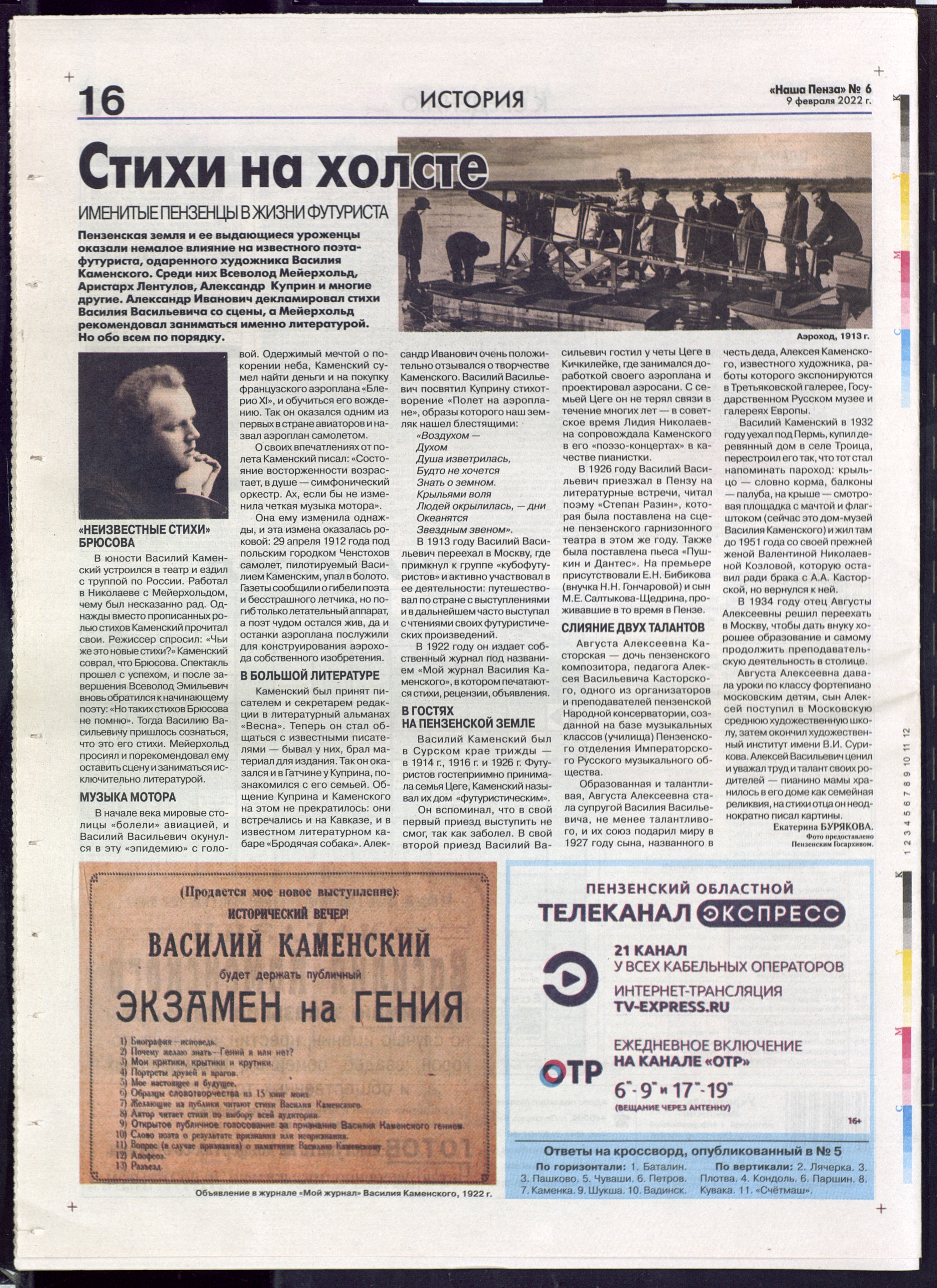 Стихи на холсте. Наша Пенза № 6.9 февраля. 2022 года