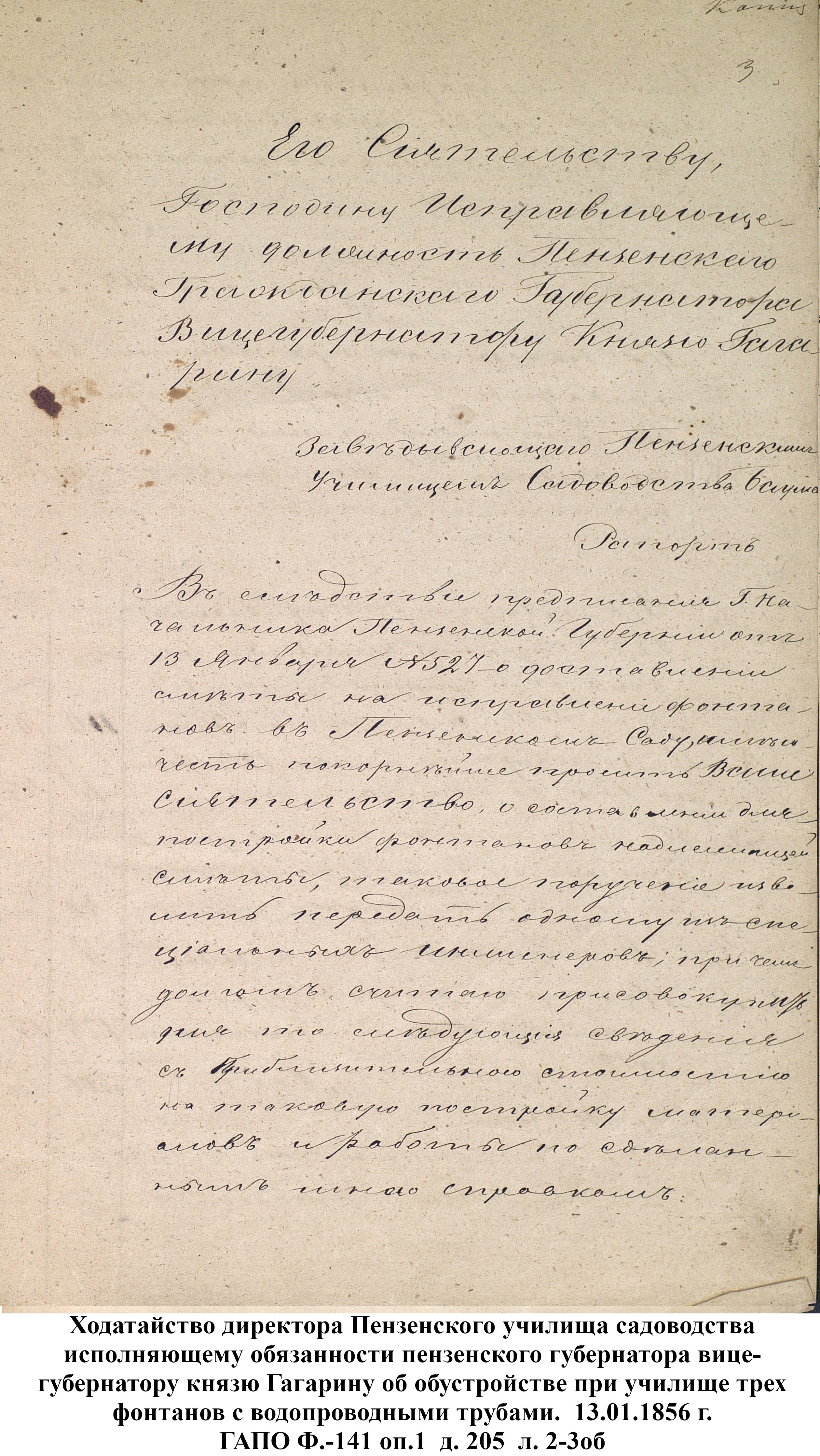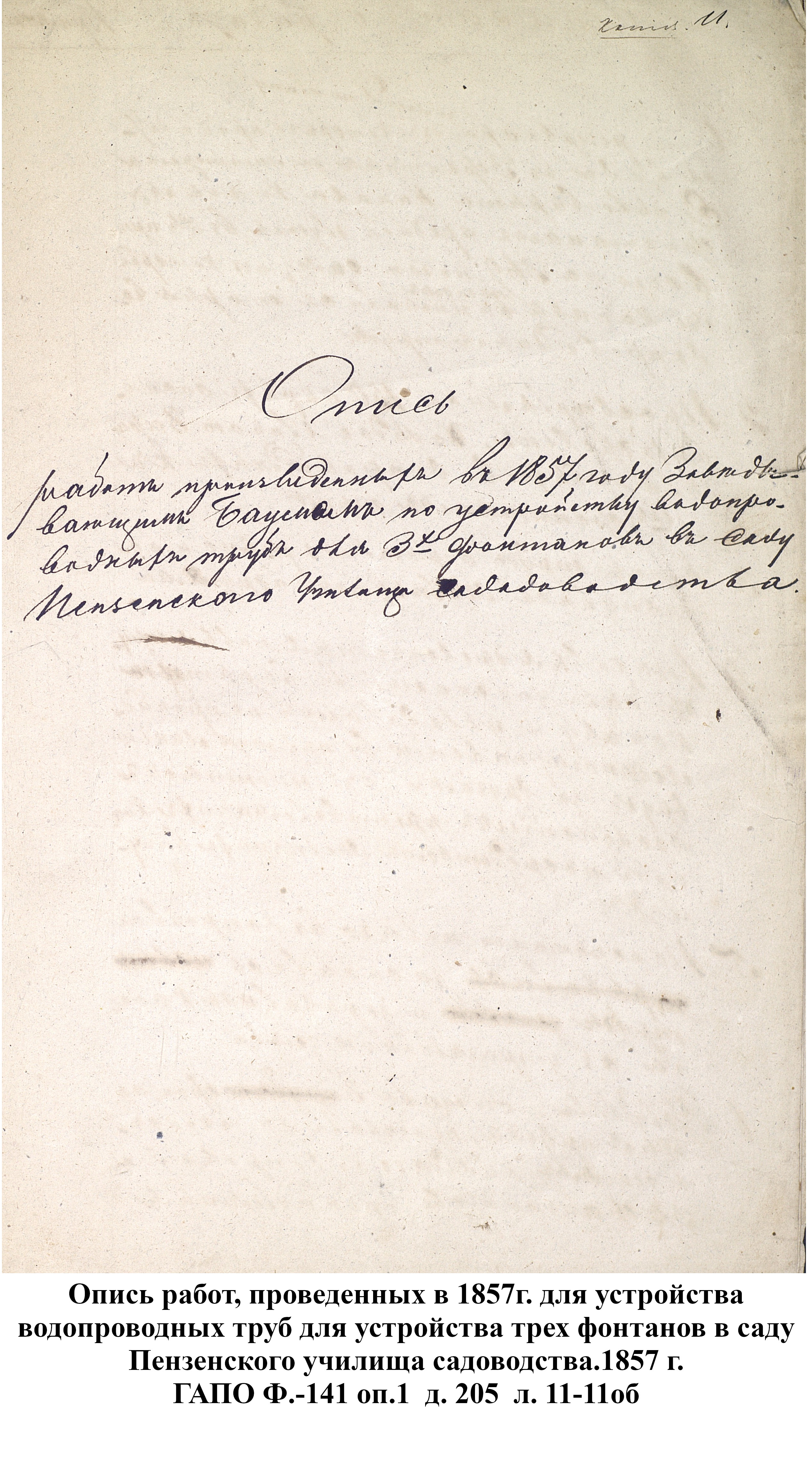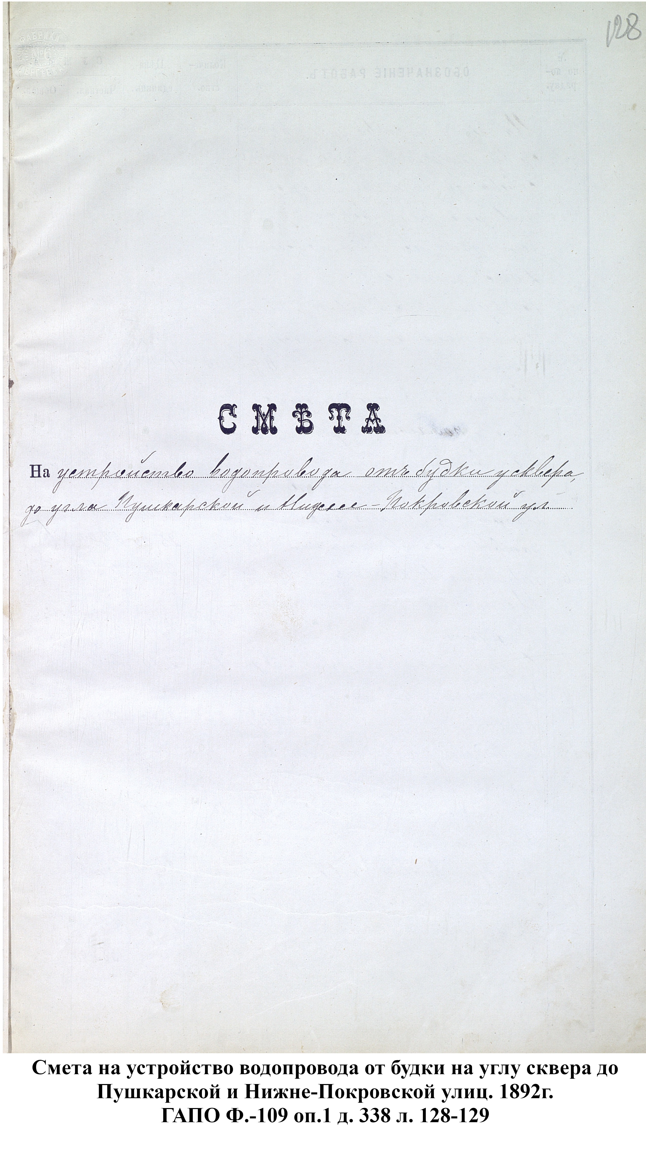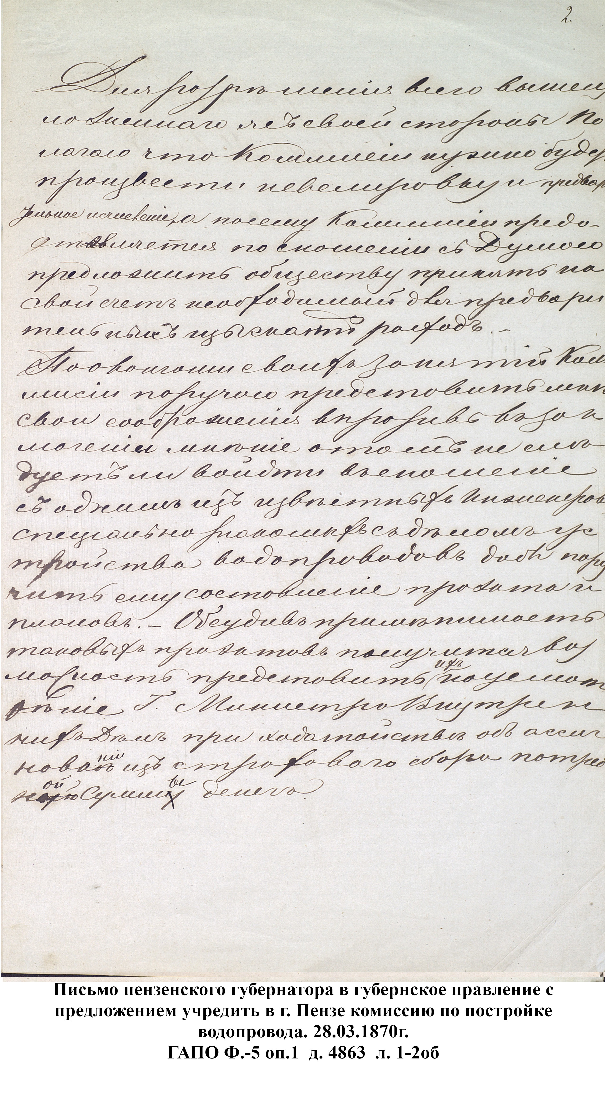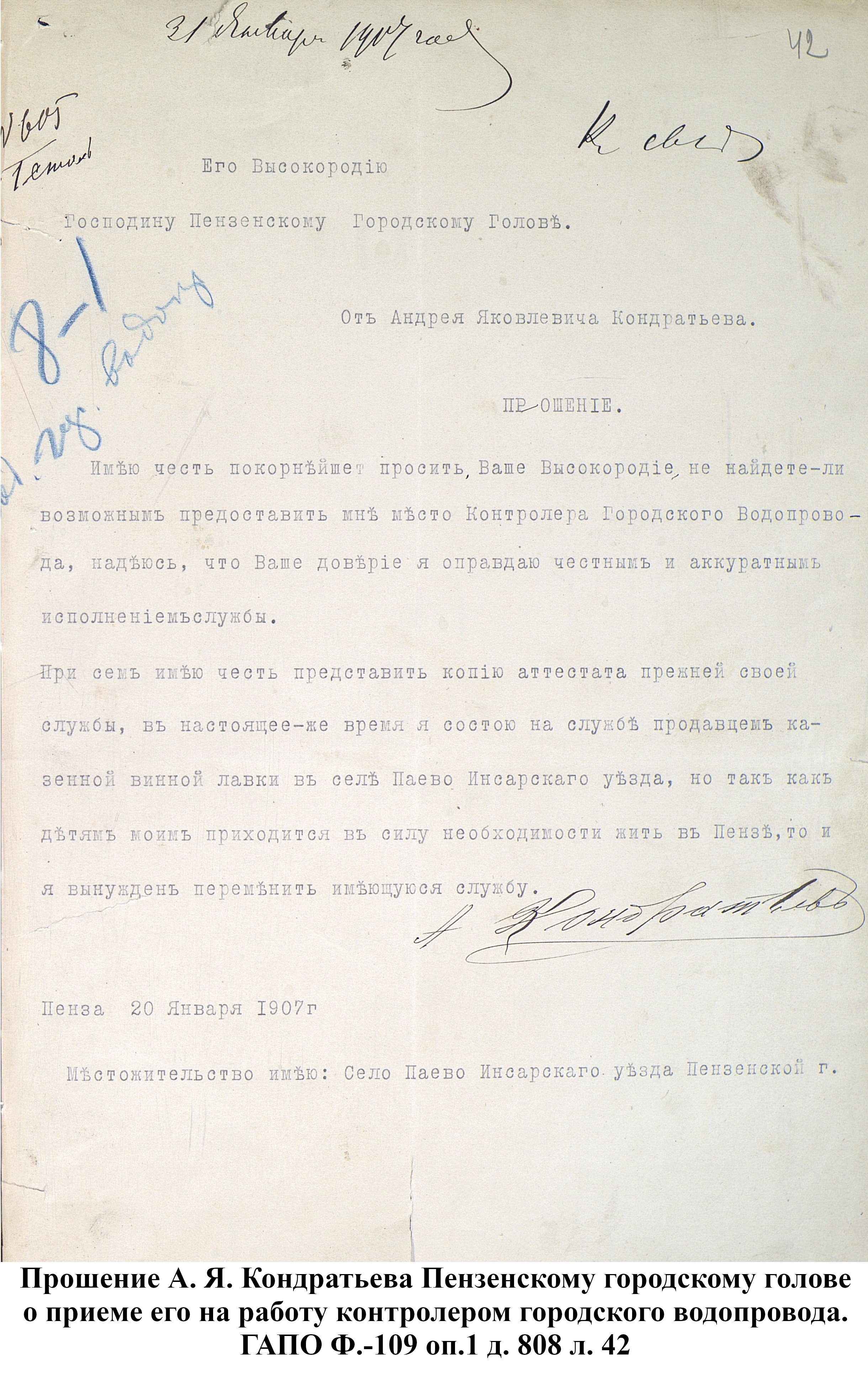 До 1889 года бедное население города Пензы, живущее по преимуществу в нижней части и в его заречной стороне пользовалось исключительно водой из реки Пензы; состоятельный же класс жителей был в более счастливых условиях: он снабжался вполне здоровой водой, получаемой из нескольких колодцев, устроенных в нагорной части города. Но эти колодцы давали слишком ограниченное количество хорошей воды, которой едва хватало для питья и приготовления пищи, вследствие чего для других надобностей приходилось пользоваться водой плохого качества, подвозимой водовозами из реки Пензы. Остальная часть города из реки брала воду для всех нужд.