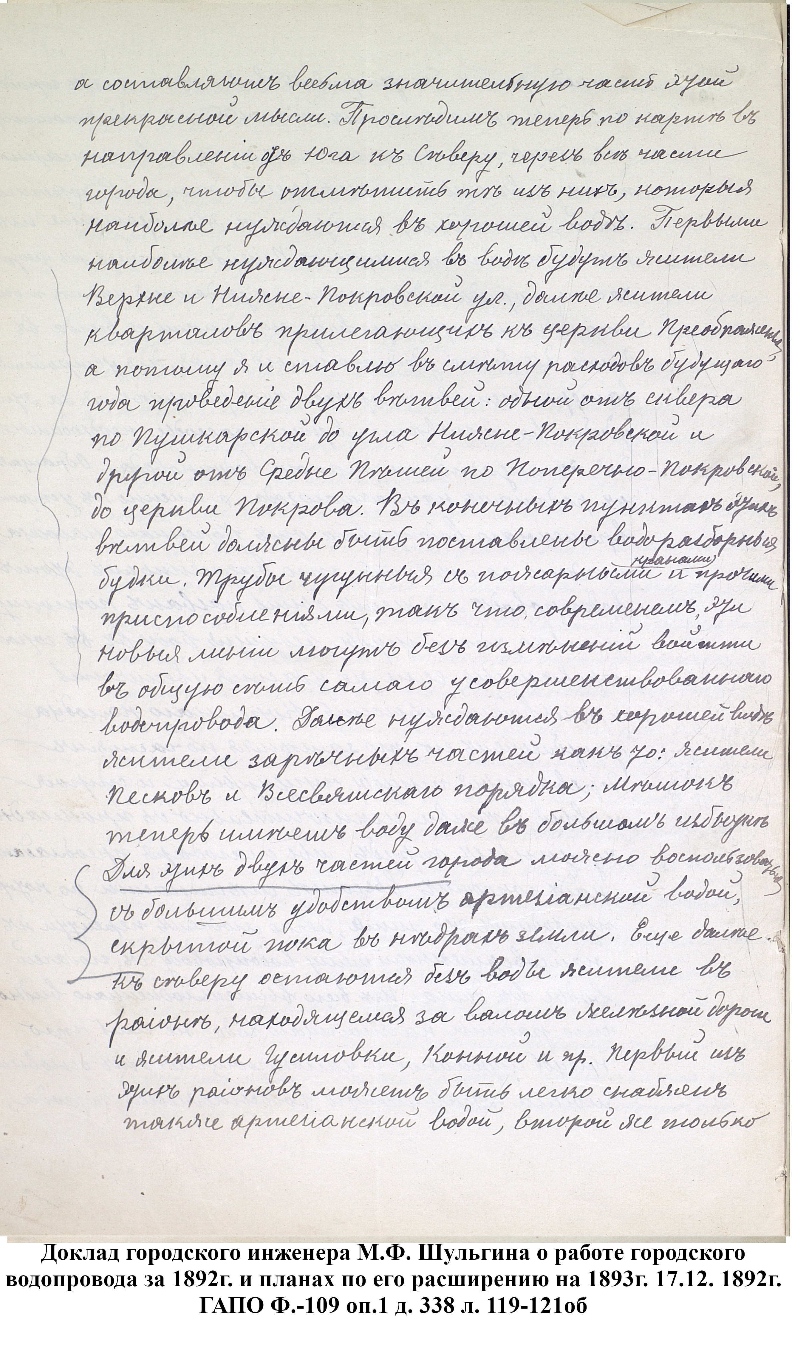 Реконструкция водопровода происходила неоднократно, увеличивалась протяженность сетей - в 1898 году она составляла 12,8 км, а в 1906 она увеличилась до 22,5 км.