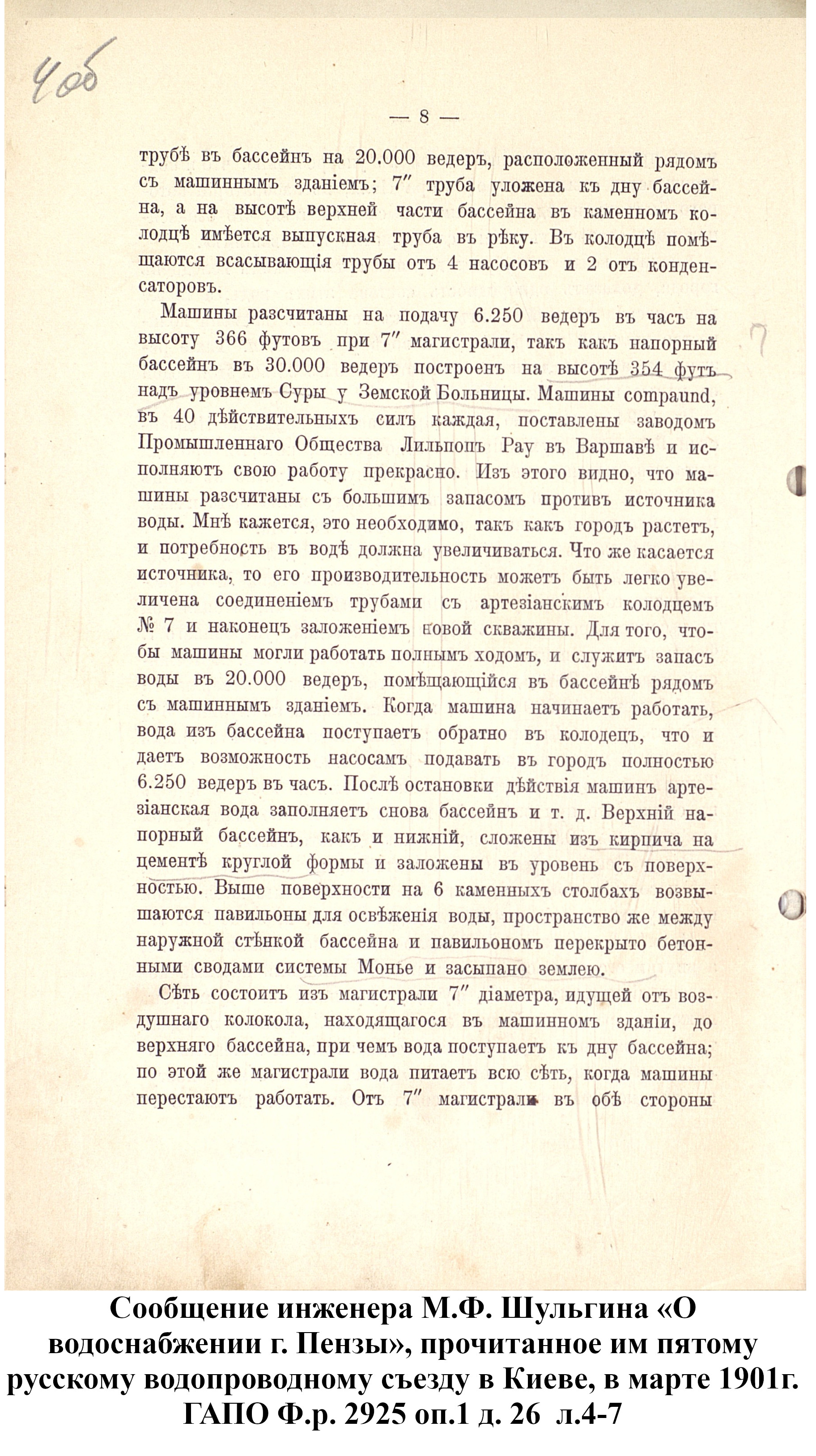 Но и это незначительное количество воды пензенцами не использовалось полностью. Причин для этого было несколько: 1)вода из скважин была платная – 1/5 копейки с ведра, что бедному населению было платить не по силам; 2) близость рек и частных колодцев; 3) нечистоплотность горожан.