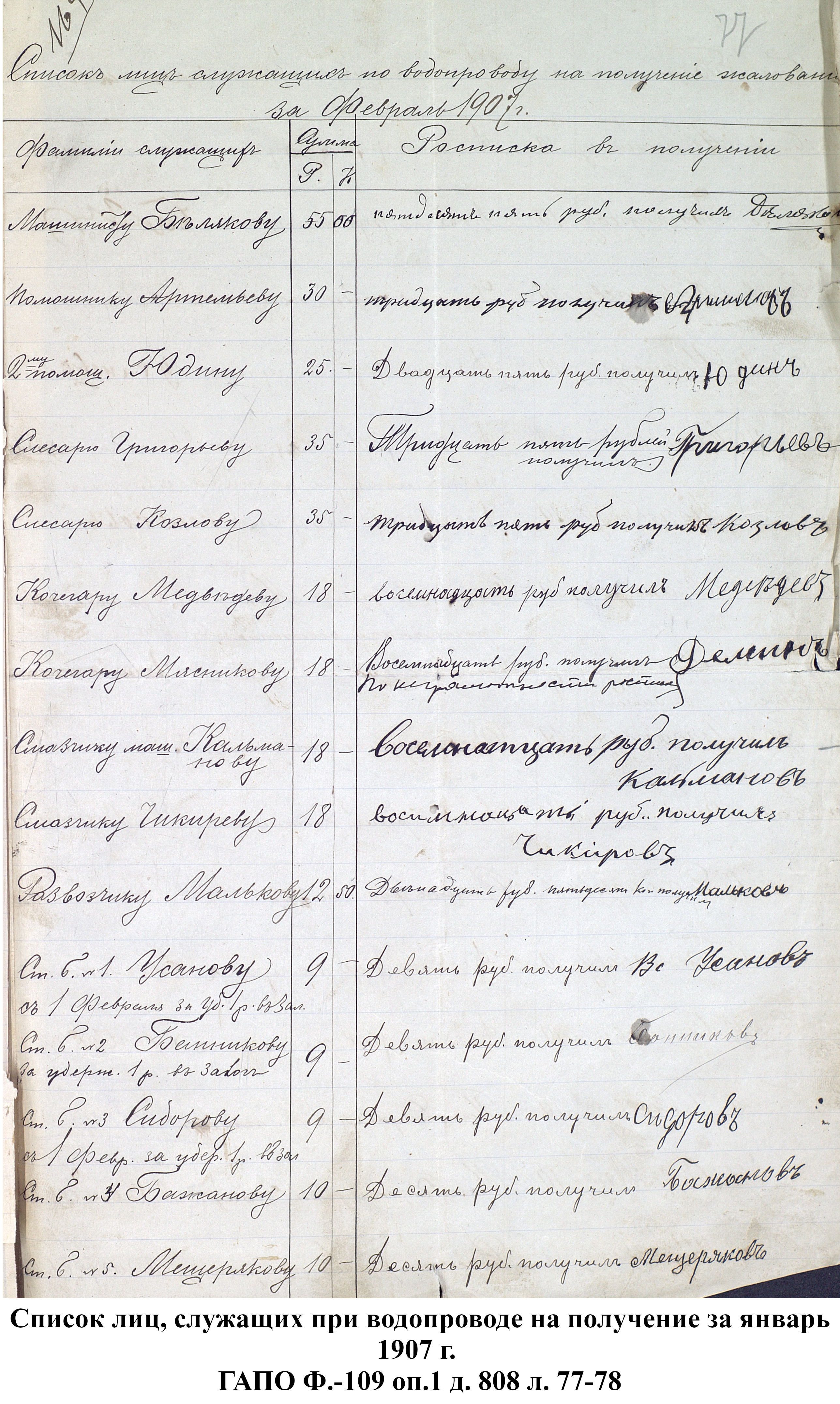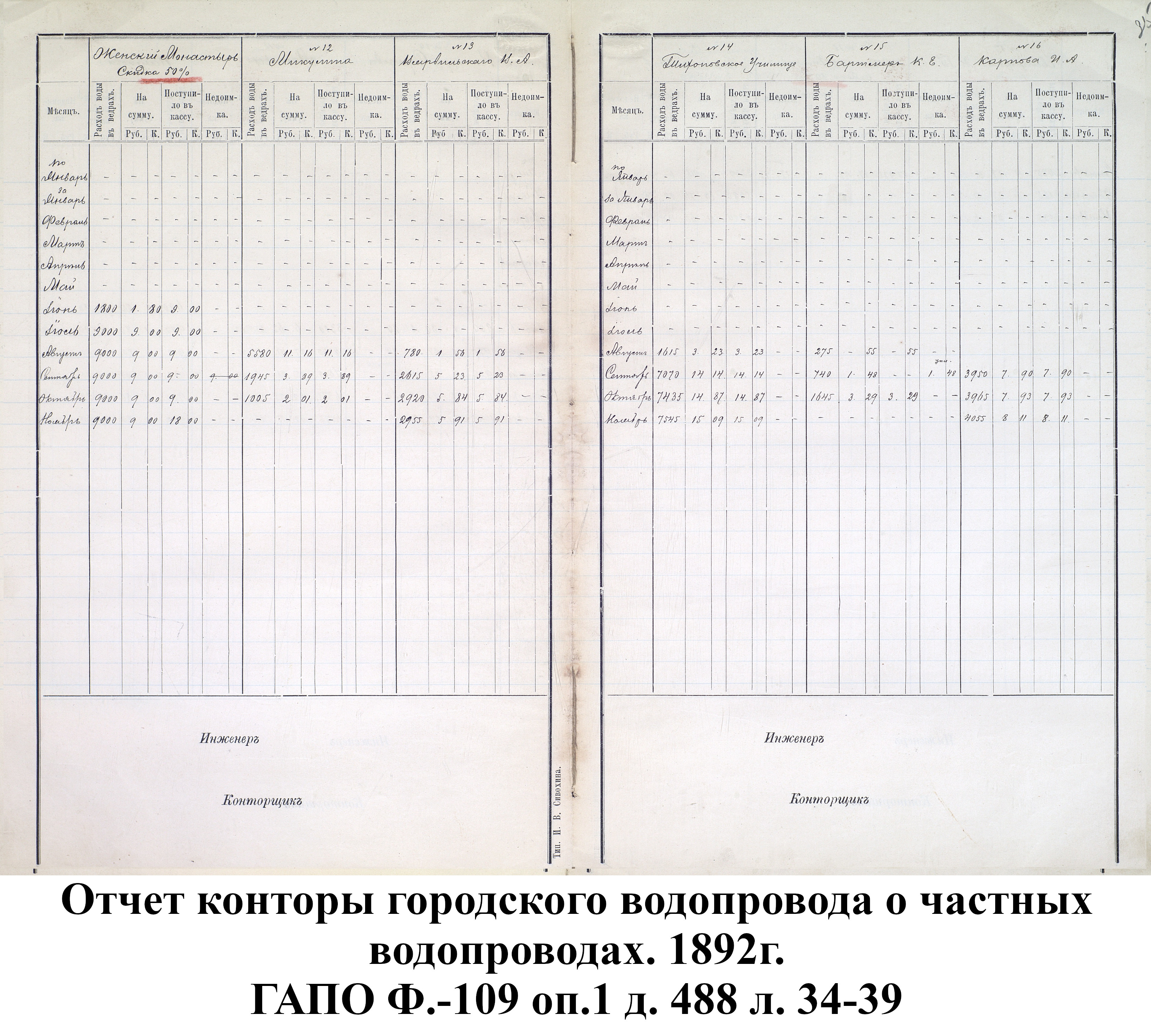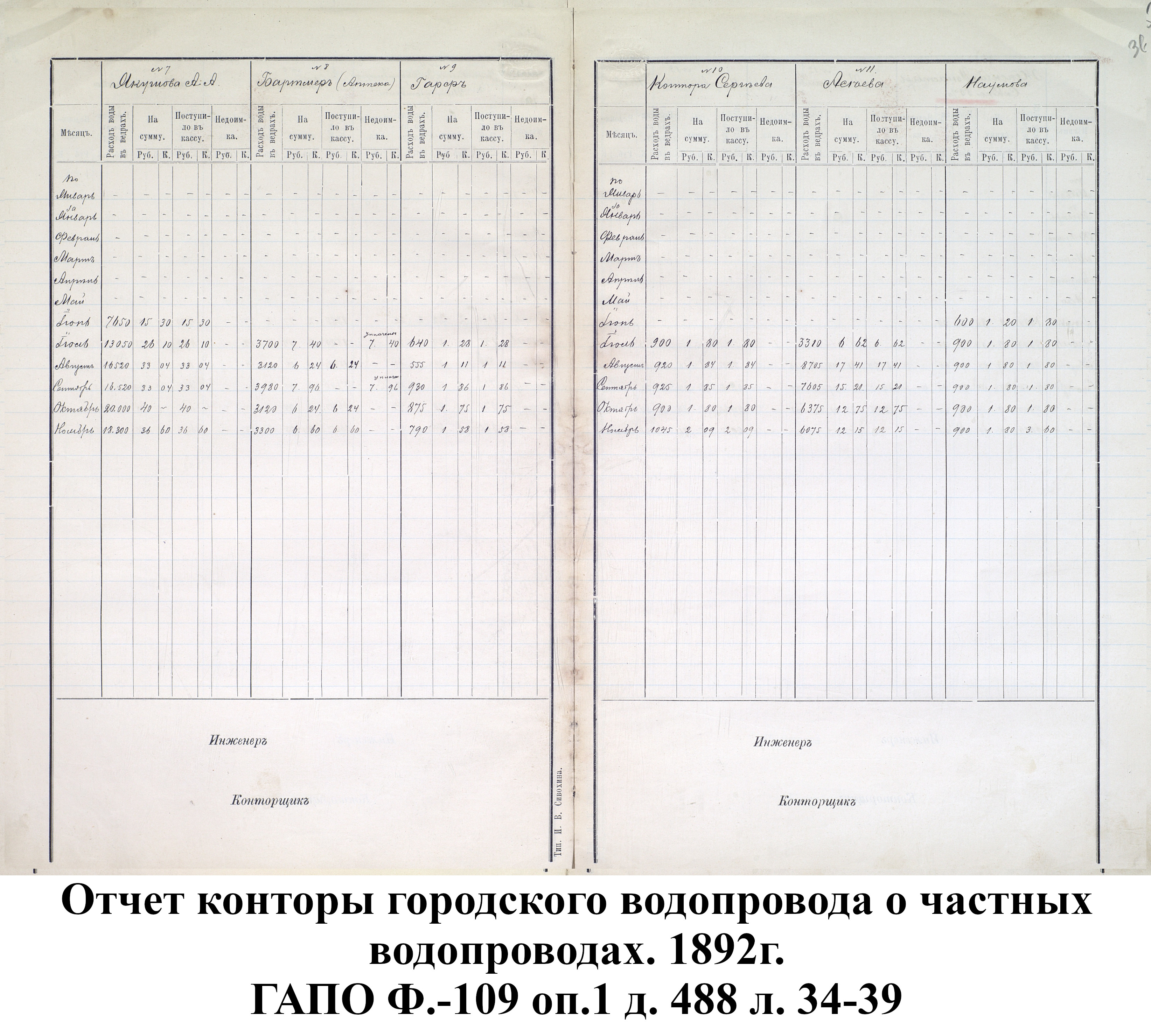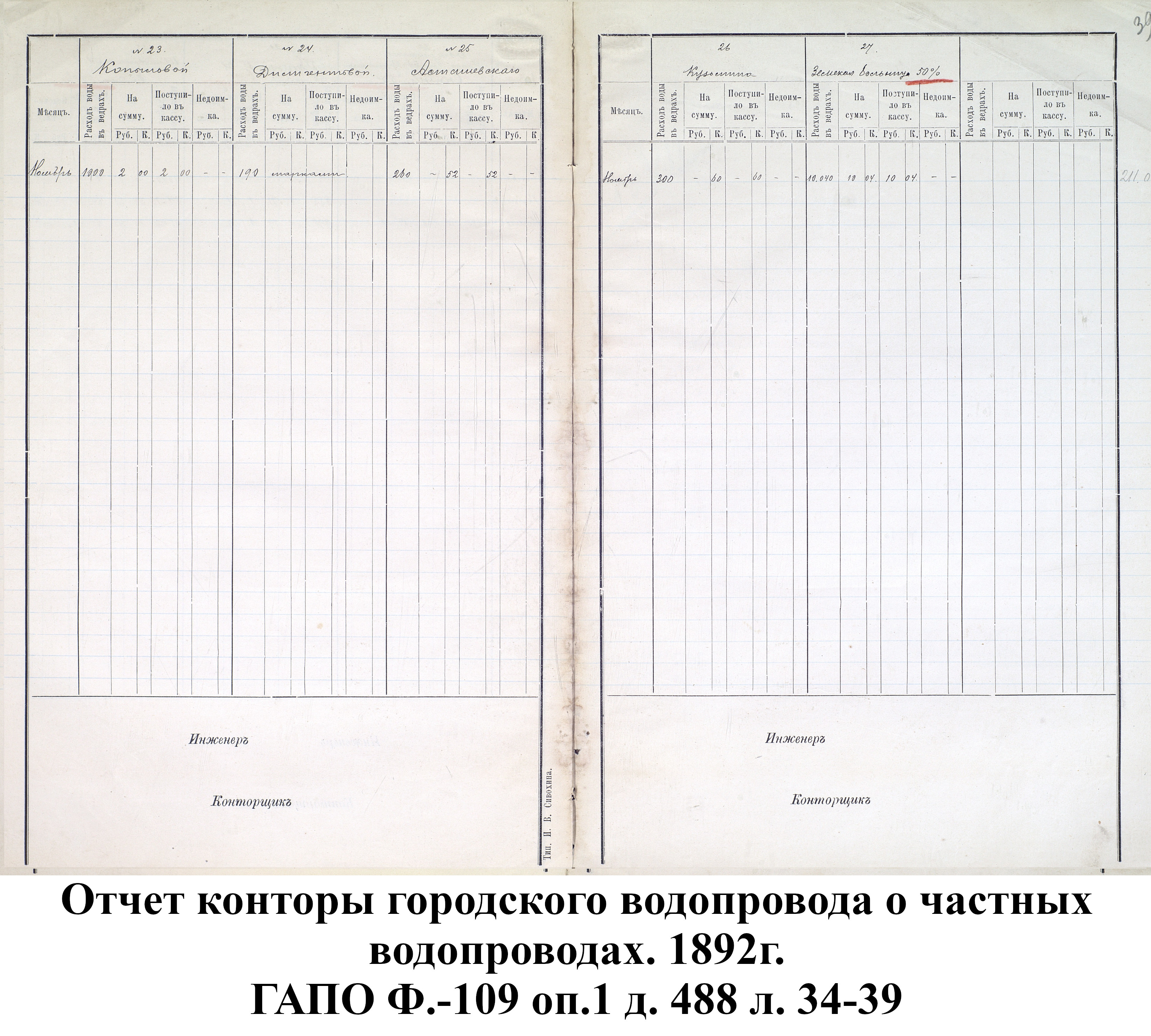 В 1893 г. были окончены следующие колодцы: