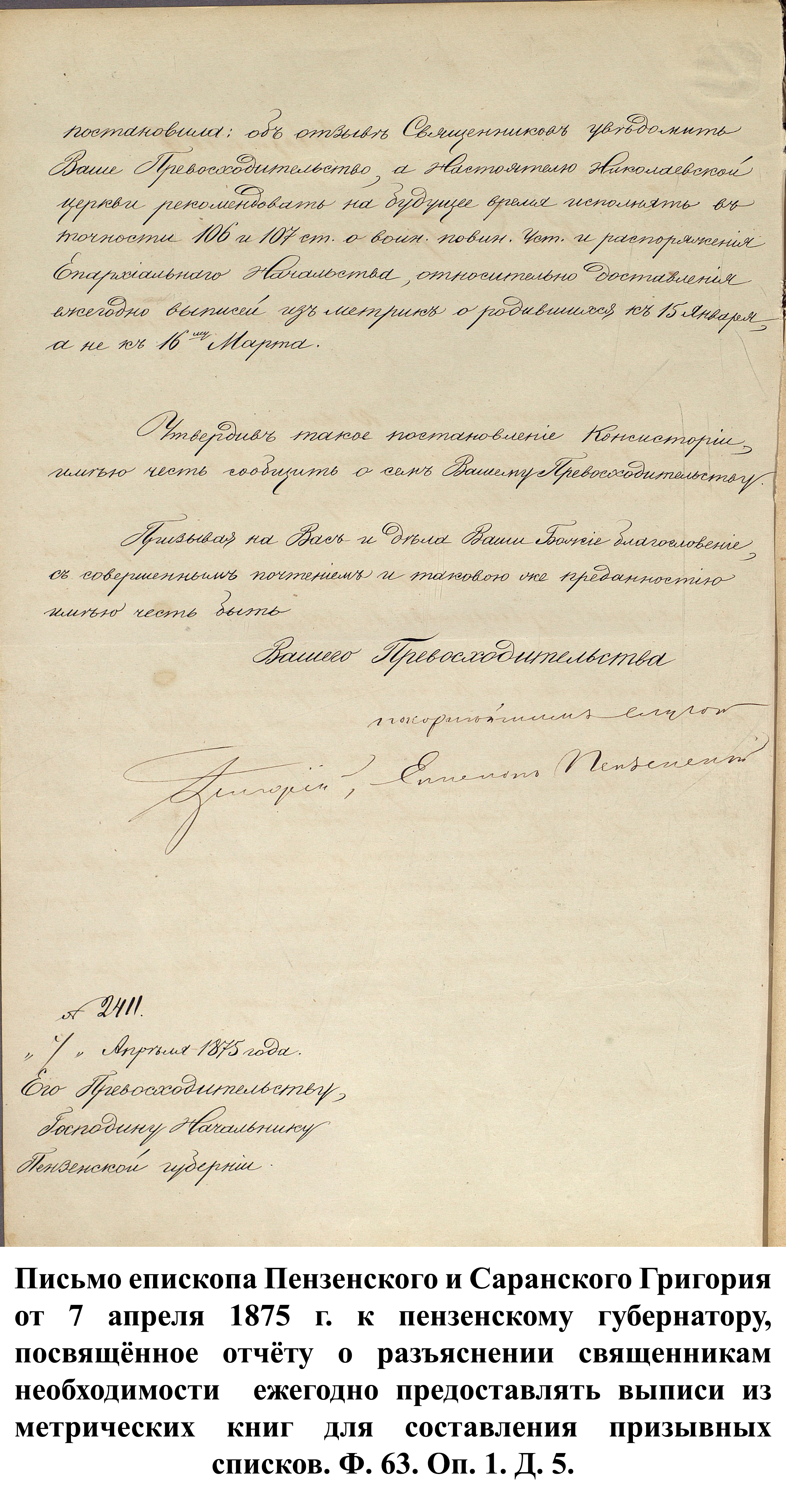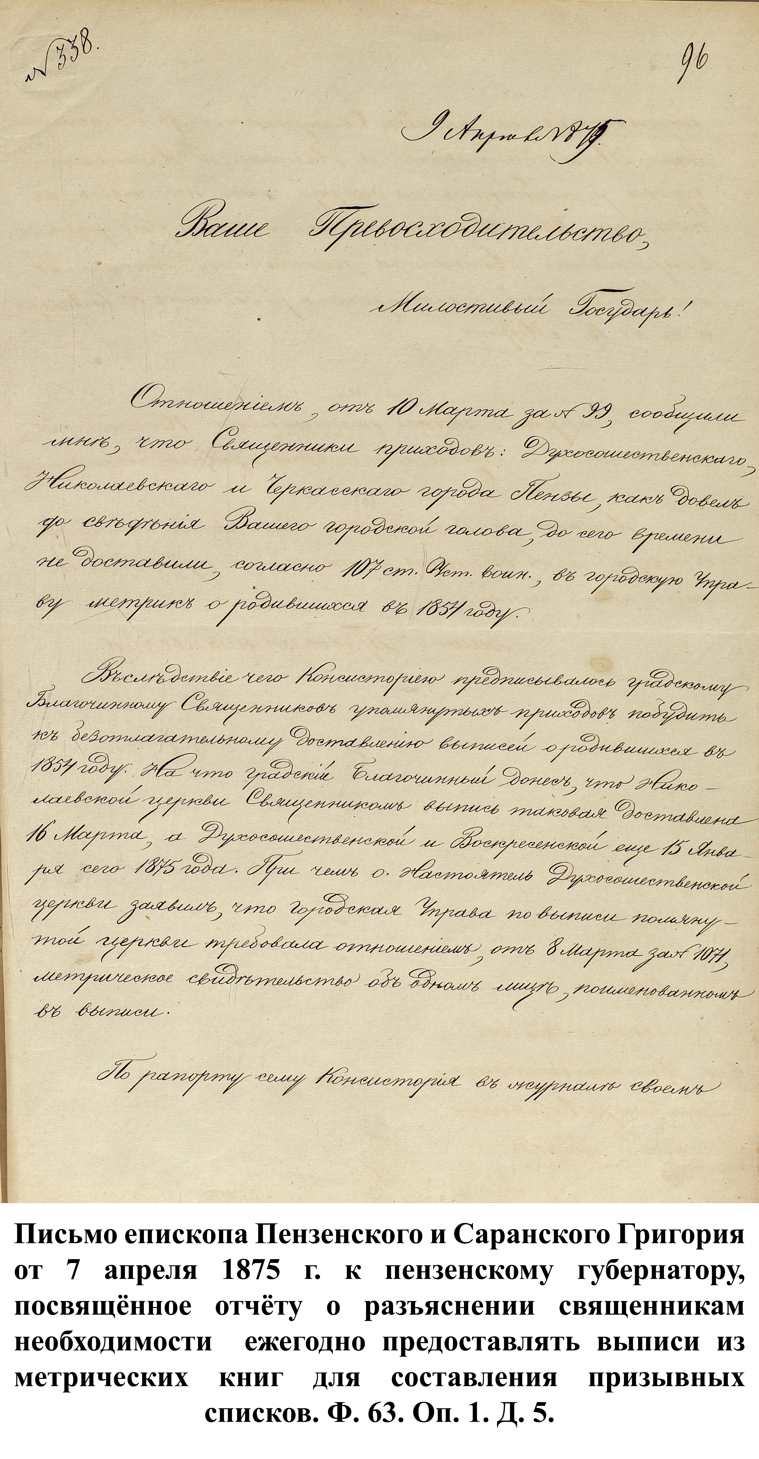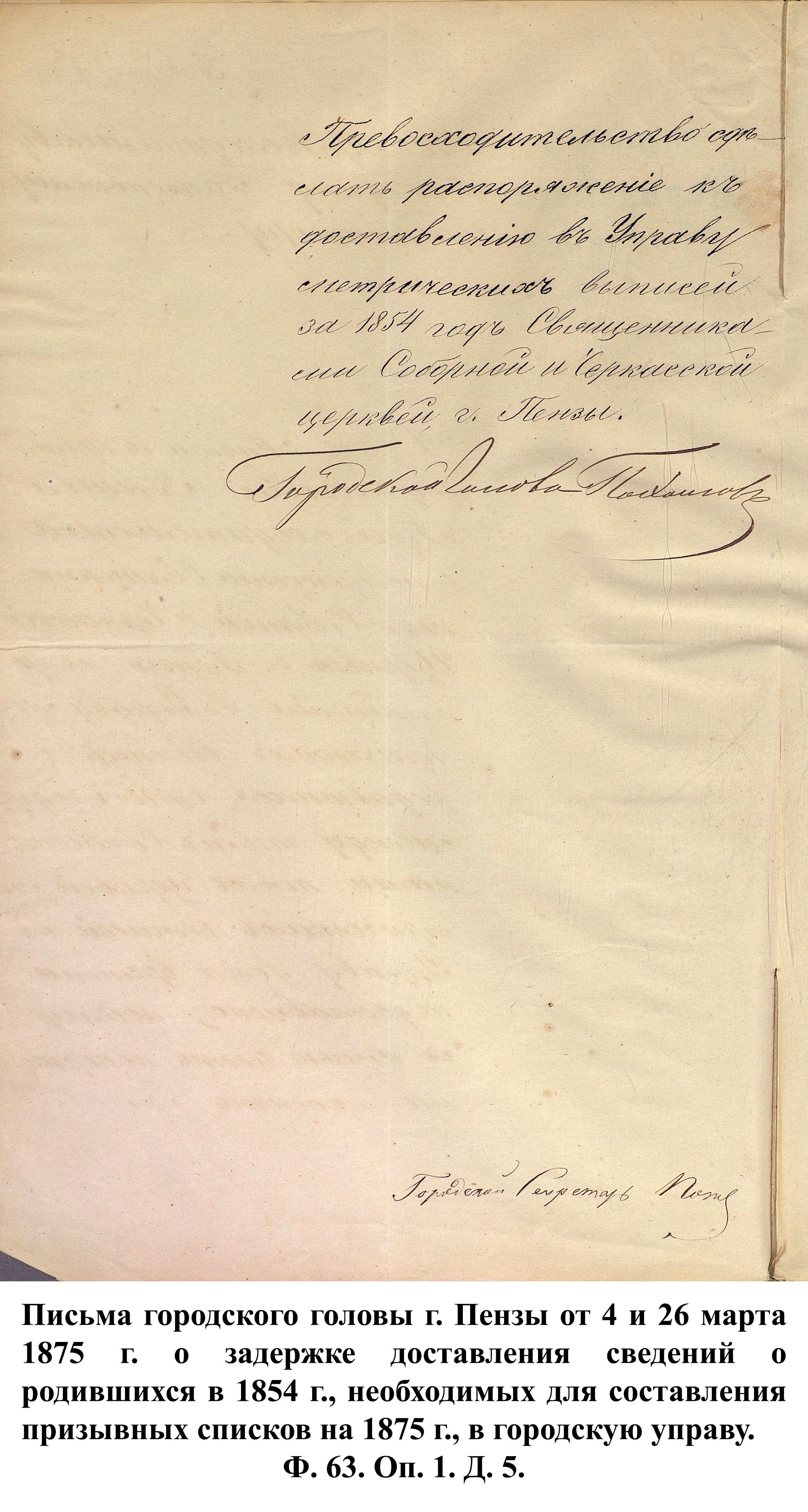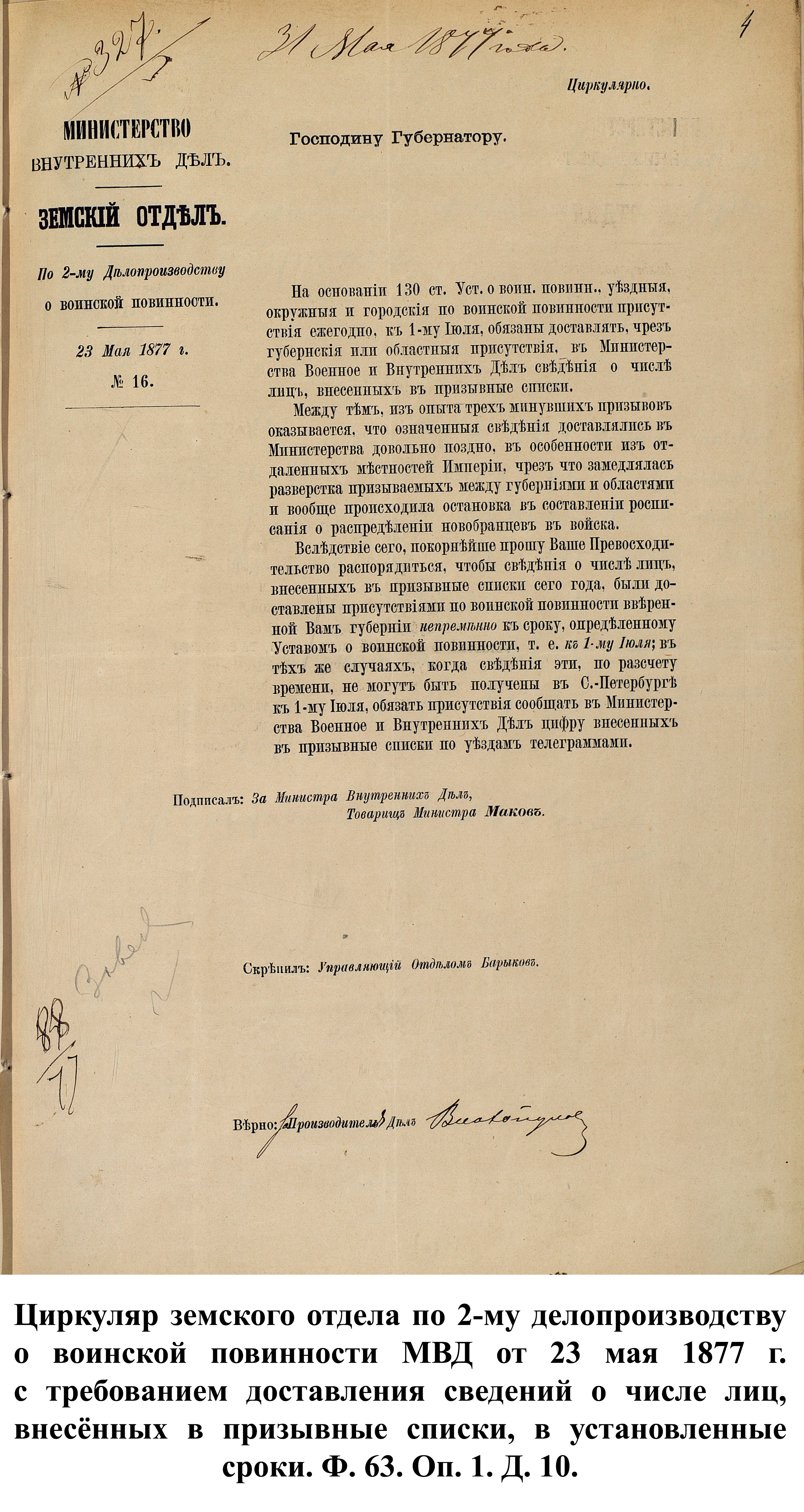 По указам императора Александра II от 23 июня и 25 августа 1875 г. к службе в армии должны были быть призваны 180000 чел., из них 3374 – из Пензенской губернии. 30 ноября 1875 г. пензенский губернатор А.А. Татищев выслал отчёт министру иностранных дел А.Е. Тимашеву и военному министру Д.А. Милюкову о полном выполнении набора необходимого числа новобранцев.