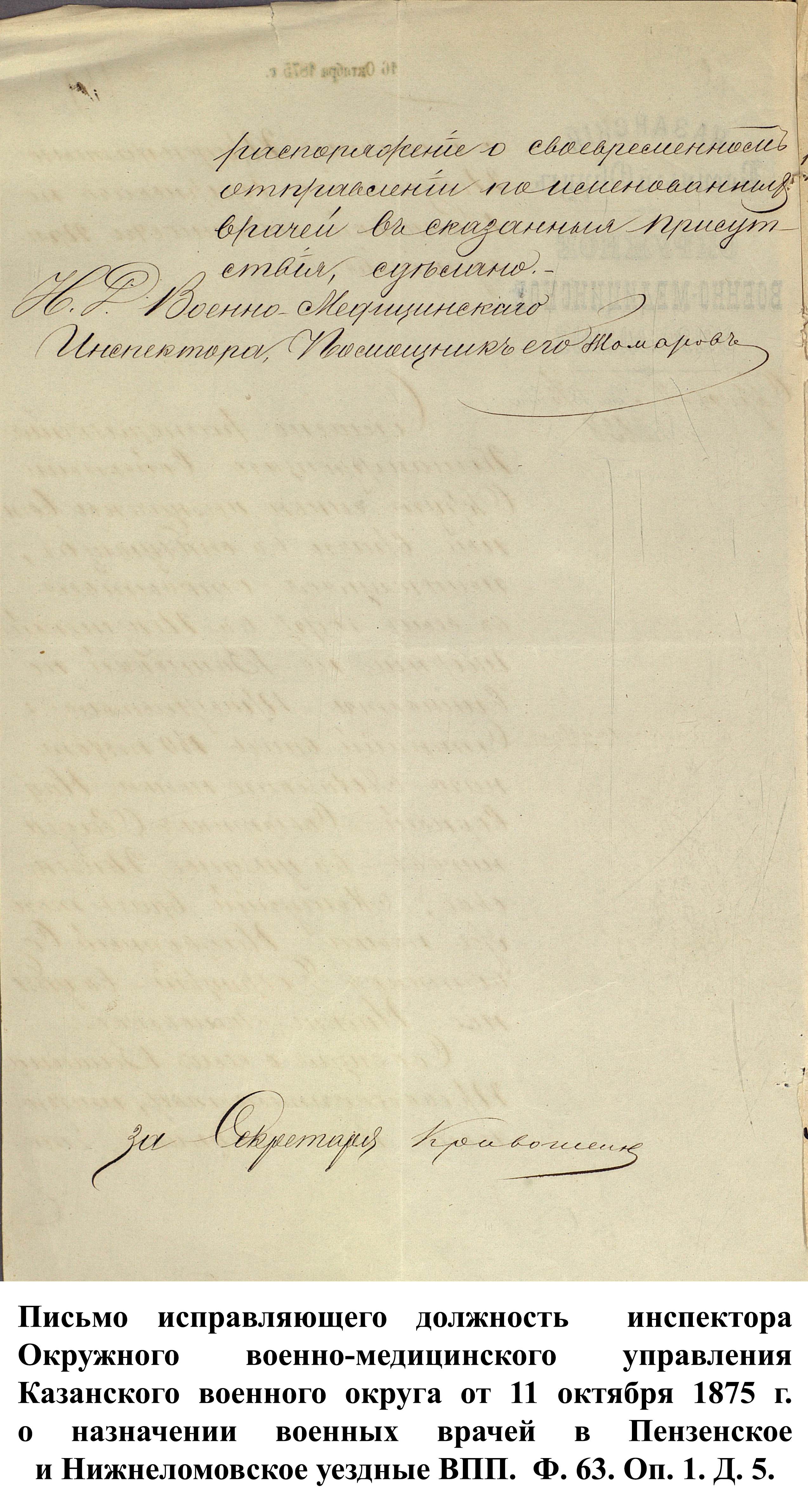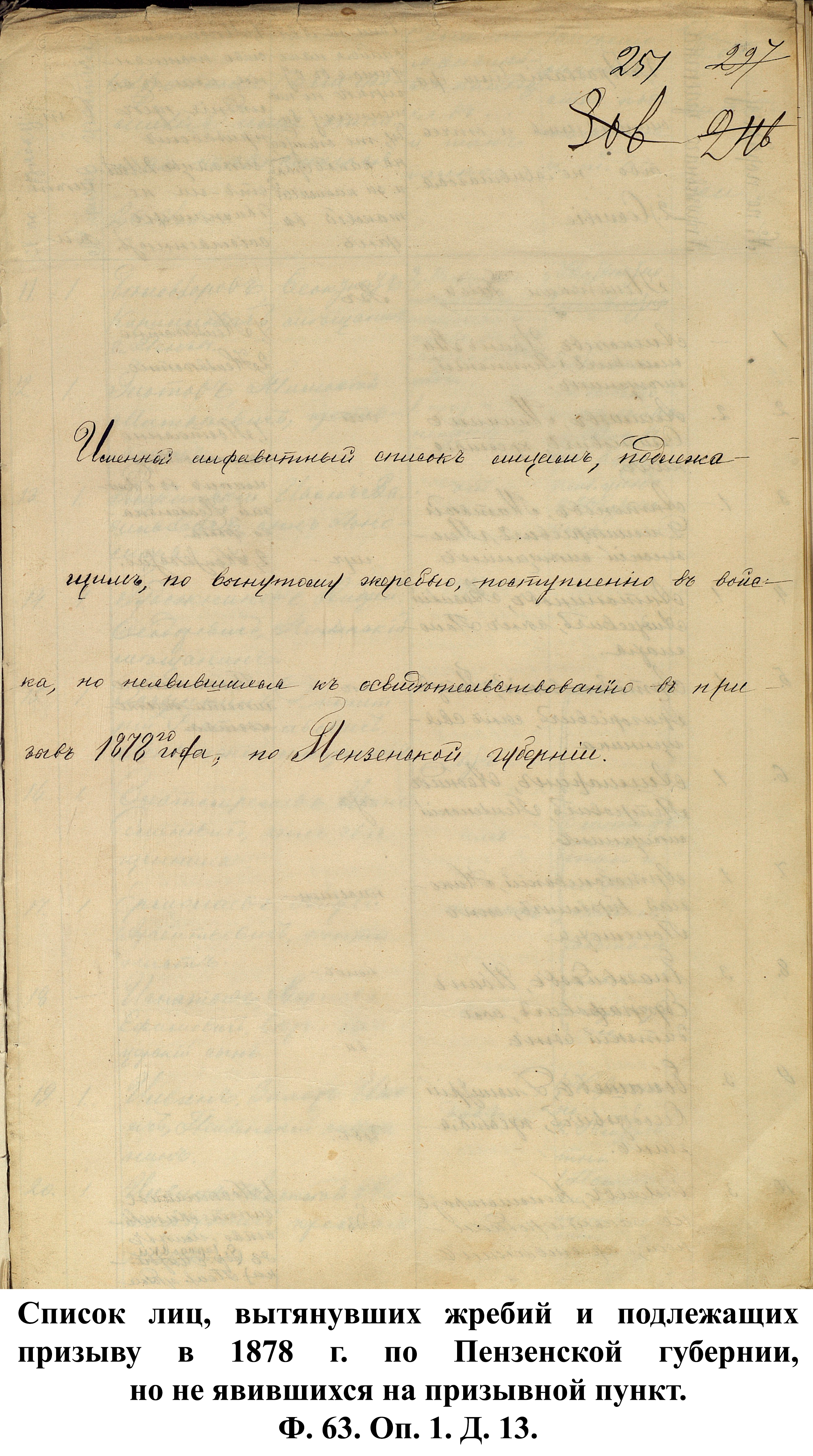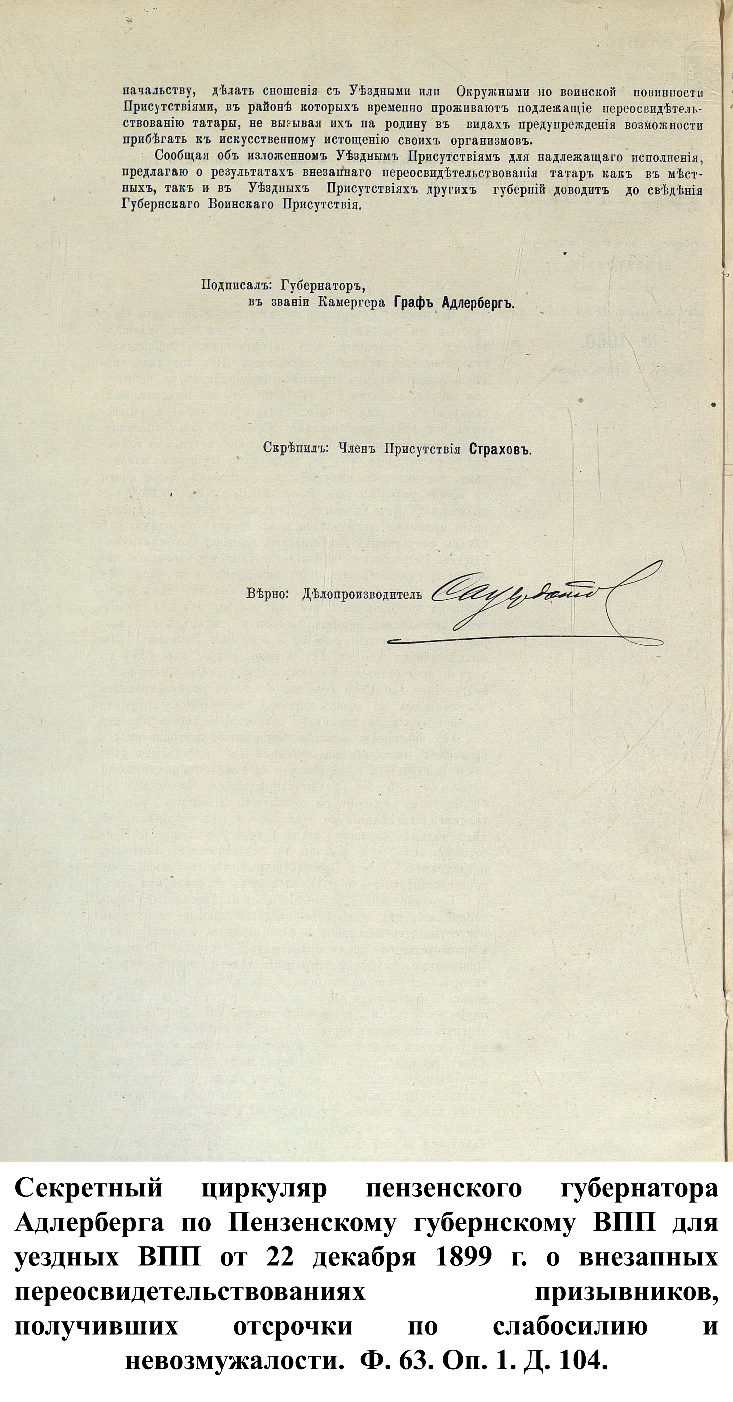 К документу был прикреплён список раненых нижних чинов, составленный из заявлений губернаторов от 1896 г. и отсортированный по губерниям: «Какой губернии: Пензенской. Матвей Ягубкин, Василий Березнецев [Березенцев] и Афанасий Новиков.