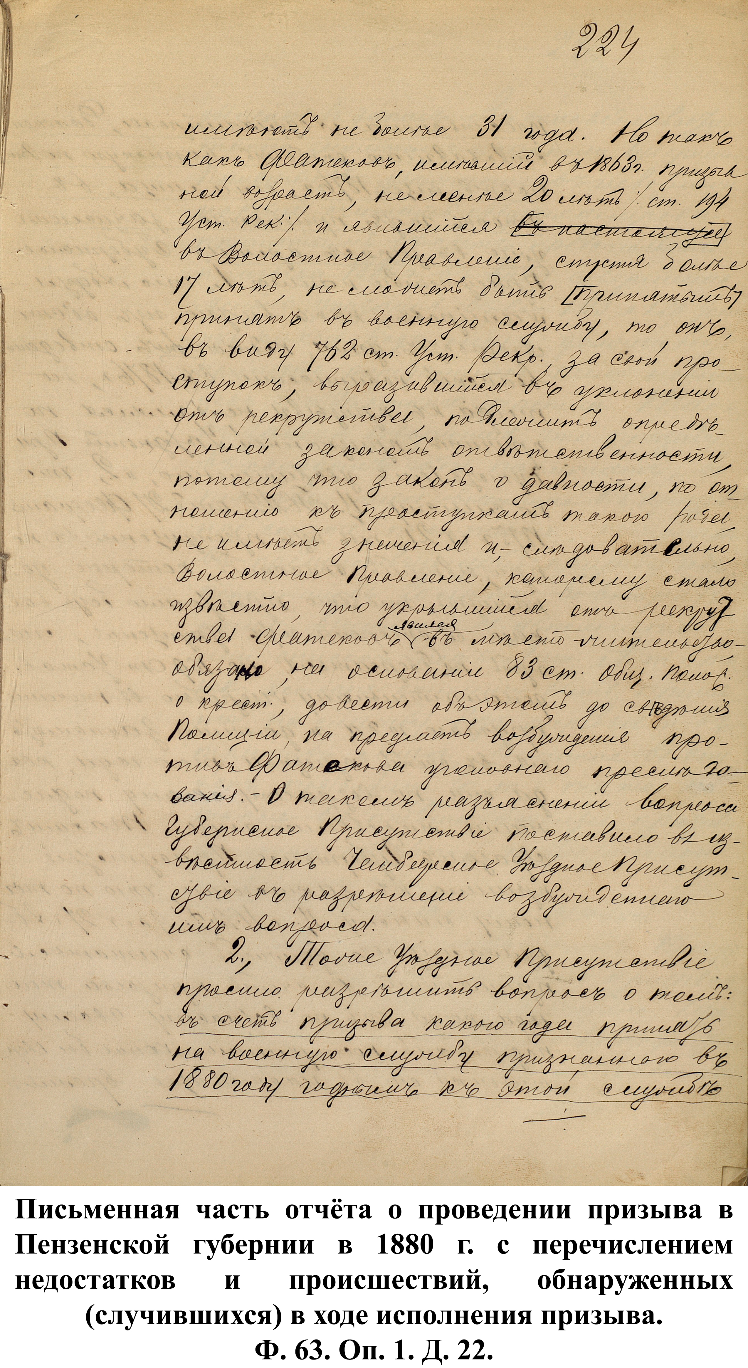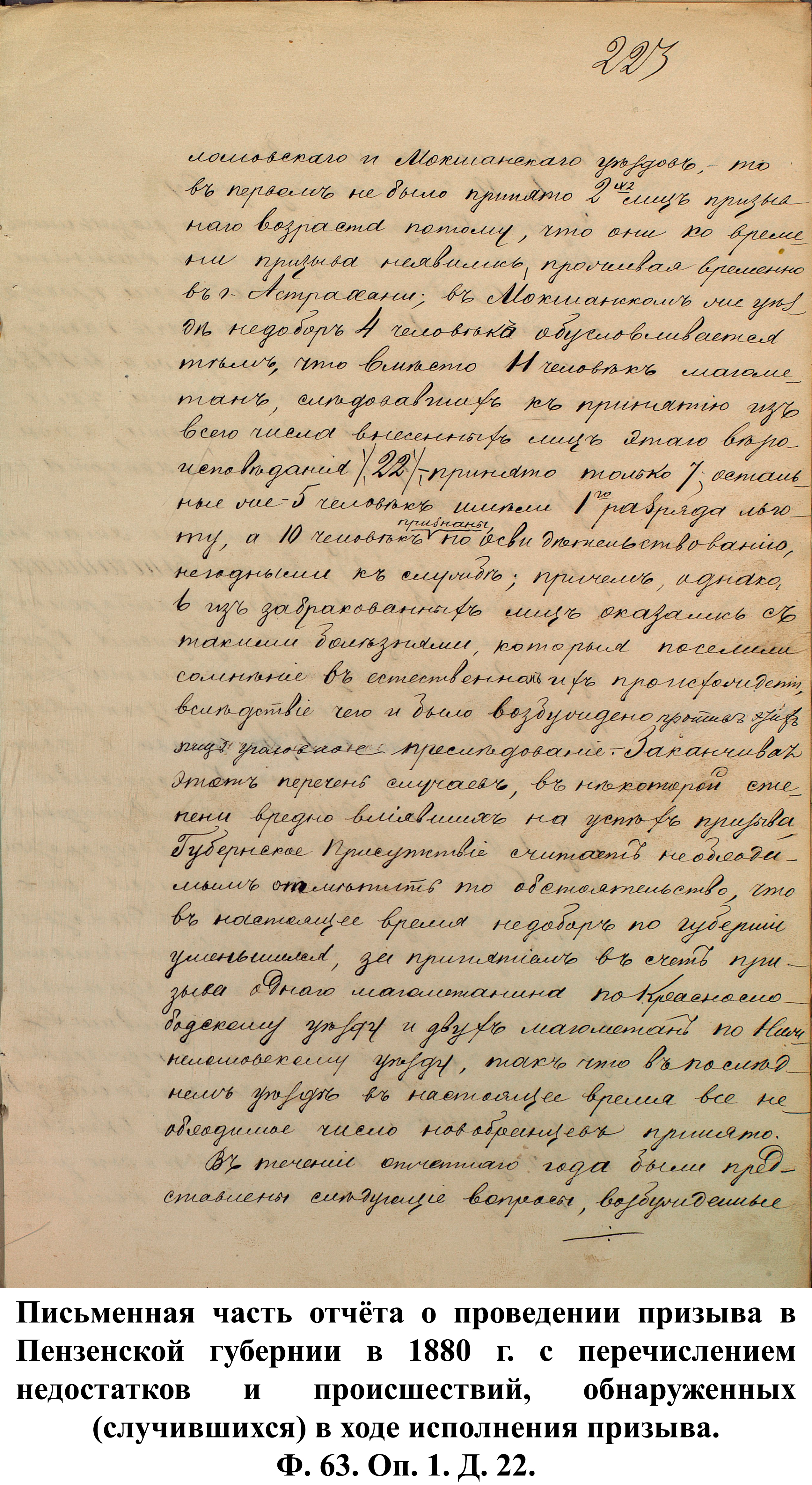 В заключение стоит отметить, что основной проблемой, с которой пришлось столкнуться Пензенскому ВПП в 1881–1900 гг., стали умышленные уклонения от призыва новобранцев.