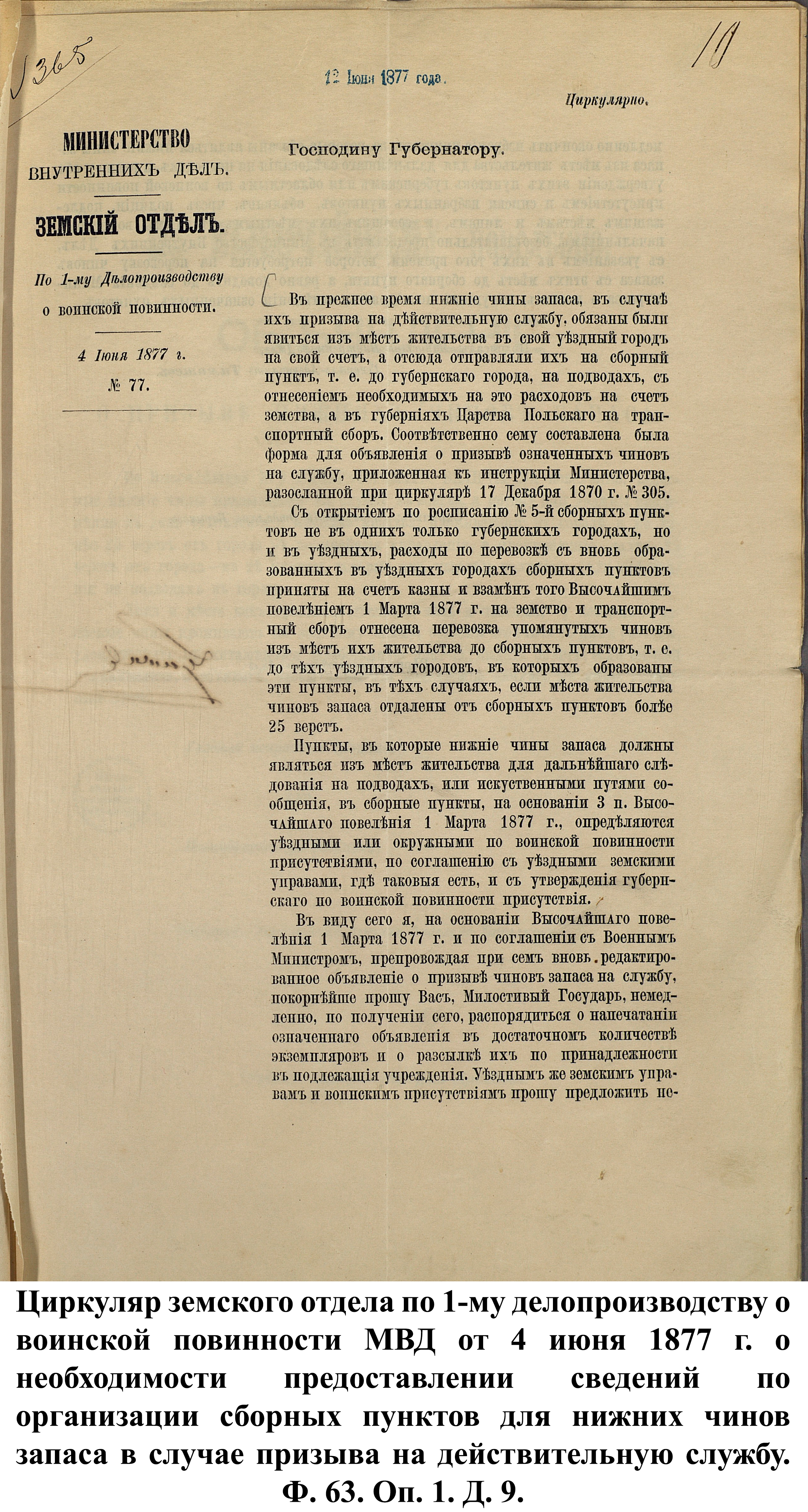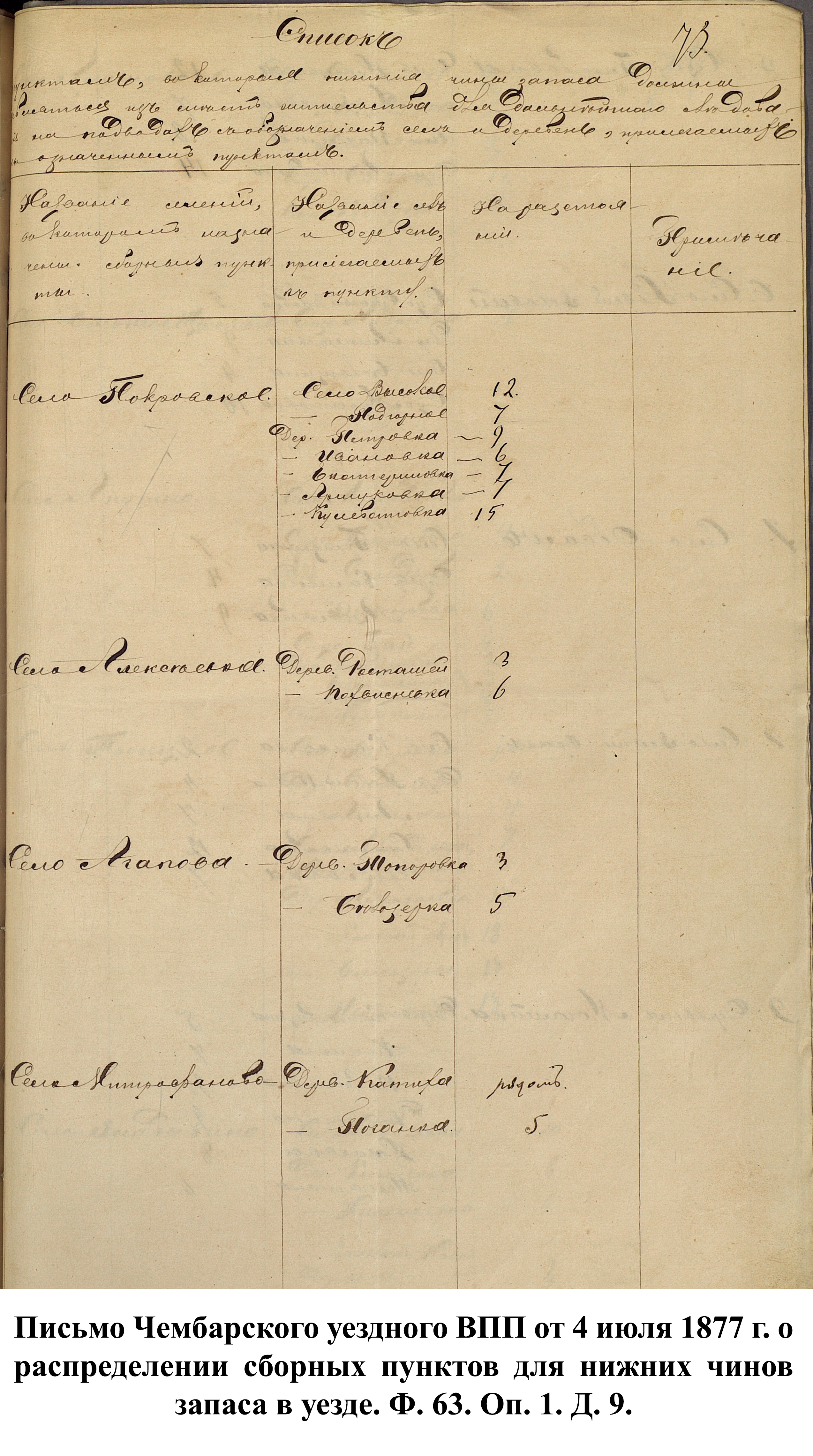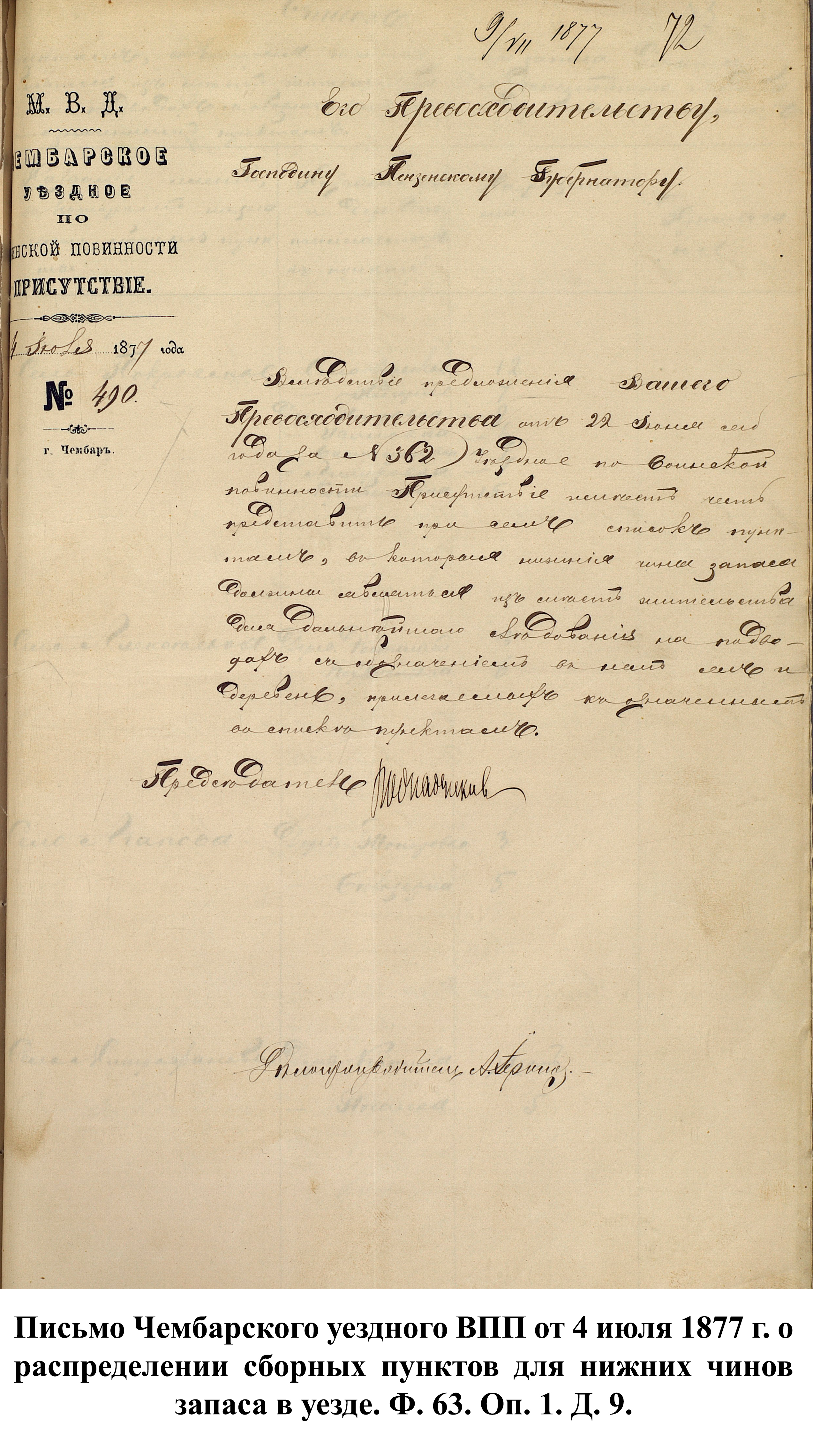 В связи с началом войны канцелярия пензенского губернатора 25 апреля 1877 г. разослала в уездные ВПП сообщения с просьбой о предоставлении сведений по организации пунктов сбора согласно утверждённому мнению Государственного совета от 1 марта 1877 г. До этого указа призывники должны были сами добираться до уездных городов, откуда их отправляли в сборный пункт губернского города.