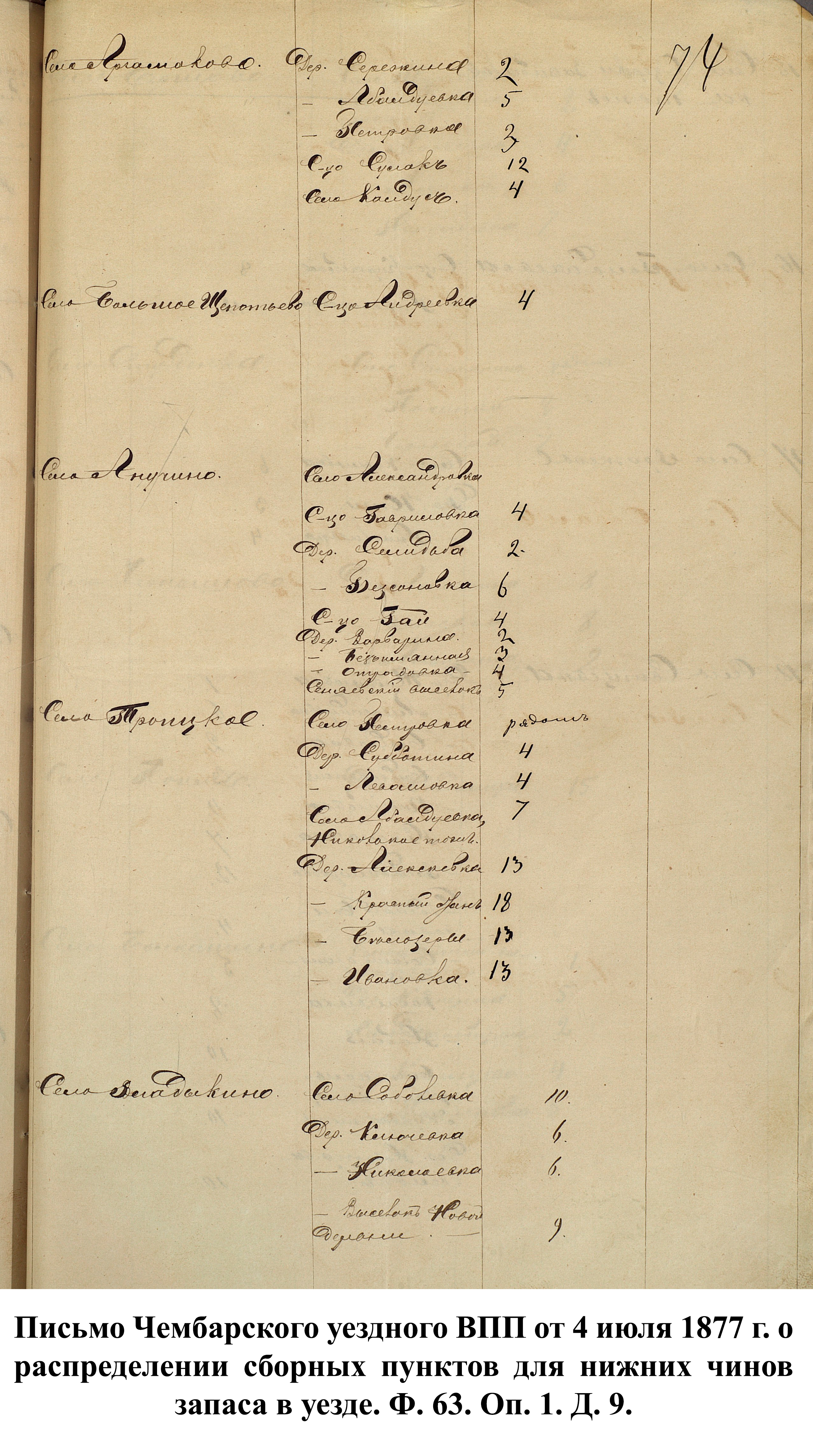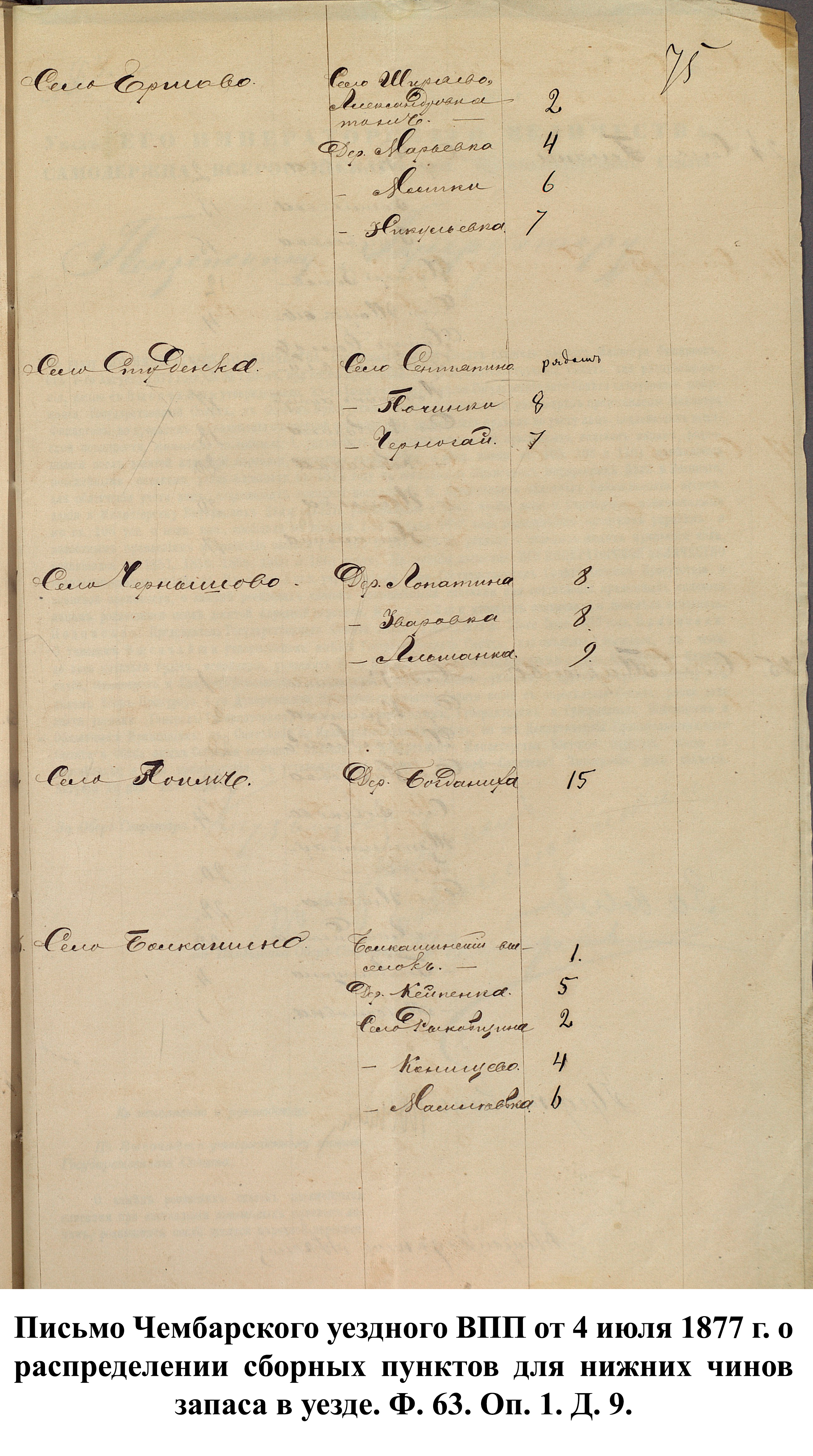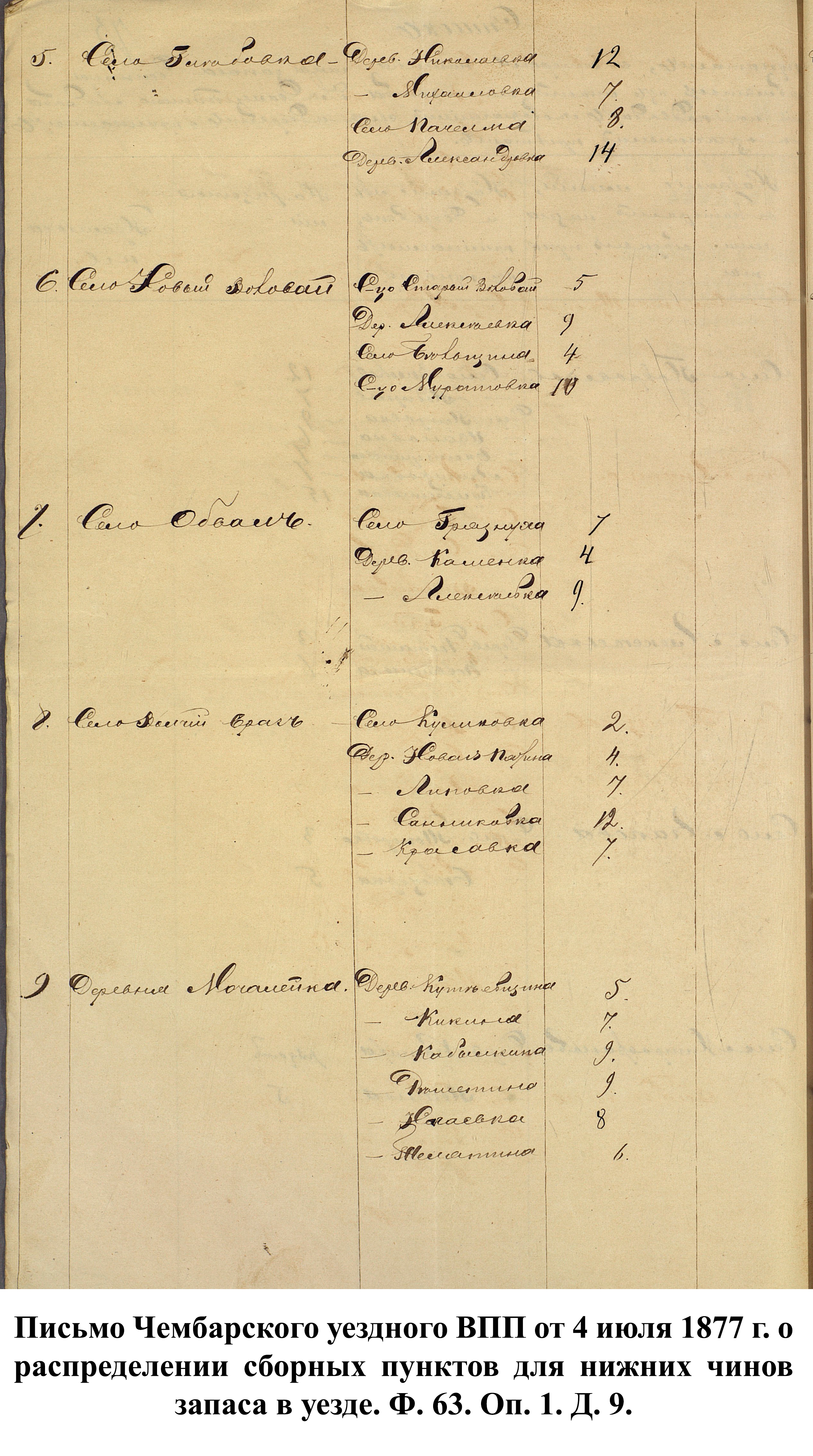 В связи с началом войны канцелярия пензенского губернатора 25 апреля 1877 г. разослала в уездные ВПП сообщения с просьбой о предоставлении сведений по организации пунктов сбора согласно утверждённому мнению Государственного совета от 1 марта 1877 г. До этого указа призывники должны были сами добираться до уездных городов, откуда их отправляли в сборный пункт губернского города.