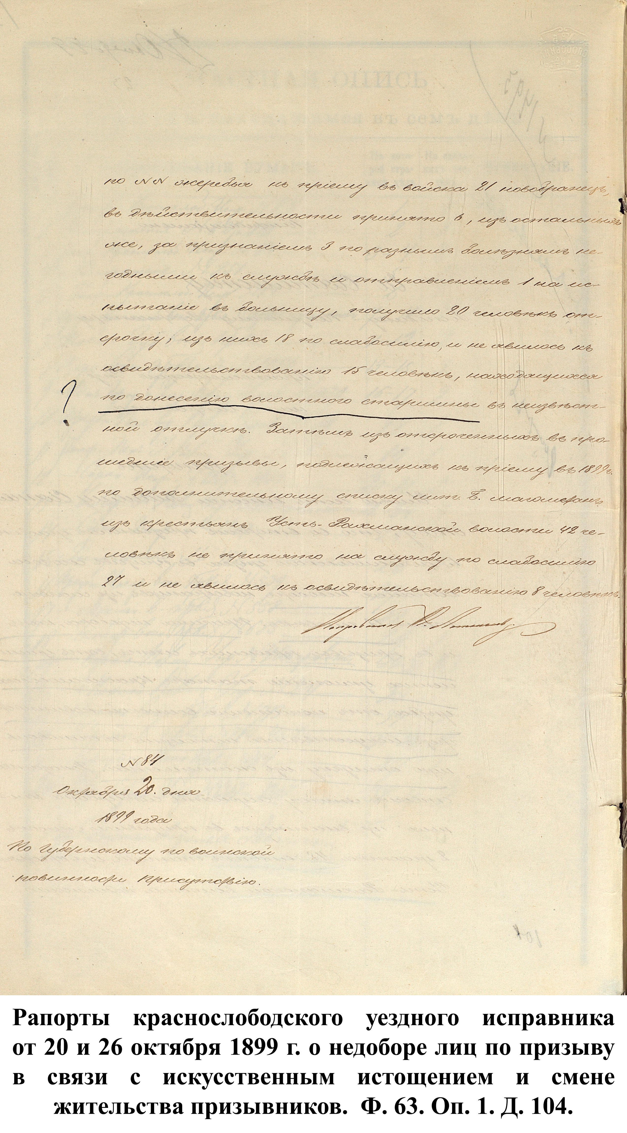 В 1880 г. в призывных списках состояло 12812 чел., из них льготников – 6869, взятых на действительную службу – 3787. По отчёту Краснослободского воинского начальника, одной из проблем призыва в его уезде стало умышленное уклонение военнообязанных. Так на призыв не явились 18 чел., а один призывник скончался на призывном пункте из-за искусственно вызванной грыжи.