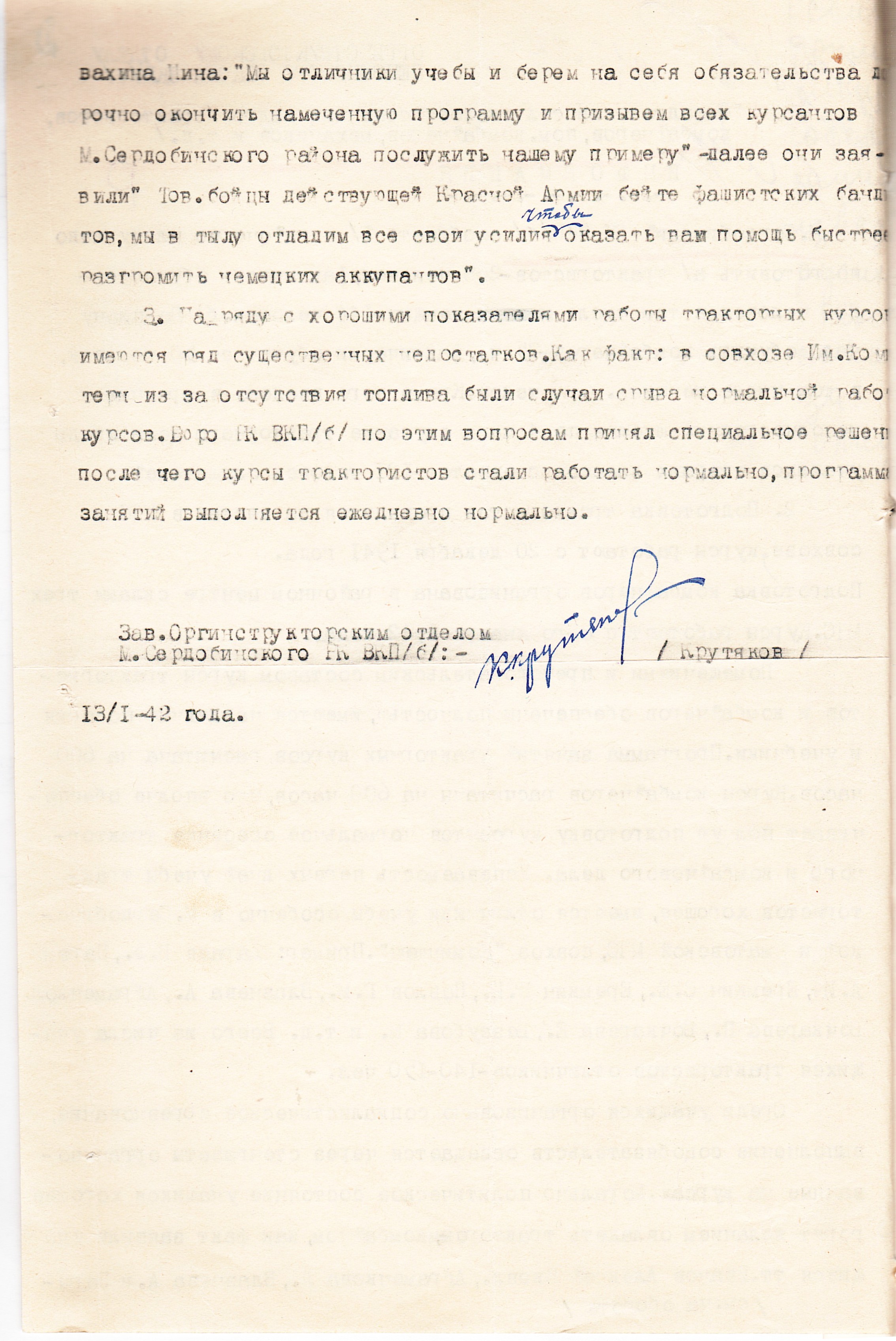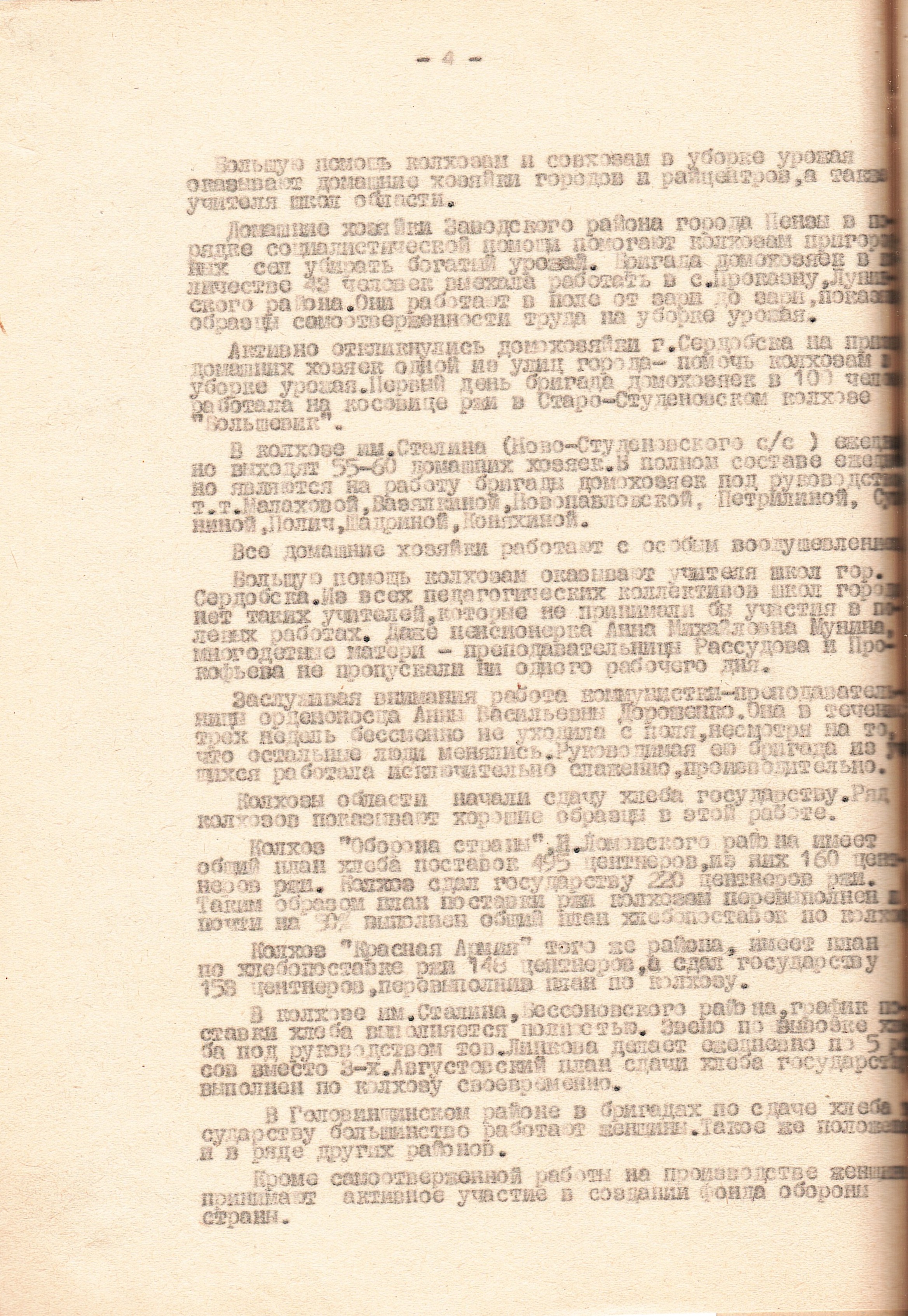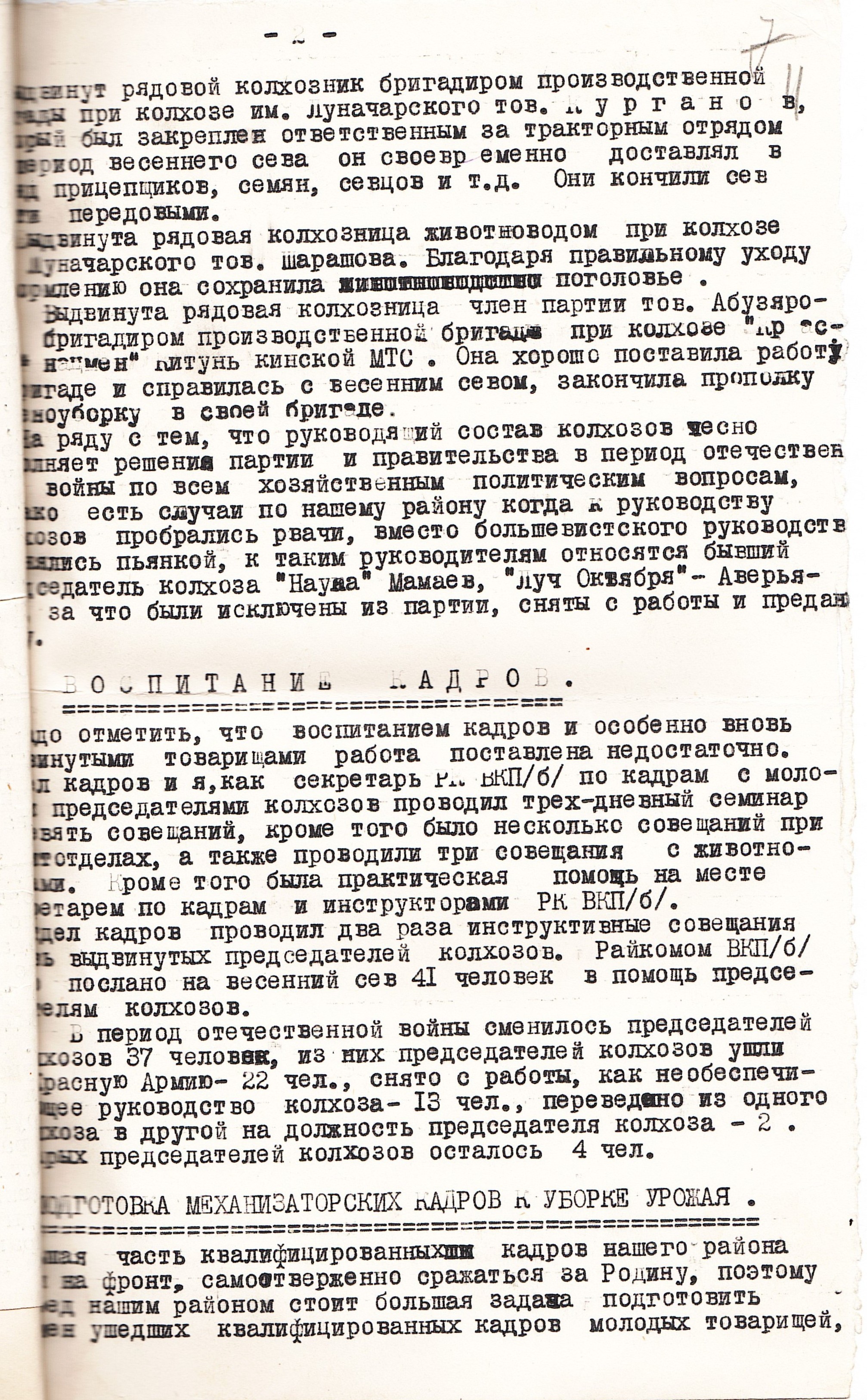 Конечно, найти достойную замену ушедшим специалистам сельского хозяйства было сложно. С этой целью в колхозах, совхозах и МТС (машинно-тракторная станция, см. далее МТС) развернулась подготовка сельскохозяйственных кадров. Здесь нельзя было обойтись без женщин. Получив новые профессии, они активно включались в общественный труд с новыми обязанностями, задачами, ответственностью.