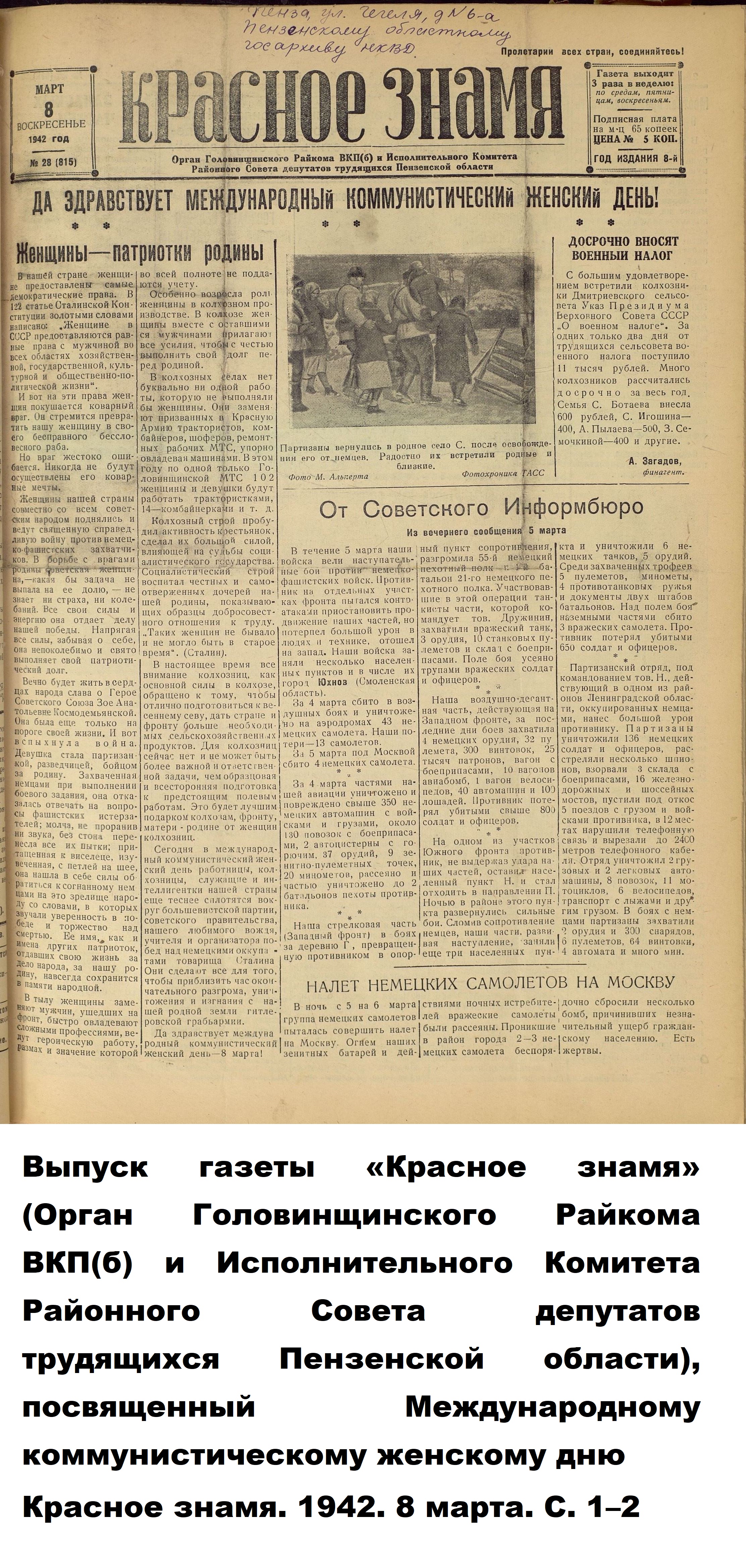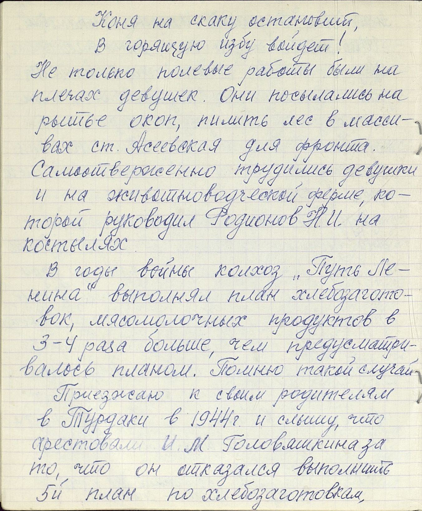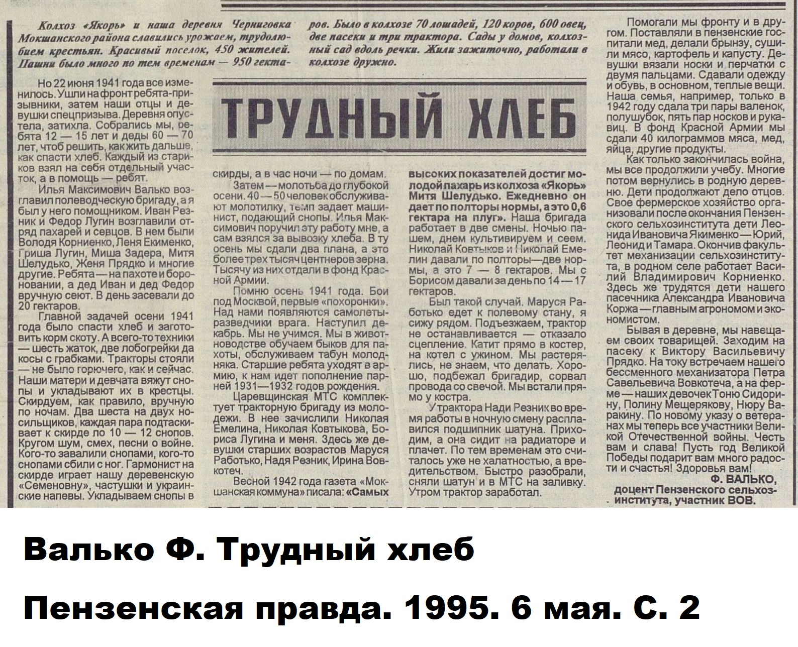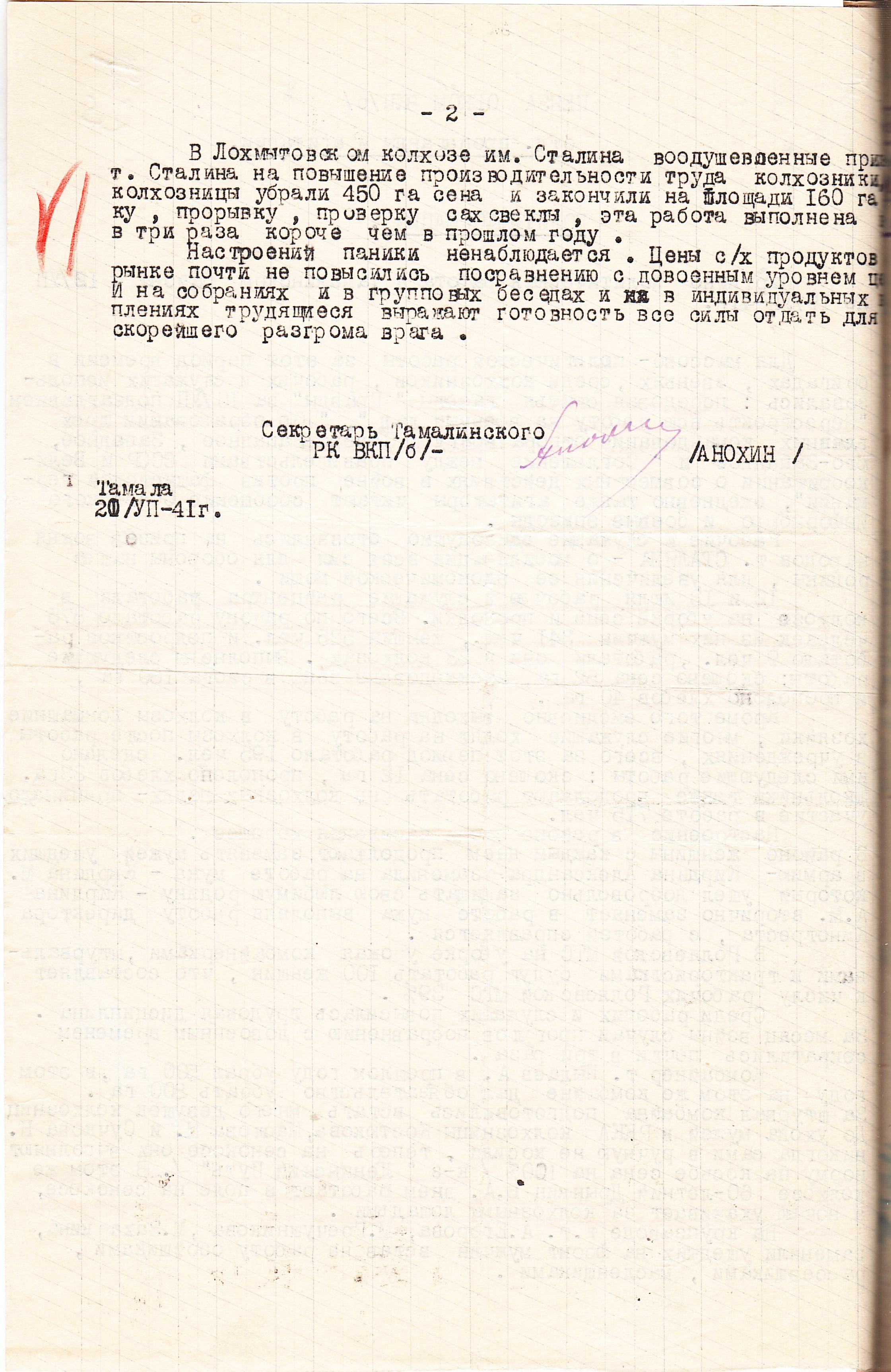 Когда началась Великая Отечественная война, и работники-мужчины ушли на фронт, заменить их предстояло женщинам, пожилым людям, подросткам. По призыву партии советские крестьянки, движимые чувством патриотизма и солидарности с защитниками Родины, вышли в поля, обещая «крепить хозяйство и выполнять любую работу». Надо сказать, что уже в документах первых недель войны зафиксировано множество примеров, когда колхозницы и домохозяйки действительно с большим воодушевлением, самоотверженно выполняют и свою работу, и работу ушедших отражать гитлеровскую агрессию мужей, отцов и сыновей. Так, в справке Пензенского обкома ВКП(б) «Об участии в производстве и колхозном труде женщин и молодёжи» от 29 августа 1941 г. сообщается, что «в Большевьясском районе на уборке хлебов работают 6678 женщин, из них водителями простейших машин – свыше полутора тысяч». Другой пример из того же источника: «Всему колхозу "Свобода" Шемышейского района известна замечательная работа звена Ольги Лытковой из пятой бригады. Там каждая женщина вырабатывает ежедневно по две нормы, а Анна Потапова и Анна Россонанская – по две с половиной нормы». «Многие женщины, – читаем в том же документе, – успешно окончили курсы механизаторских кадров сельского хозяйства» и «сейчас работают по специальности».