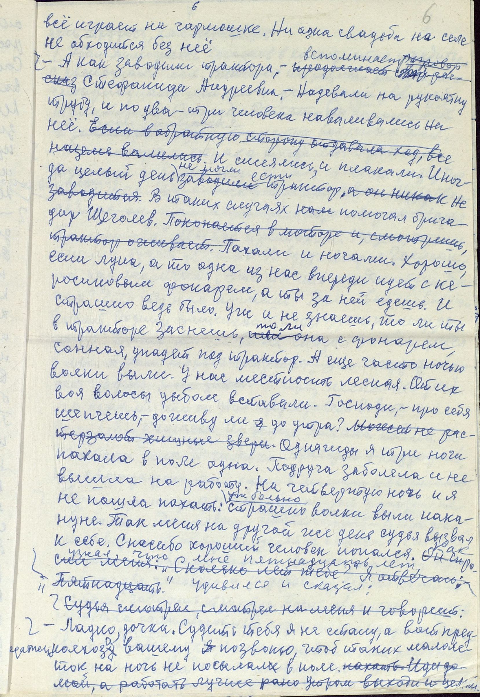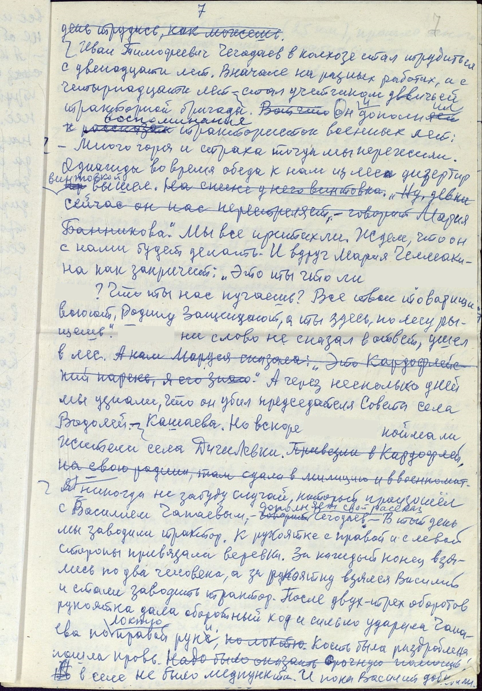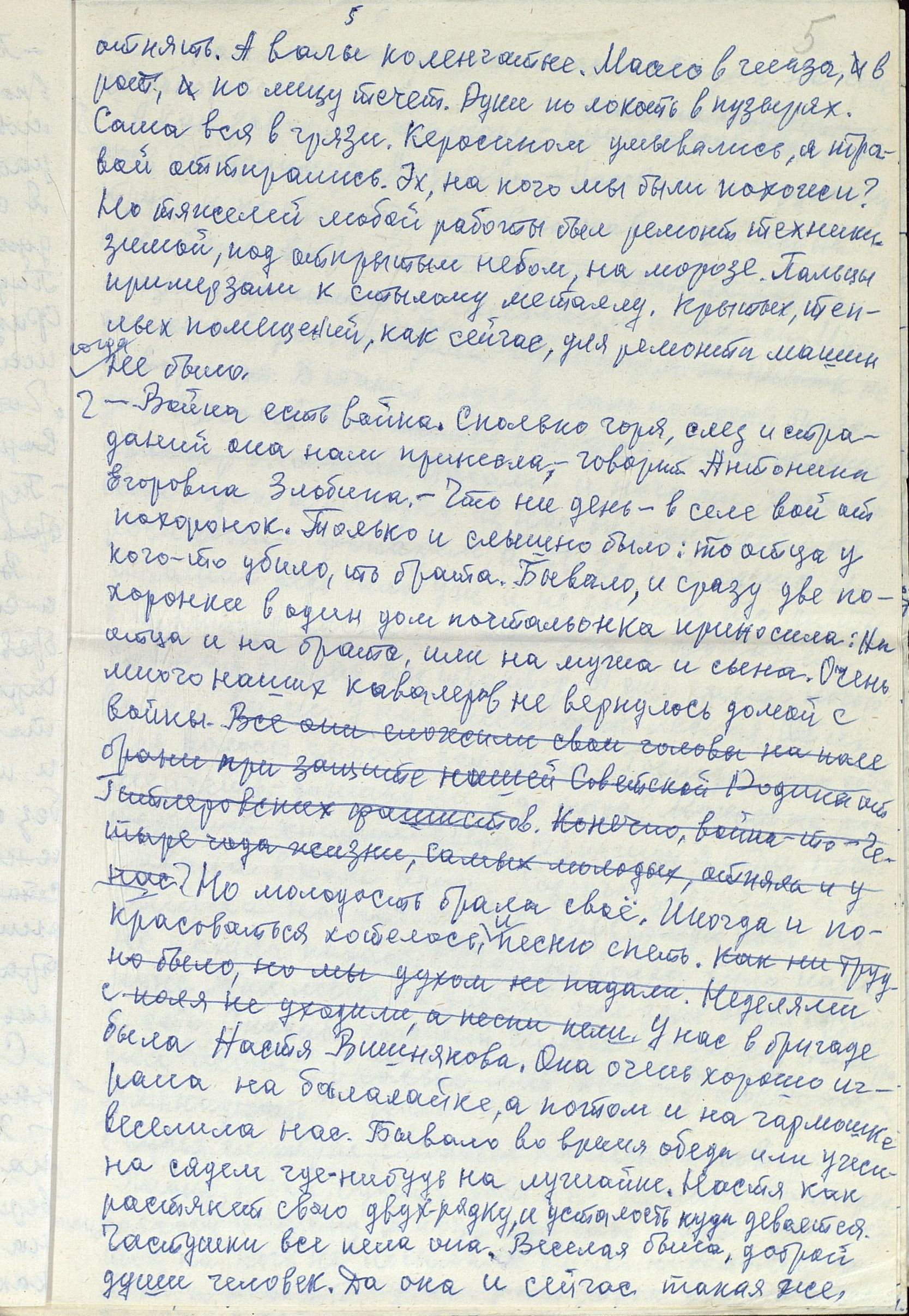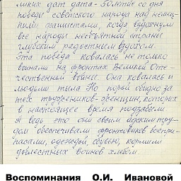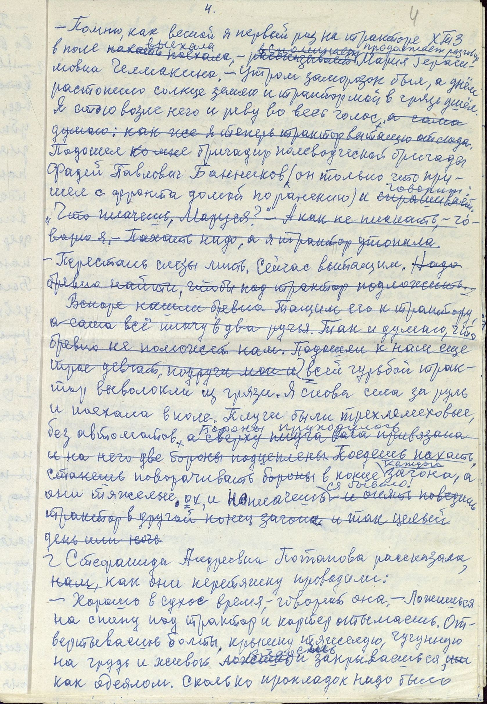 Чтобы понять, насколько сложным и напряжённым был труд в тылу, какие испытания взваливались на плечи работниц, и что стояло за высокими производственными показателями, необходимо дать слово непосредственным участникам и очевидцам. Например, А.Р. Улисова (Жукова) так описывает труд сельчан, в том числе и женщин: «...больше вручную и косили, и жали, и молотили цепом. <...> И на быках, и на коровах обрабатывали земличку. И дрова готовили, возили, на чём могли. И в тележку впрягались, и в плуг. Хорошо, коровушки помогали, и кормили и возили». «…Девушки, которым бы надо любить и быть любимыми, – вспоминает О.И. Иванова, – от зари до зари по колено в грязи находились в поле, пахали, сеяли, убирали урожай. Никогда не забуду, как Войкина Тоня и Киреева Нюра подчиняли волю и силу огромного быка Фургона, который по их велению вставал в борозду и пахал». А вот что рассказывает работавшая трактористкой в годы войны П.П. Банникова: «Трудности мы несли... Ночевали в полях. Днём убирали урожай, а ночью пахали, готовили землю для будущего урожая. Конечно, опыта мало было. Бывало, разъехаться не могли, виляли, вкривь шли. А бригадир наш, Никифор Тимофеевич Щеголев, хороший был мужик, понимал нас, не кричал. Ведь детьми были мы. <...> Однажды я чуть не погибла. Во время сева вылетел провод от магнето. Трактор остановился. Я прыгнула на землю и стала подсоединять провод к свече. Только подсоединила, а трактор тронулся с места, а я оказалась под колесом сеялки. Хорошо, что бригадир недалеко был. Он вместе с сеяльщиком дедом Филиппом Нагорновым вытащил меня из-под колеса. После этого случая у меня долго болели спина и грудь, но трактор не оставила, с поля не ушла».