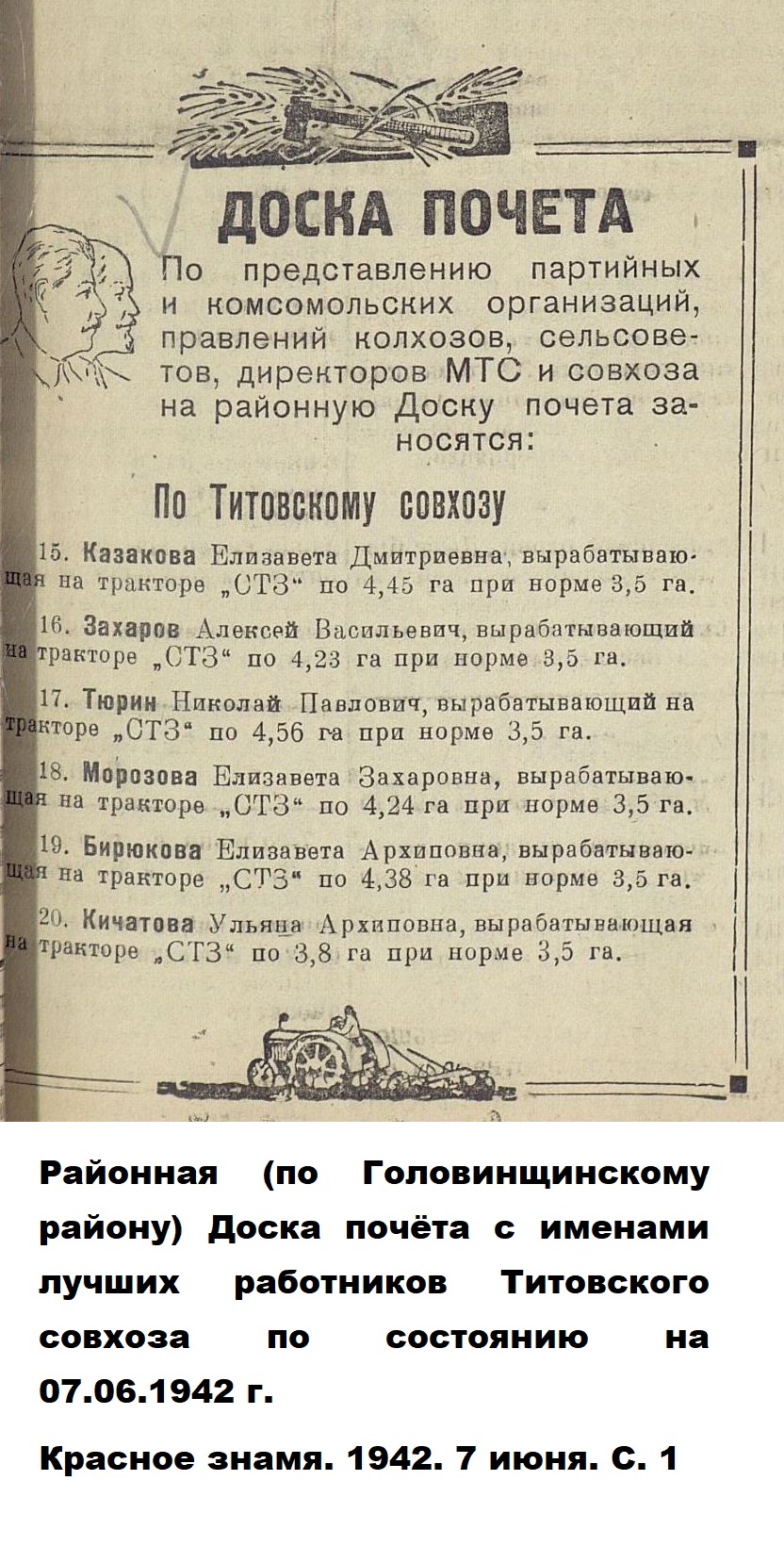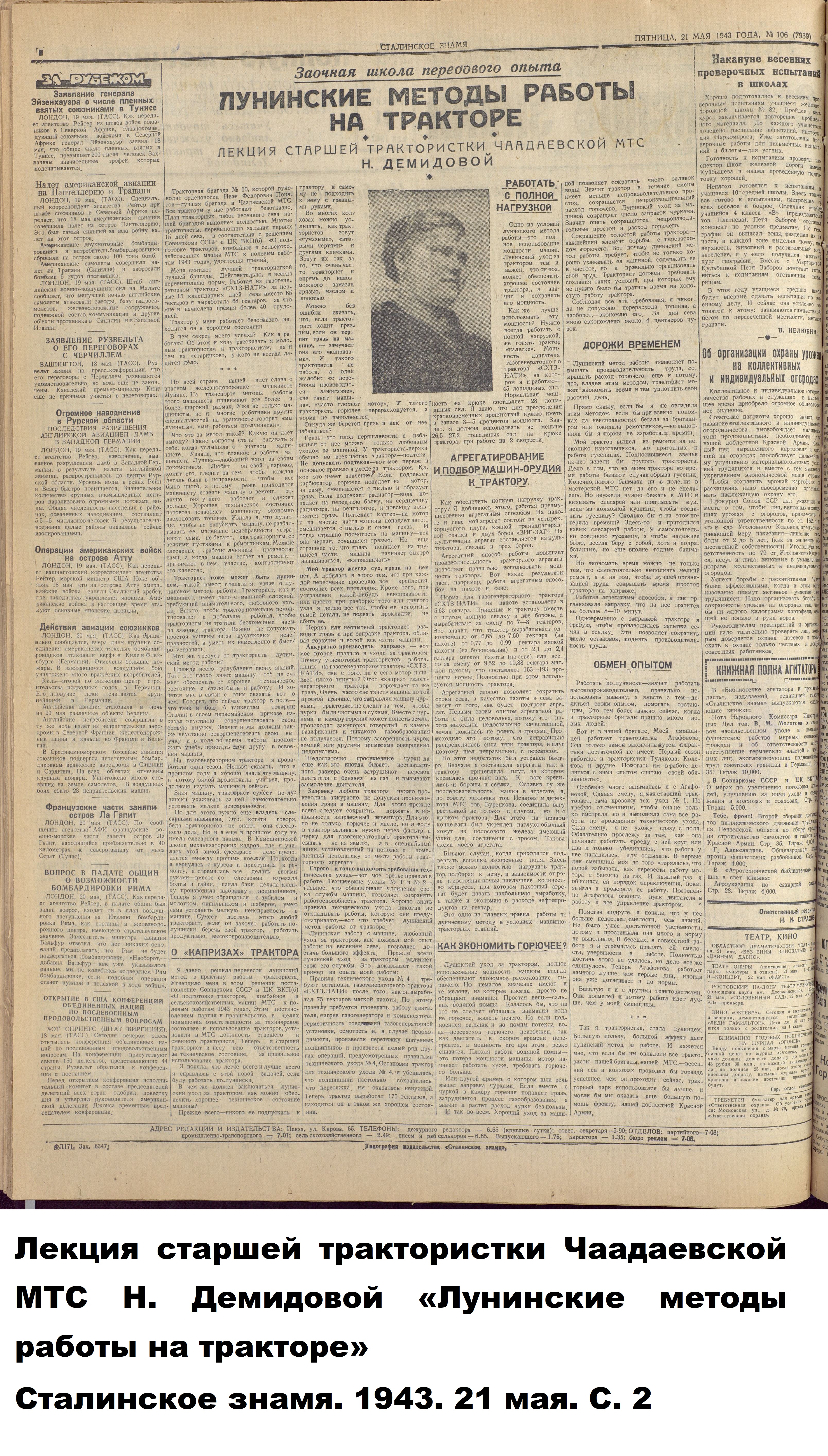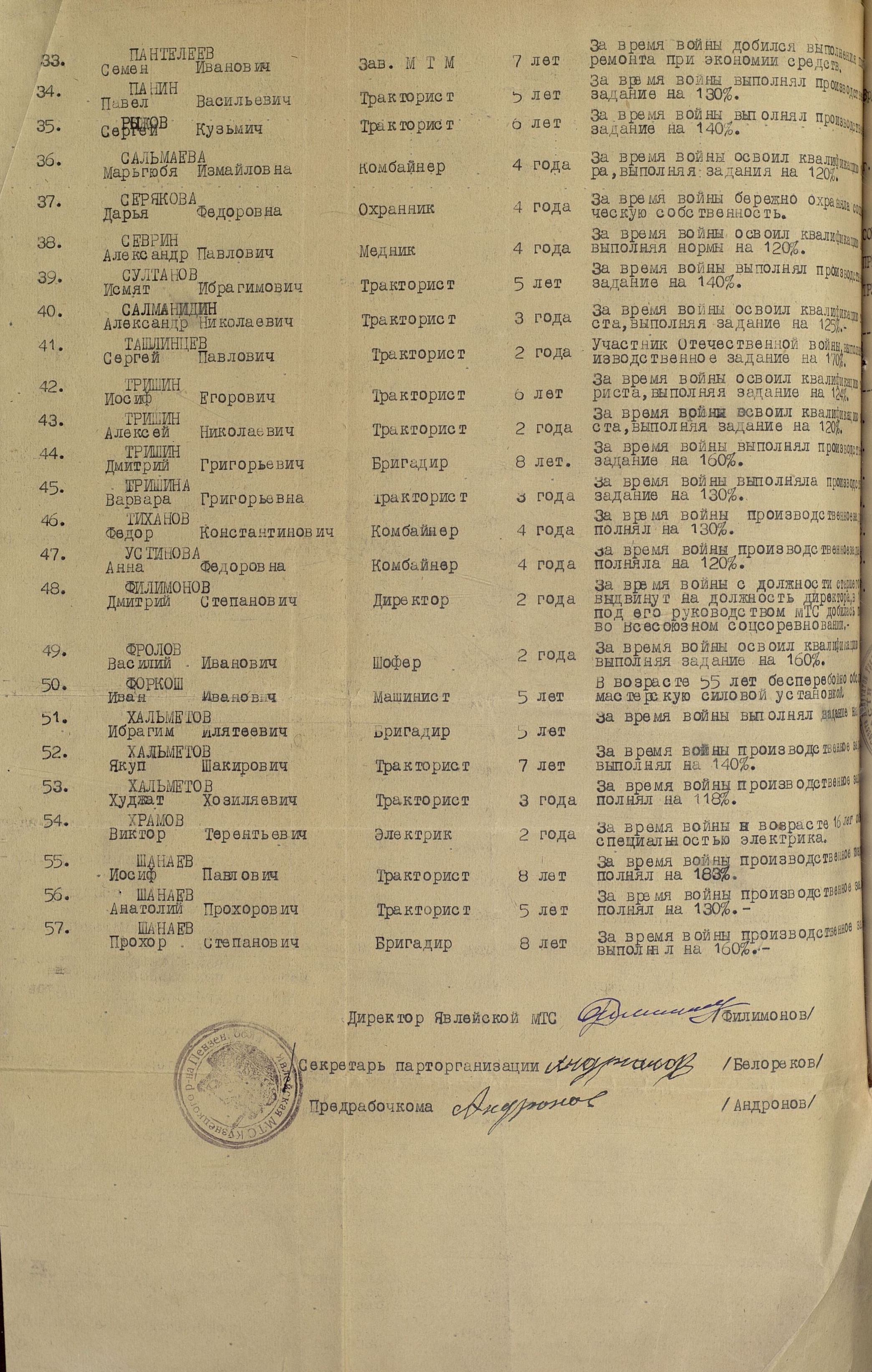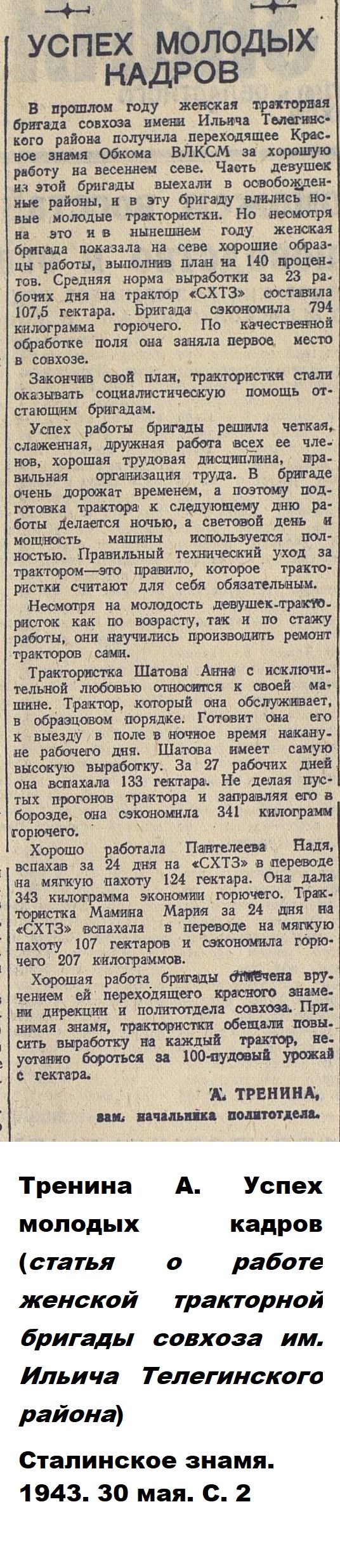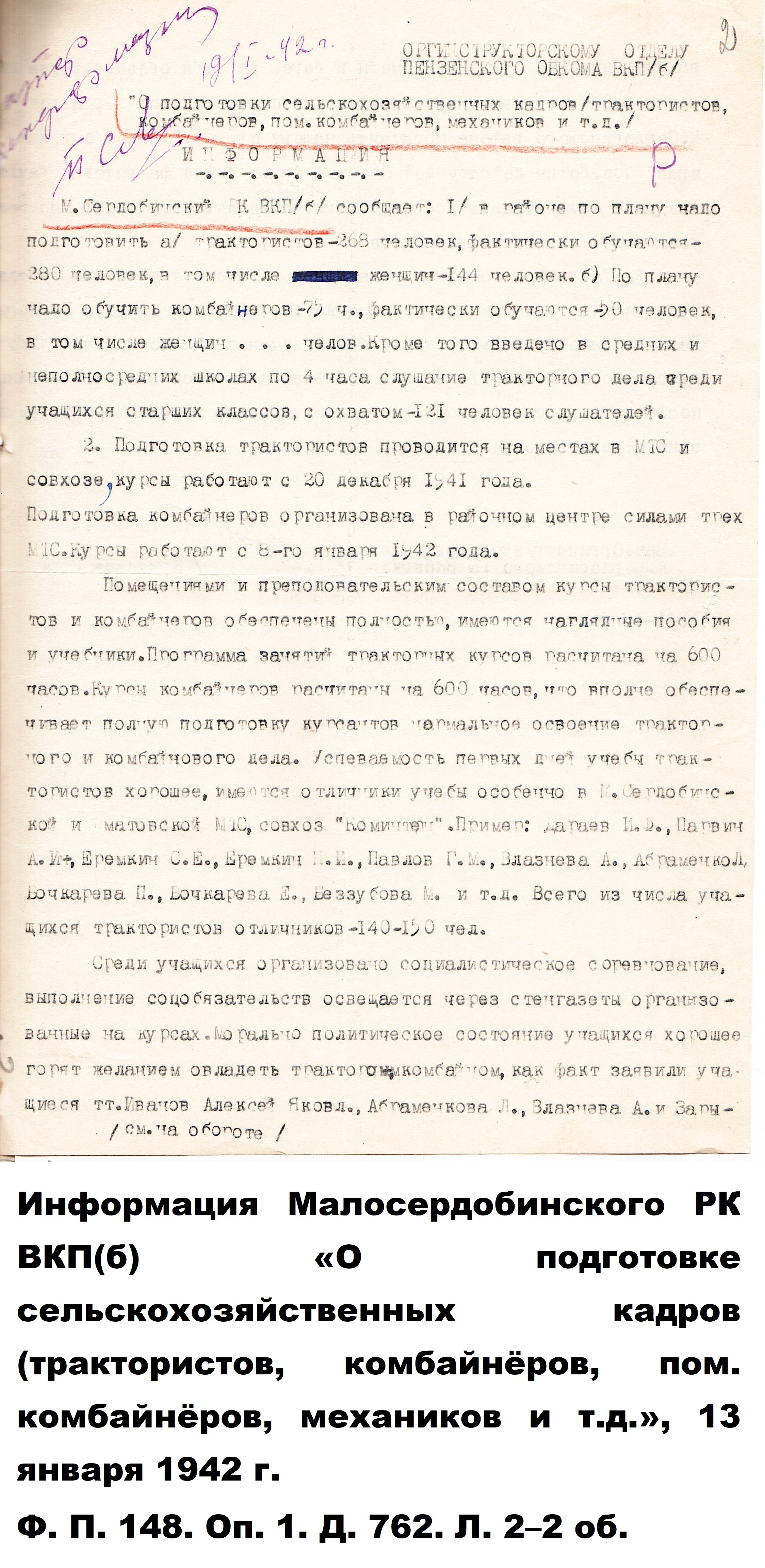 Авторами книги «Пензенская область в годы Великой отечественной войны» (Саратов, 1985), подсчитано, что «к 1944 году в МТС области 56,6 процента трактористов и 62,2 процента комбайнёров составляли женщины».