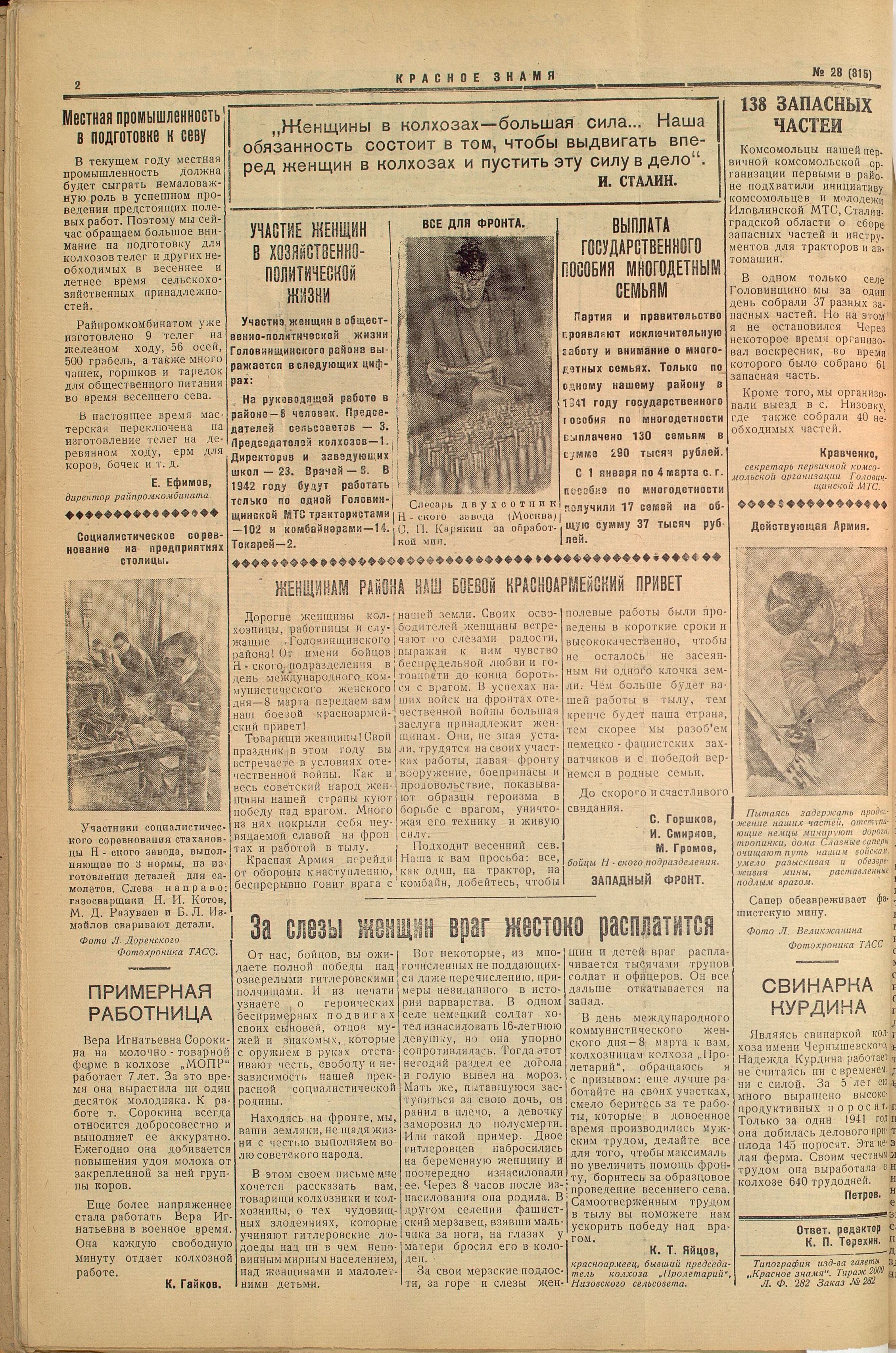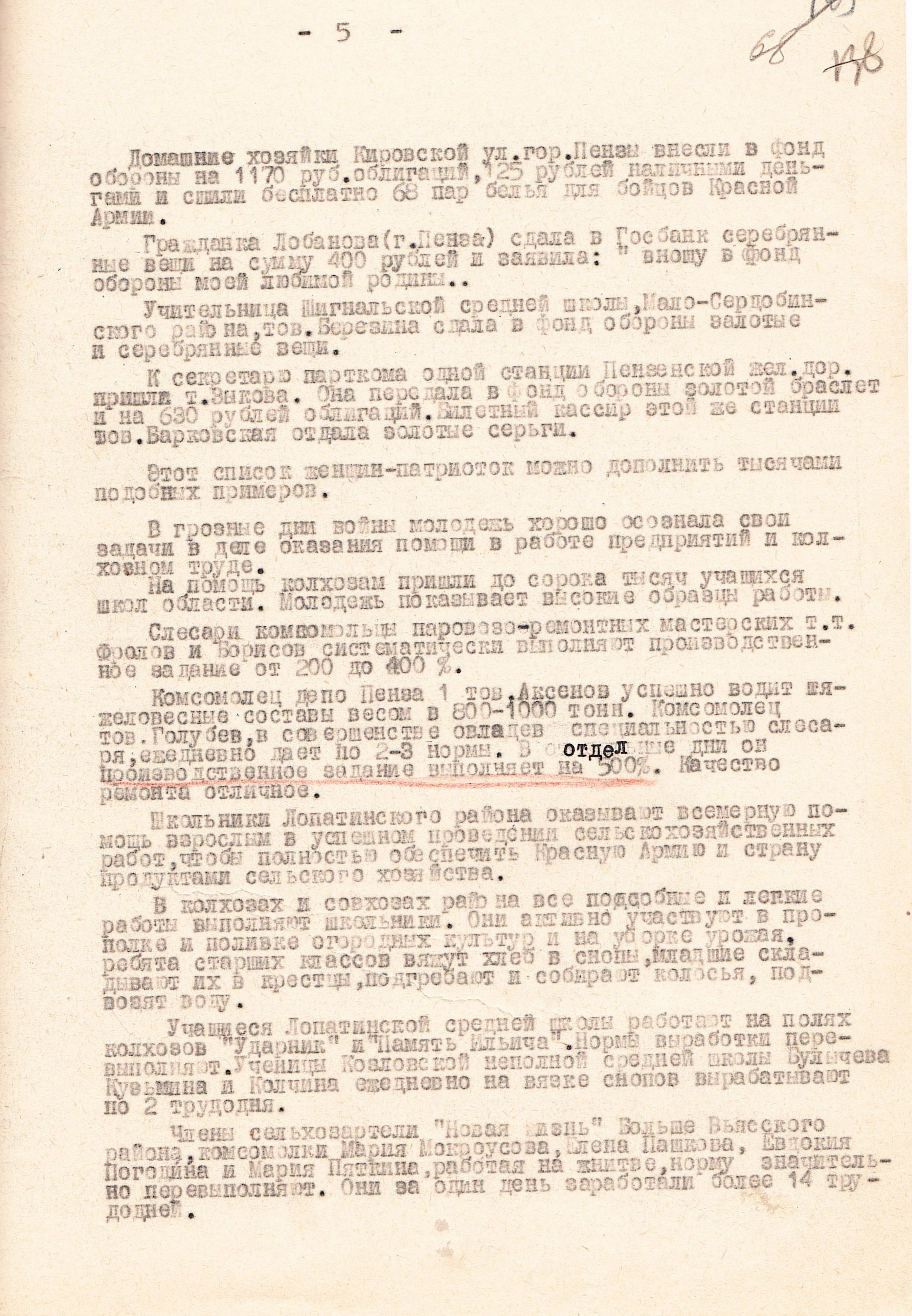 Разумеется, среди представительниц «слабого пола», трудившихся как на женских, так и мужских работах, было немало тех, кто добивался действительно выдающихся результатов. Скажем, в пензенской периодической печати того времени («Сталинское знамя», районные издания) достаточно широко освещались успехи сельских тружениц: последних ставили в пример, распространяли их опыт, их имена удостаивались места на районных и областных Досках почёта. Также на страницах газет можно встретить фотографии колхозниц-стахановок, выделявшихся своими трудовыми достижениями.