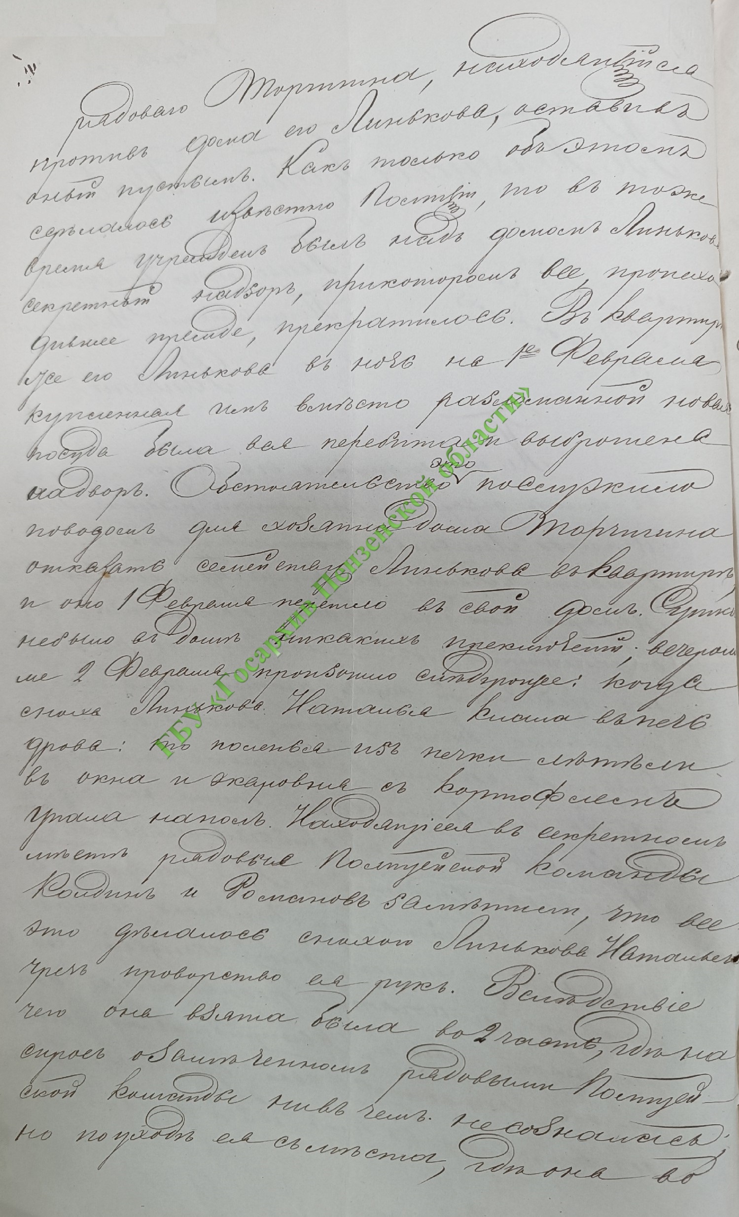 Слухи о пензенском «полтергейсте» достигли таких масштабов, что тайно пришлось вмешаться полиции. Сотрудники правоохранительных органов выставили секретный надзор. Он-то и пресёк все домыслы о призраках. Читаем в документе: «когда сноха Линькова Наталья клала в печь дрова, то поленья из печи летели в окна и жаровня с картофелем упала на пол. Находящиеся в секретном месте рядовые полицейской команды Колдин и Романов заметили, что всё это делалось снохою Линькова Натальей чрез проворство её рук».