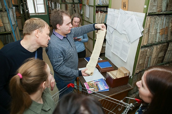 Кроме того, участники экскурсии смогли увидеть старейший документ, хранящийся в архиве, — «Жалованная грамота царя Михаила Федоровича Андрею Матвеевичу Несвицкому на вотчину в Суздальском уезде» 1627 г., возраст которого насчитывает почти 400 лет.