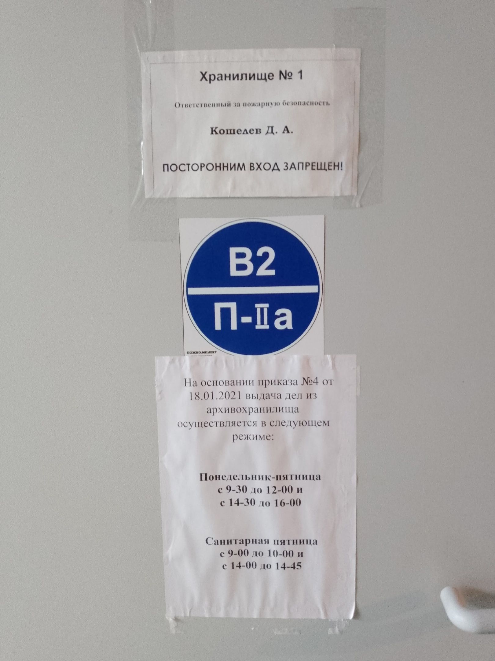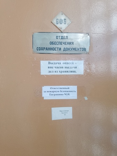 За каждым хранилищем закреплен архивист отдела ОСД, ответственный за рациональное размещение при приеме документов в архив, выдачу дел сотрудникам архива и своевременное возвращение в архивохранилище, поддержание оптимальных условий хранения документов (t – 17-19℃, влажность – не более 55%).