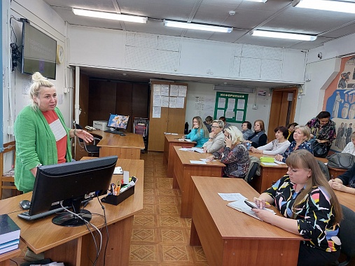 Сотрудники Д(Ю)Ц «Спутник»: методист Лупанова Зоя Олеговна и педагог-организатор Мягкова Юлия Геннадьевна ознакомили участников семинара с городскими краеведческими мероприятиями на 2023-2024 учебный год.
