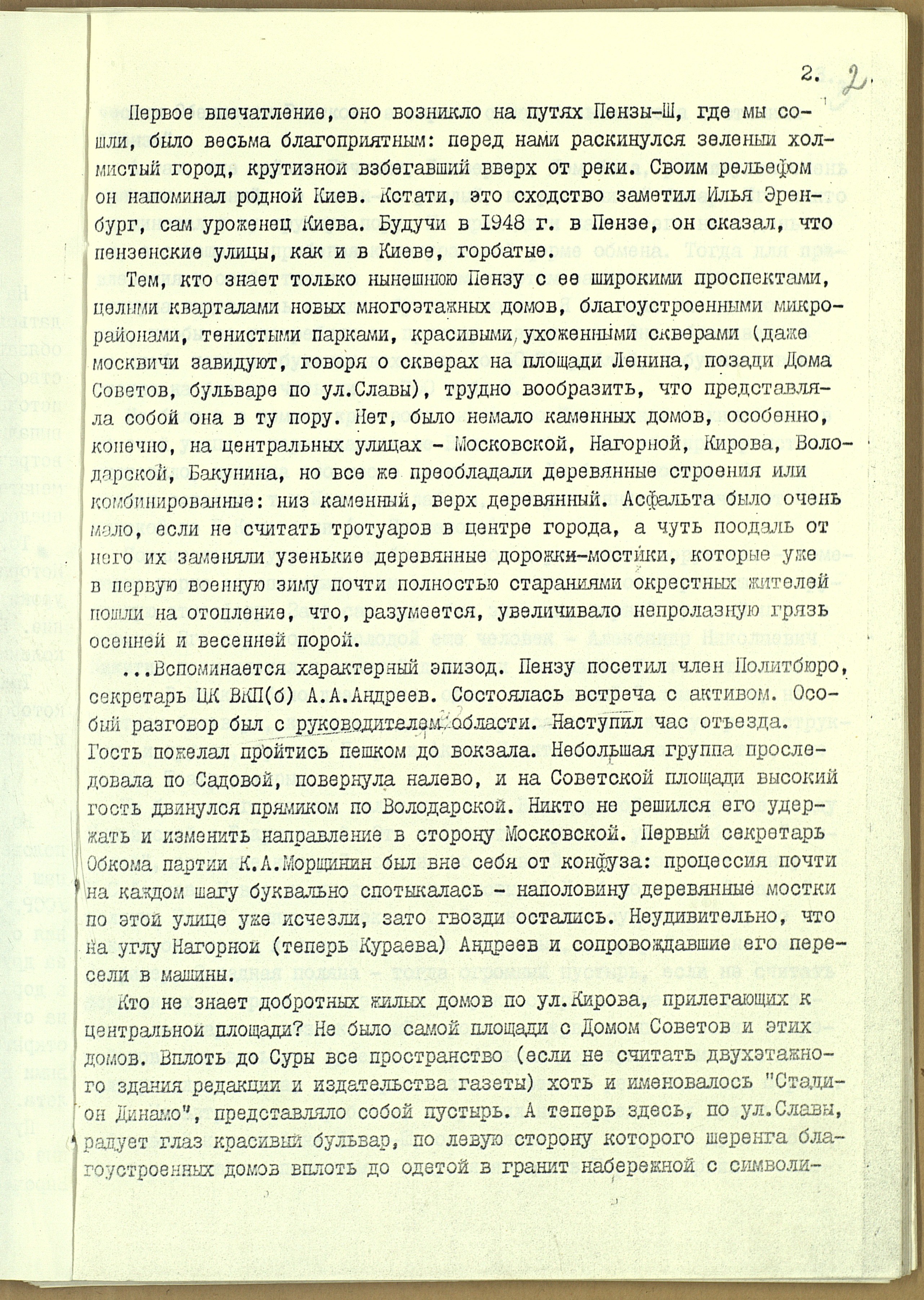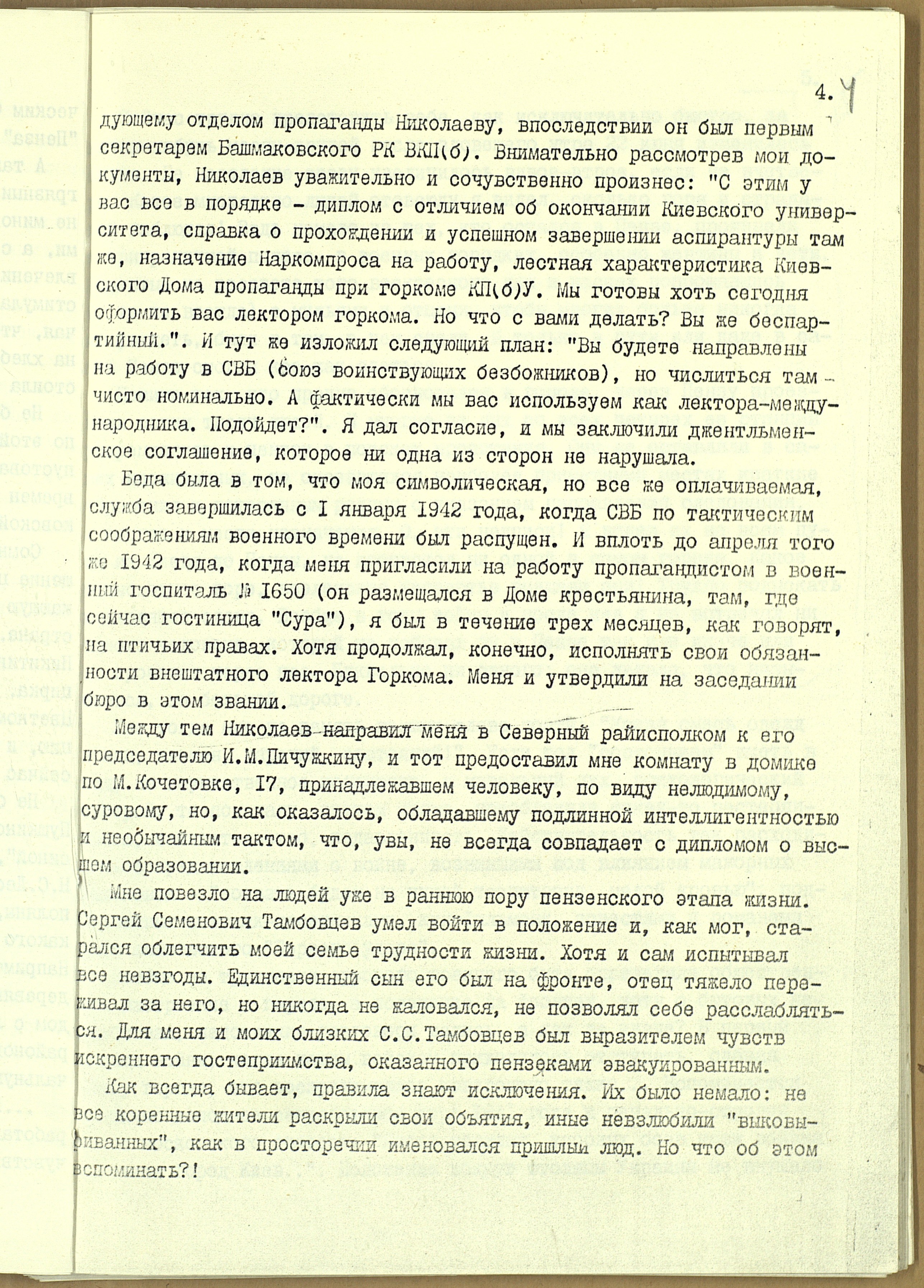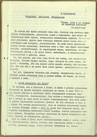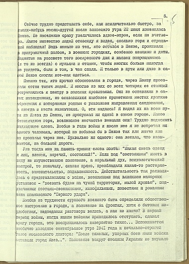 Мемуары лектора обкома В.П. Грановского о тыловой Пензе