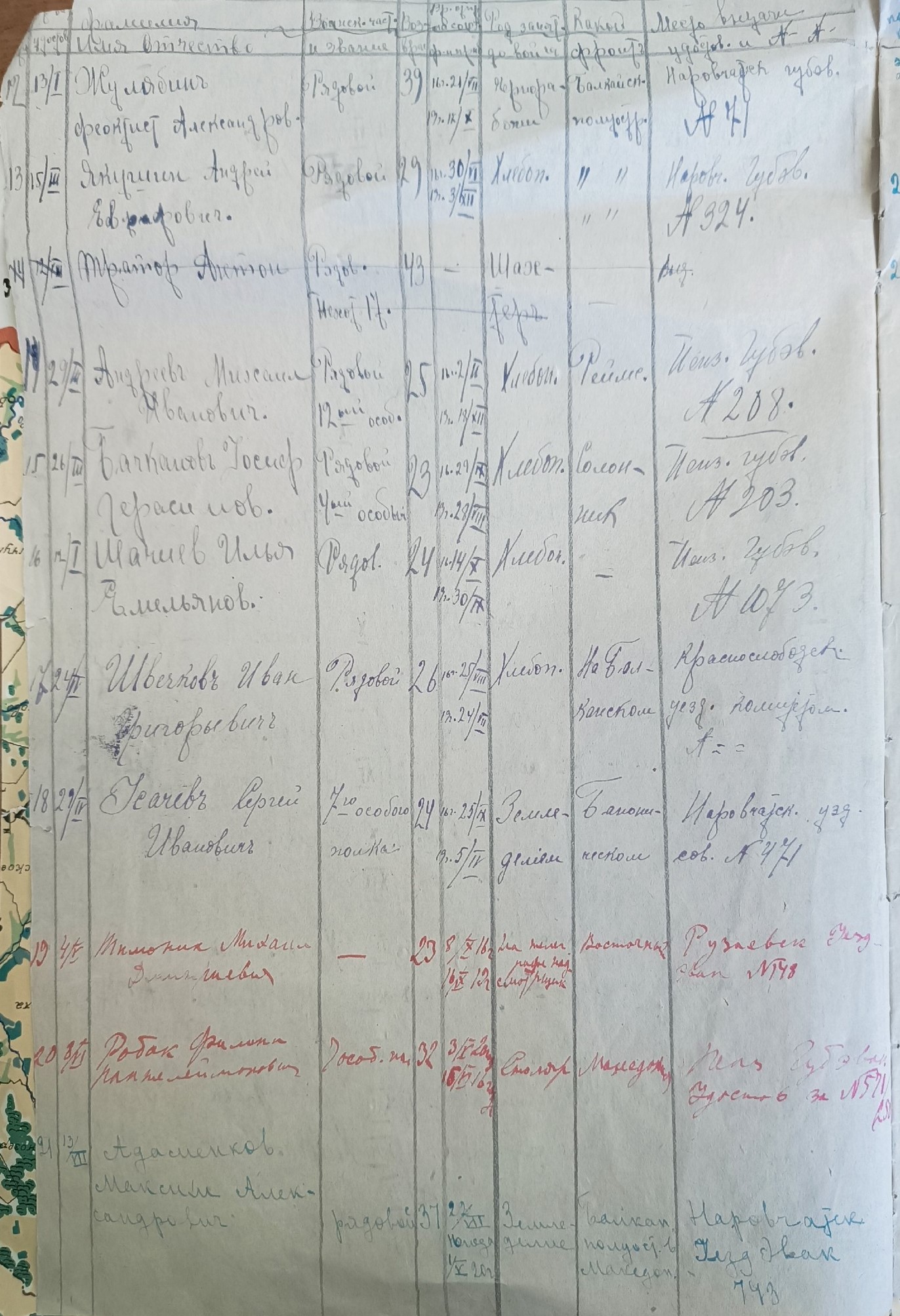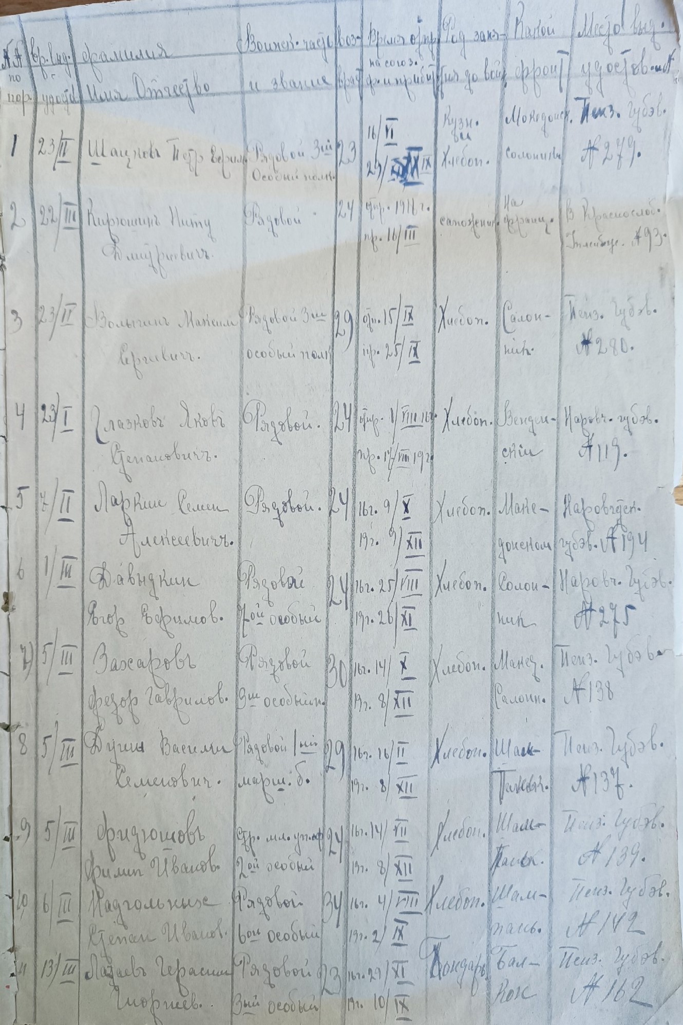Список солдат, возвратившихся с фронта бывших союзников