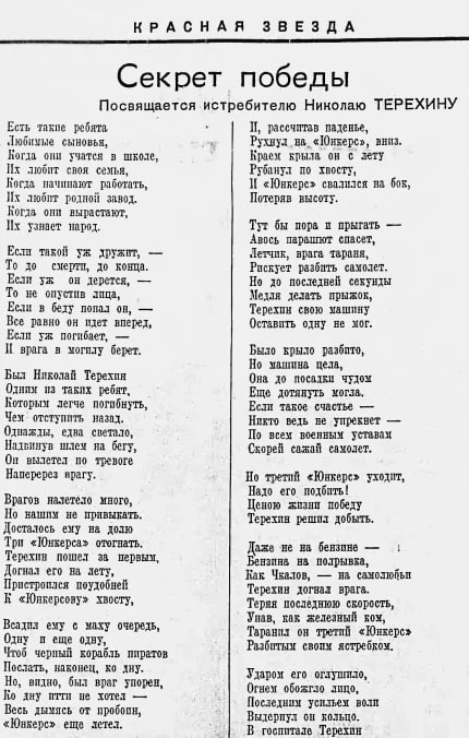 К июню 1942 года на счету аса было 15 сбитых немецких самолётов. О его подвигах писали все центральные газеты страны, Константин Симонов посвятил асу балладу «Секрет победы».