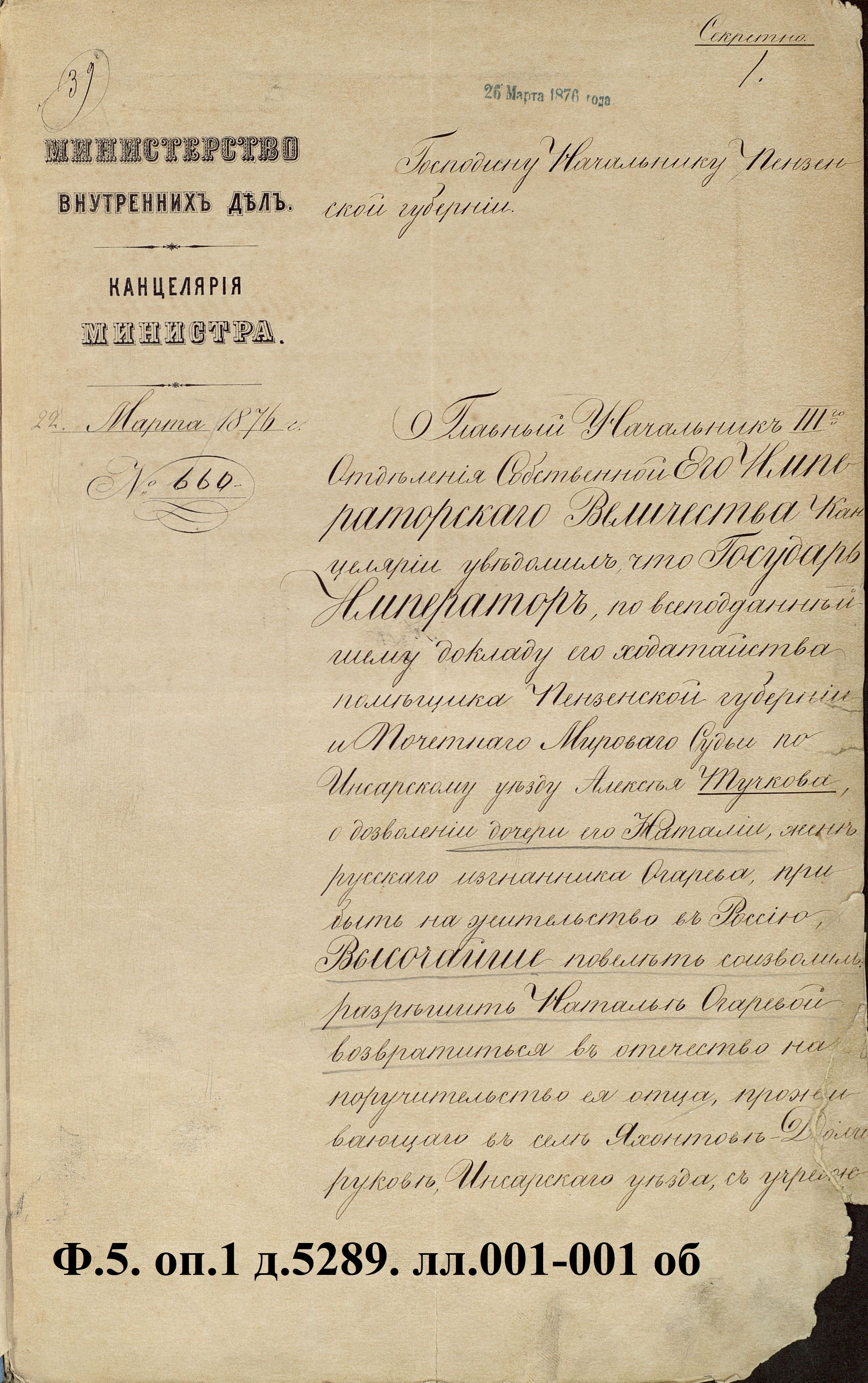 В 1835 году Огарев был сослан в Пензенскую губернию под надзор полиции за «переписку, наполненную свободомыслием». Подросшая дочь Алексея Алексеевича Наталья была влюблена в поэта Огарева, личная жизнь которого потерпела крах. Огарев был женат на племяннице губернатора Панчулидзева Марии Львовне Рославлевой. Супруги уже не жили вместе, но и не разводились. Тучков был против отношений дочери с Огаревым, но они все равно жили гражданским браком. Панчулидзев считал, что Огарев и Тучков позорят его племянницу и, находясь в Петербурге, встретился с руководителем III отделения графом А.Ф. Орловым, и донес о политической неблагонадежности и безнравственном поведении обоих. В 1850 году Тучков был арестован вместе с Н.П. Огаревым, Н.М. Сатиным и И.В. Селивановым за принадлежность к коммунистической секте. Через месяц их освободили, так как следствие выдвинутых обвинений не подтвердило. Дочь Тучкова Наталья Алексеевна после смерти жены Огарева вышла за него замуж.