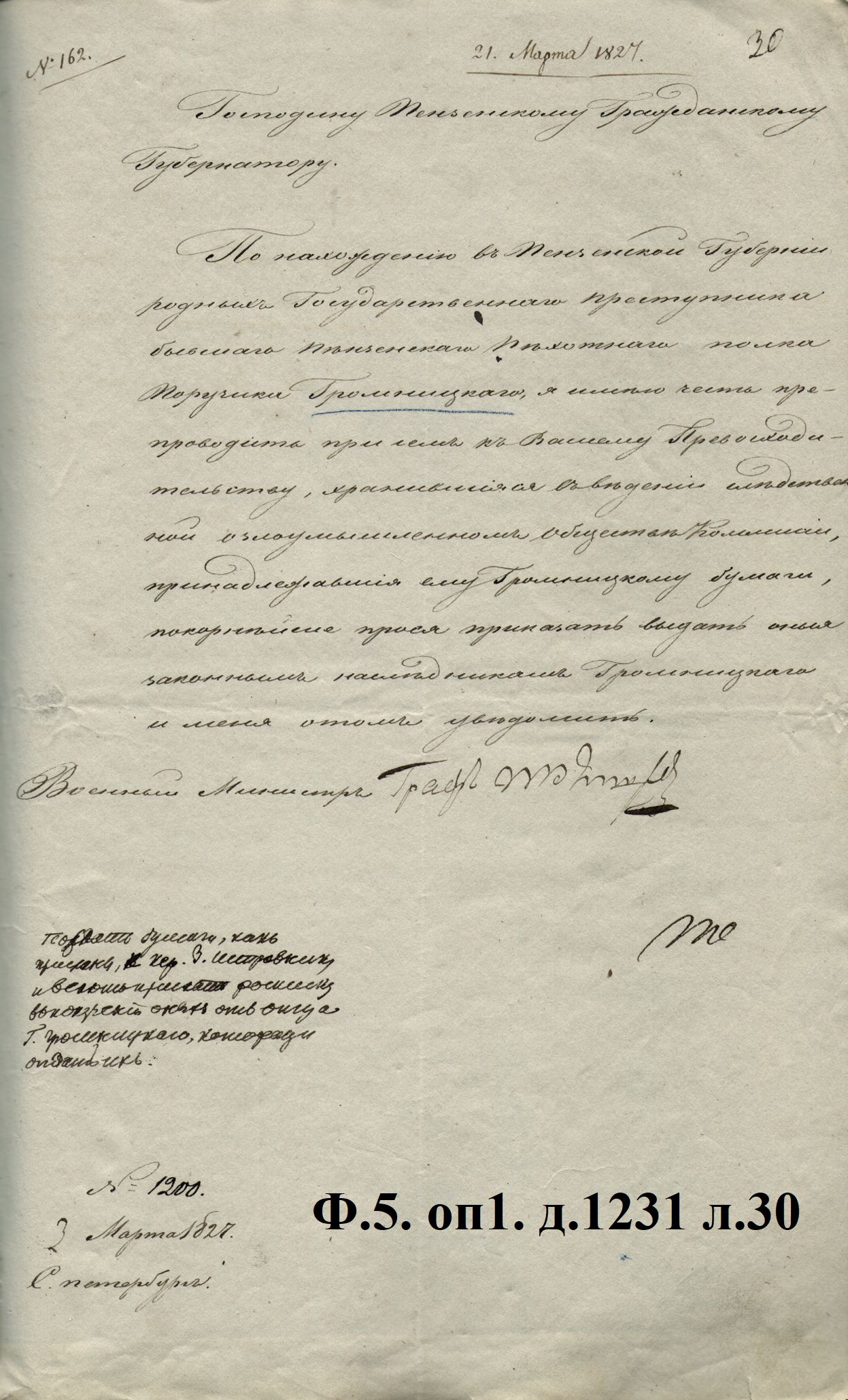9 февраля того же года Громницкий был доставлен в Петербург и посажен в Трубецкой бастион Петропавловской крепости.