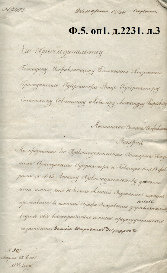 Членом этого же общества был и другой декабрист, чье имя связано с историей нашего края – это Алексей Васильевич Веденяпин. Родился он в 1804 году в с. Веденяпино Темниковского уезда Тамбовской губернии. После подавления восстания Черниговского полка был арестован и приговорен к разжалованию в солдаты. После участия в русско-персидской и русско-турецкой войнах 1827-1829 гг. был произведен в унтер-офицеры. В 1833 году уволен с военной службы по состоянию здоровья с учреждением секретного надзора по месту жительства. Был управляющим имением графа Закревского в с. Муратовка Мокшанского уезда Пензенской губернии.