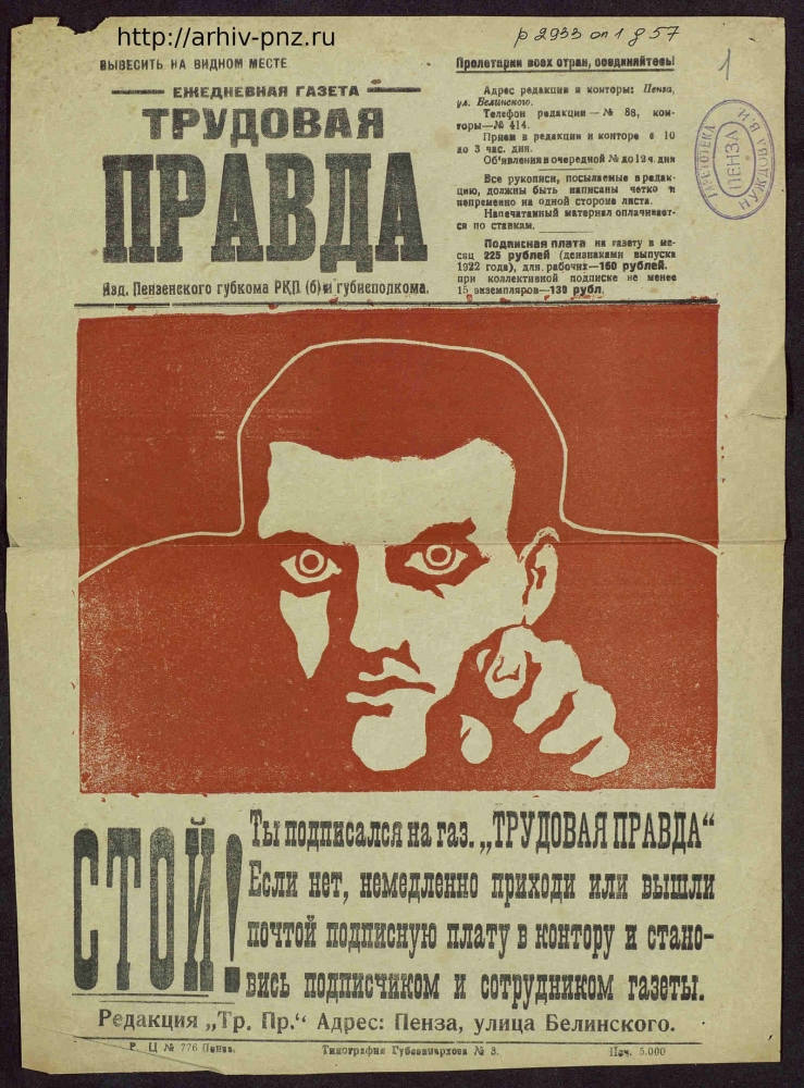 Рекламные подписные листы пензенских газет разных лет. Из личного фонда журналиста Нуждова В. И.